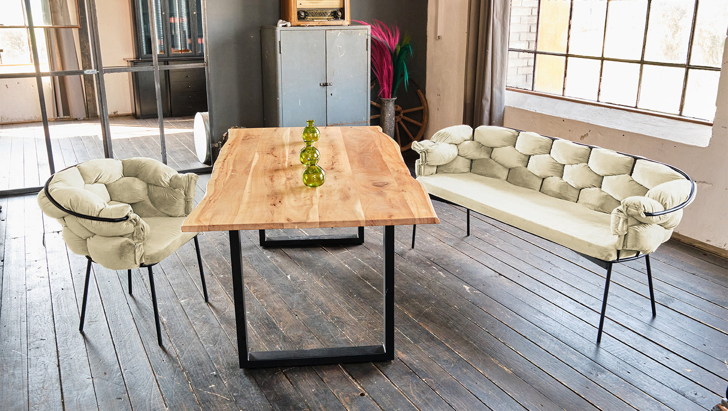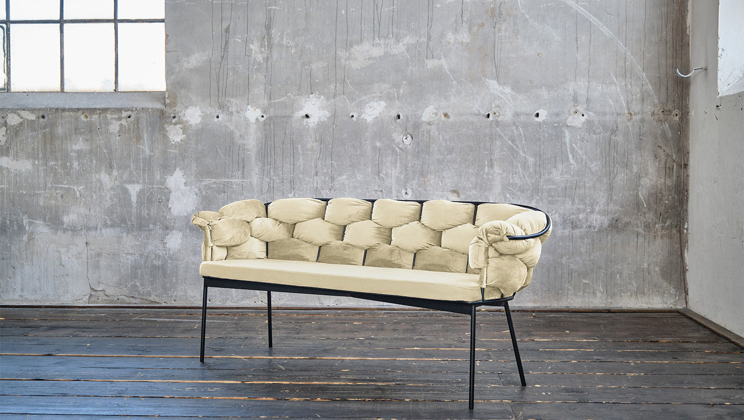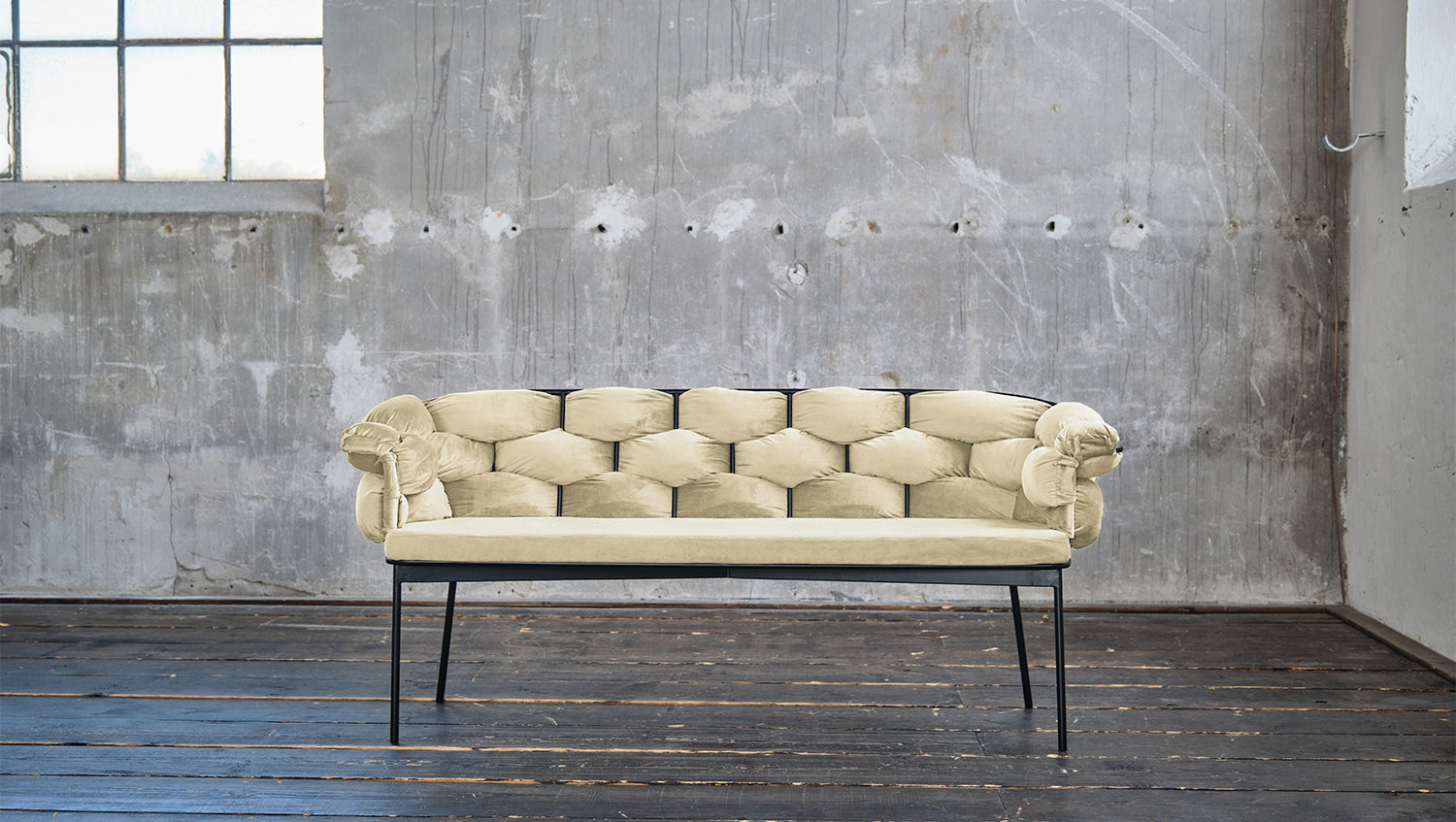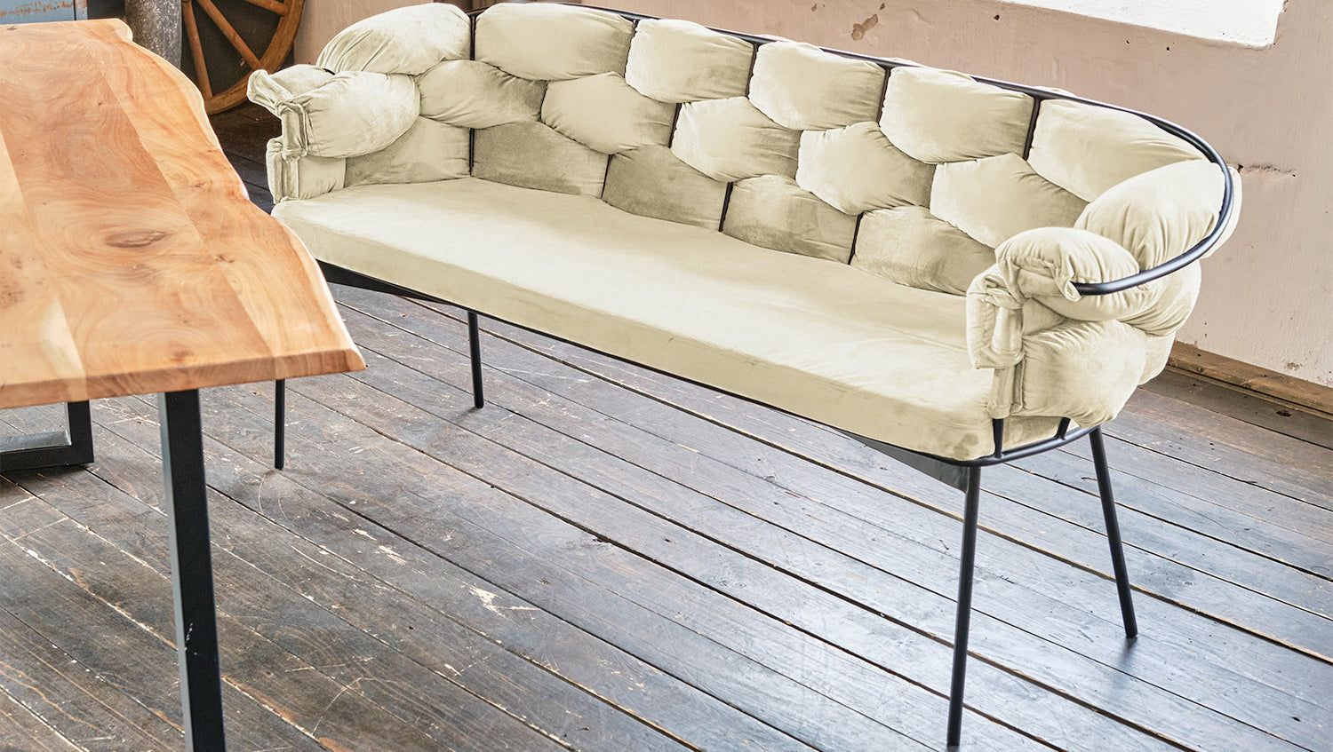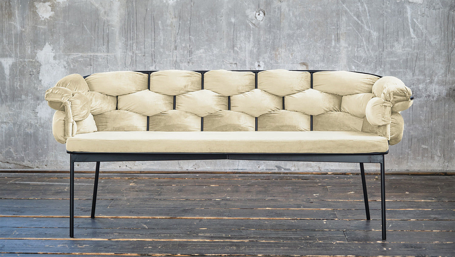2a oportunidad KAWOLA Banco MONTY 240cm Terciopelo crema blanco