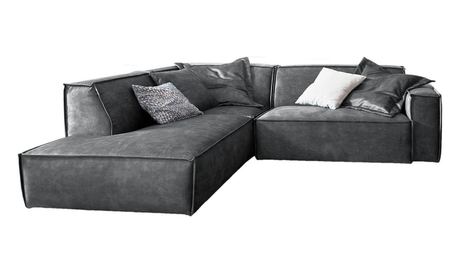 B-Ware KAWOLA Sofá SAMU Sofá de esquina Terciopelo Vintage gris Recamiere izquierda