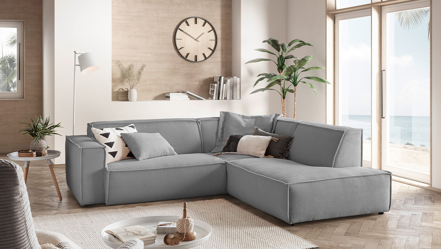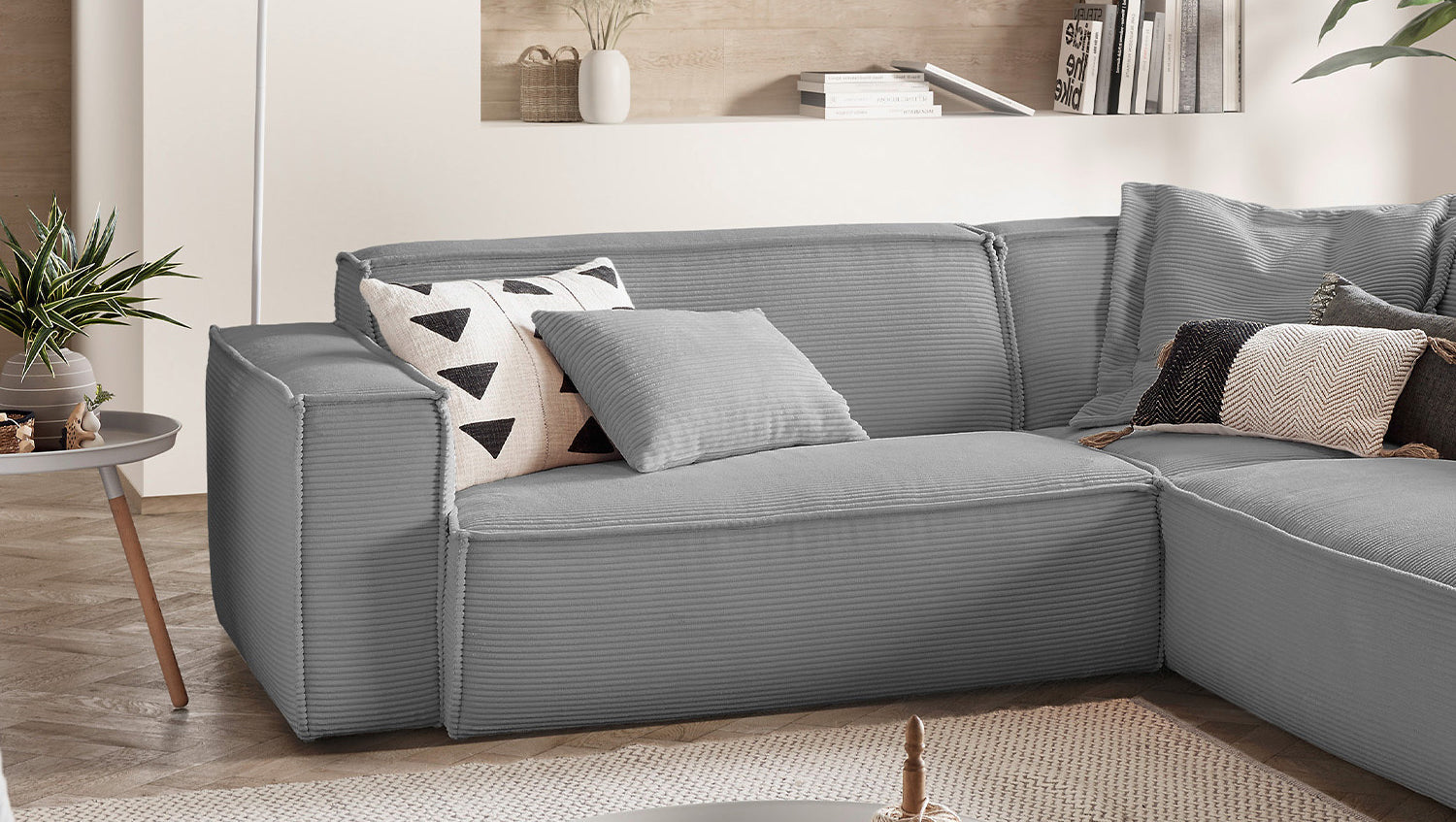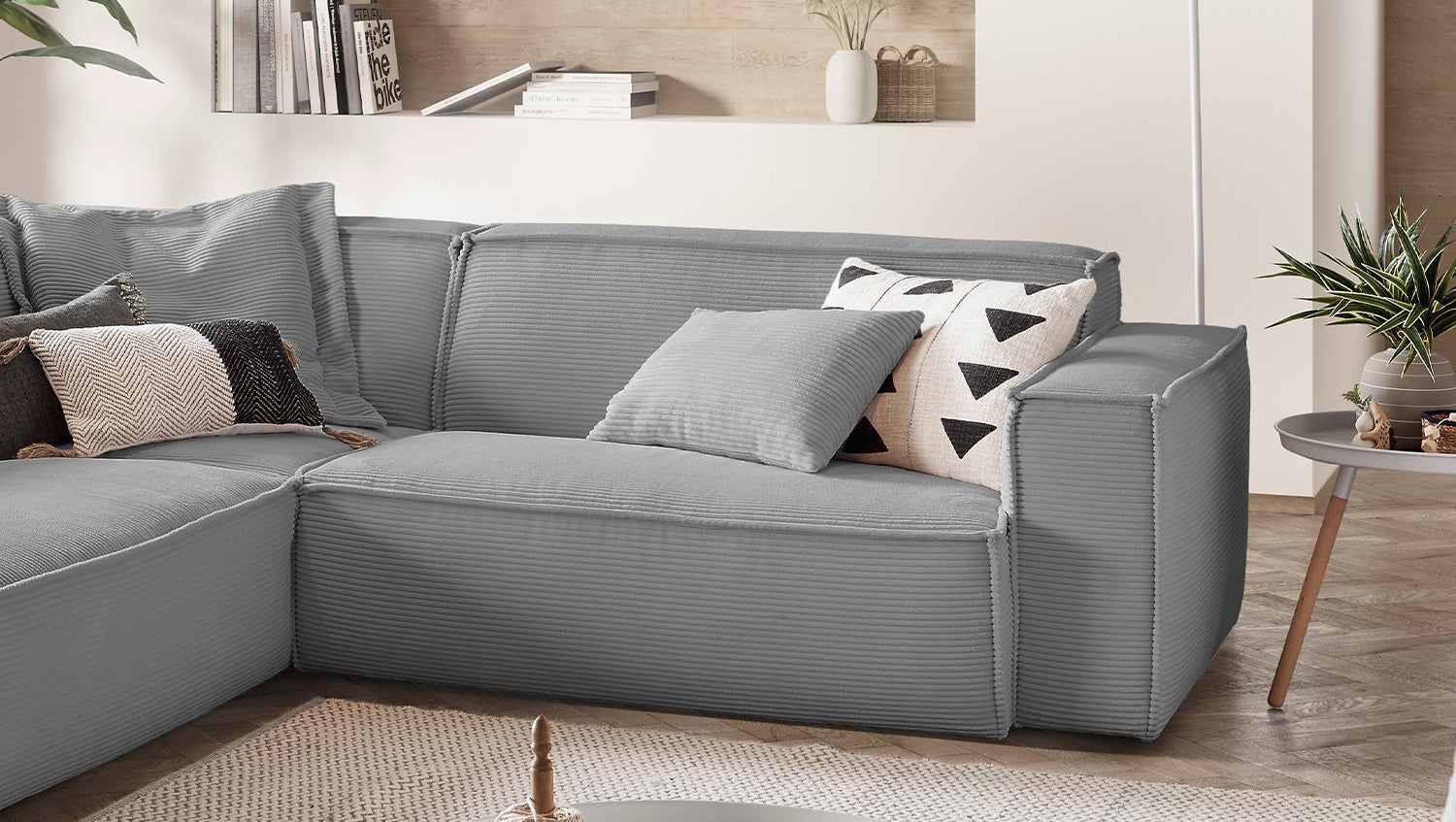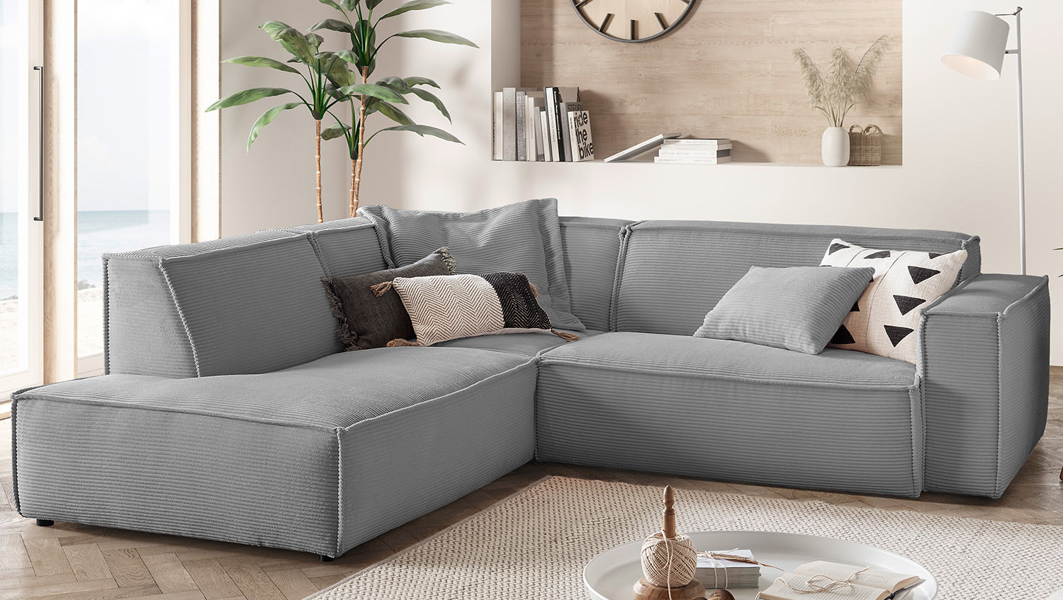 KAWOLA Sofá SAMU Sofá esquinero Pana gris