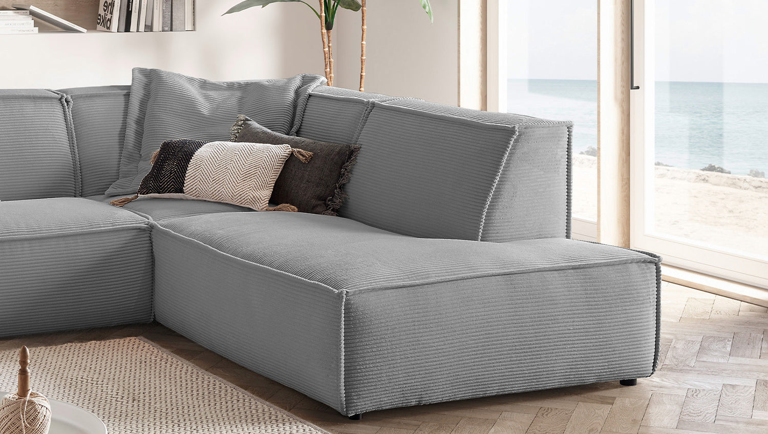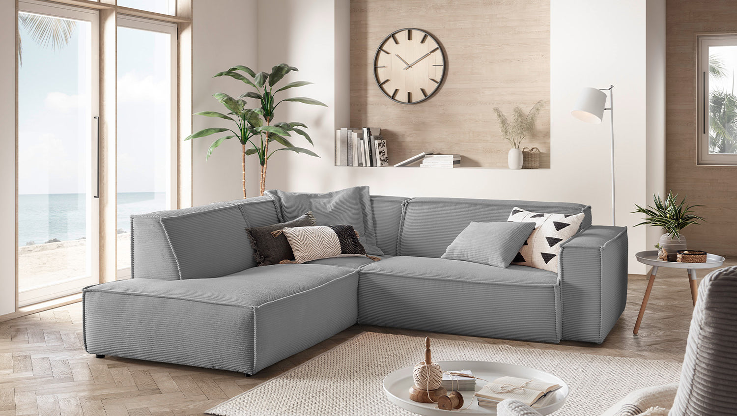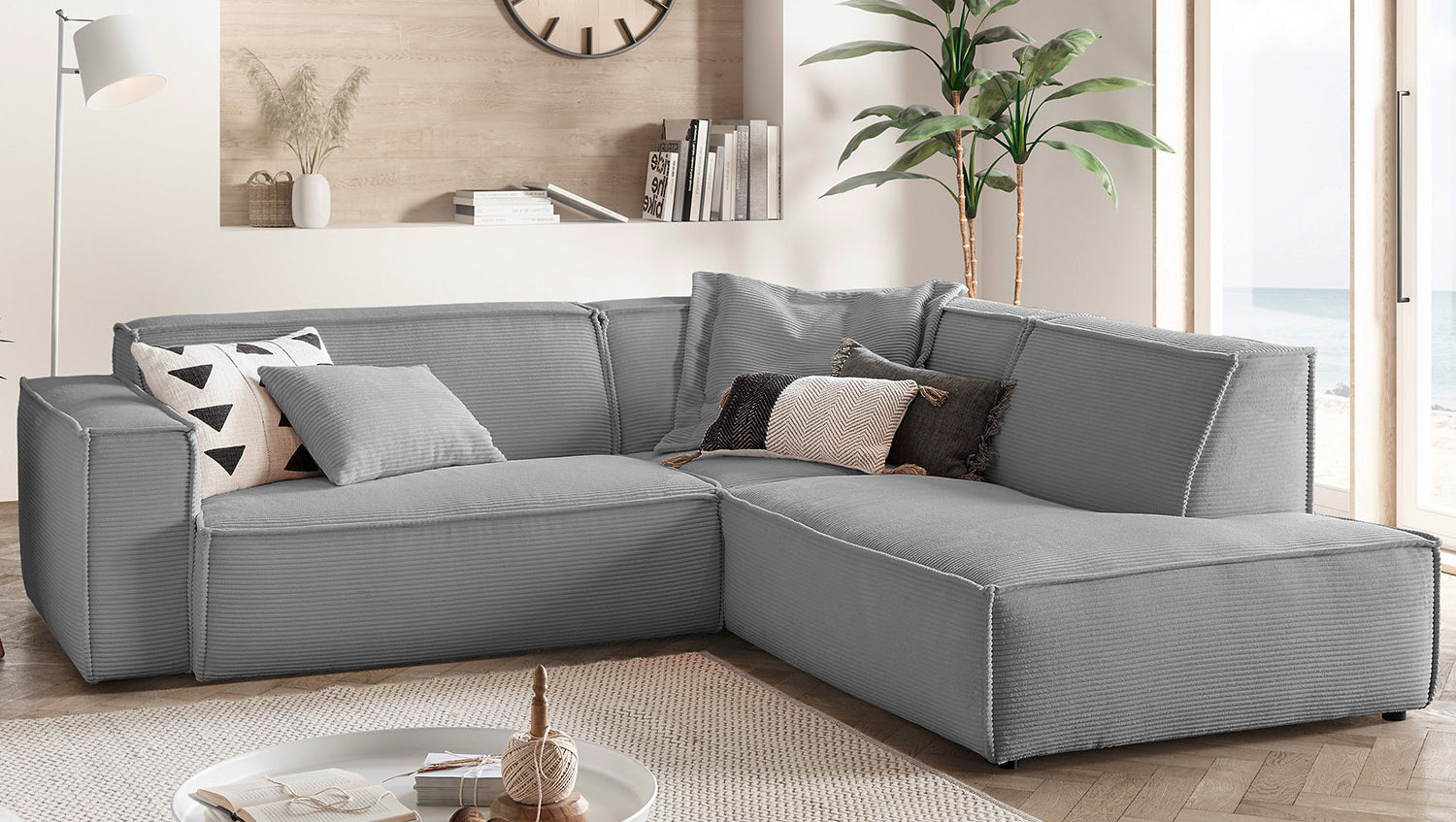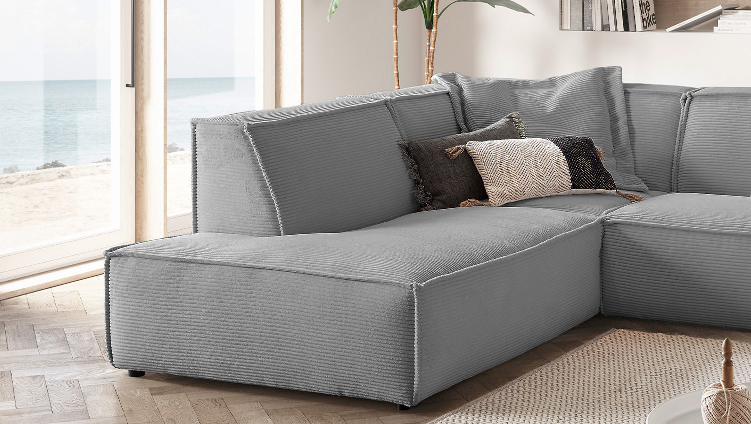 KAWOLA Sofá SAMU Sofá esquinero Pana gris