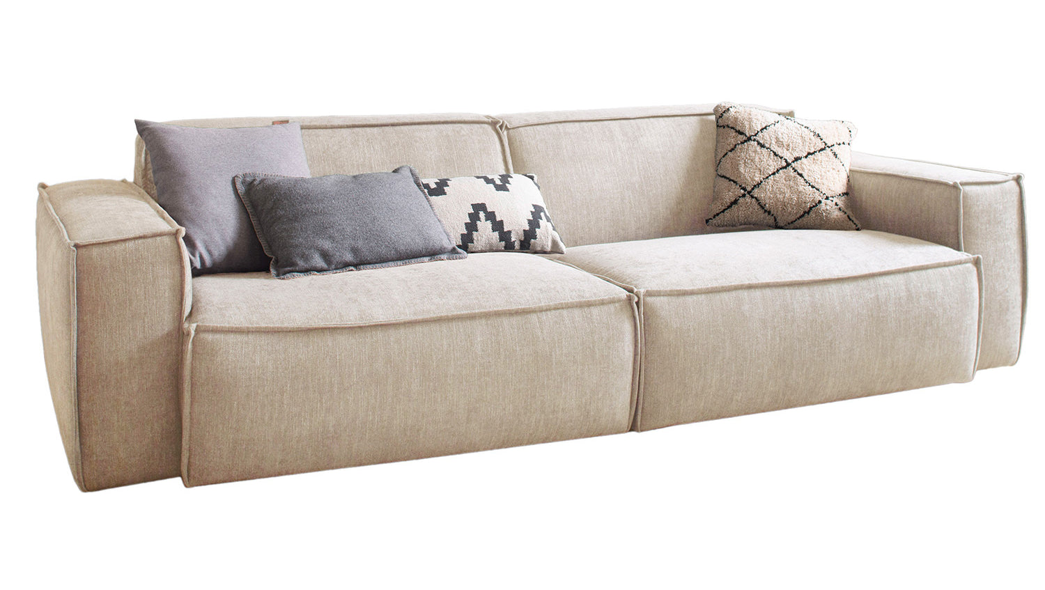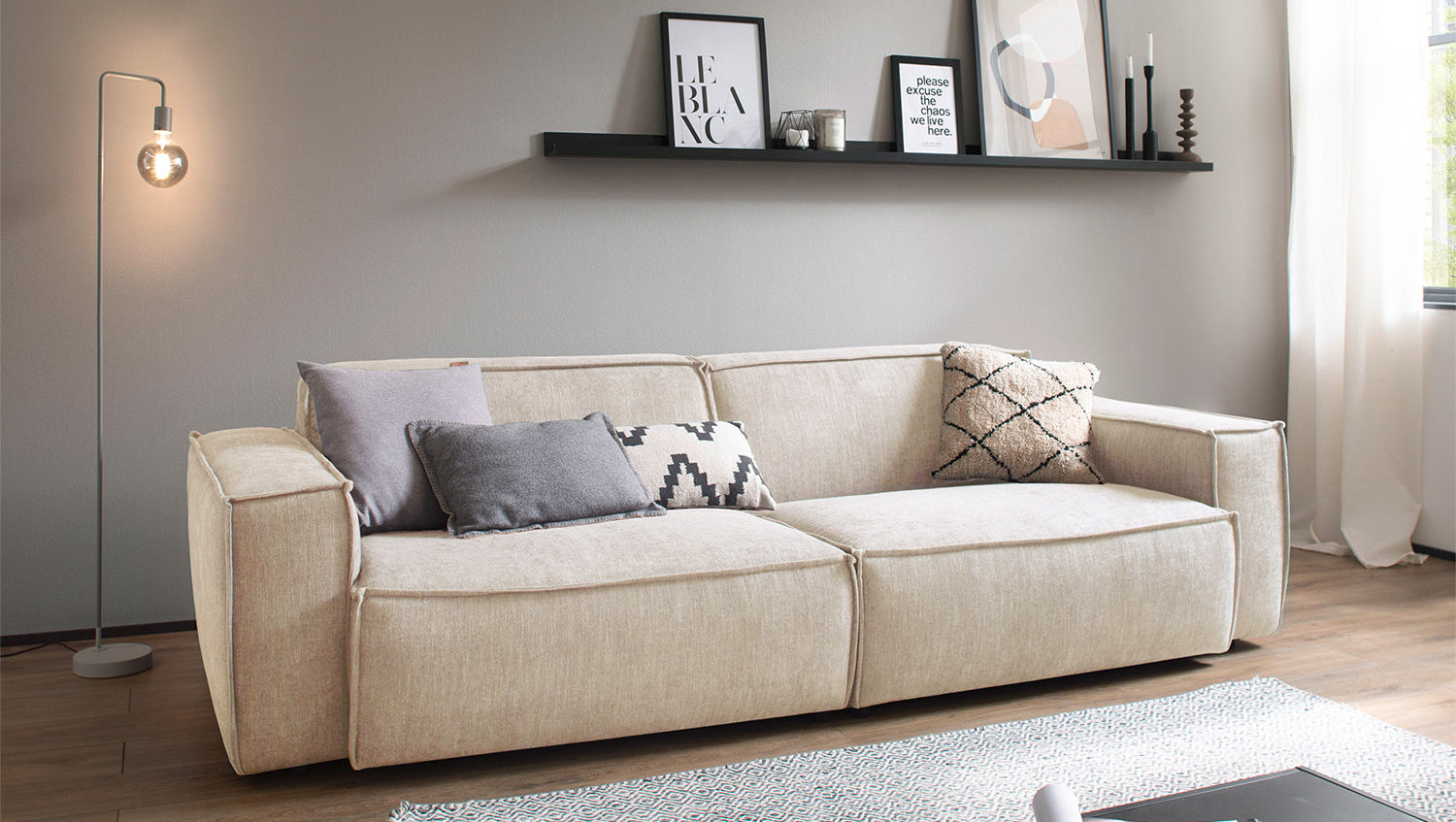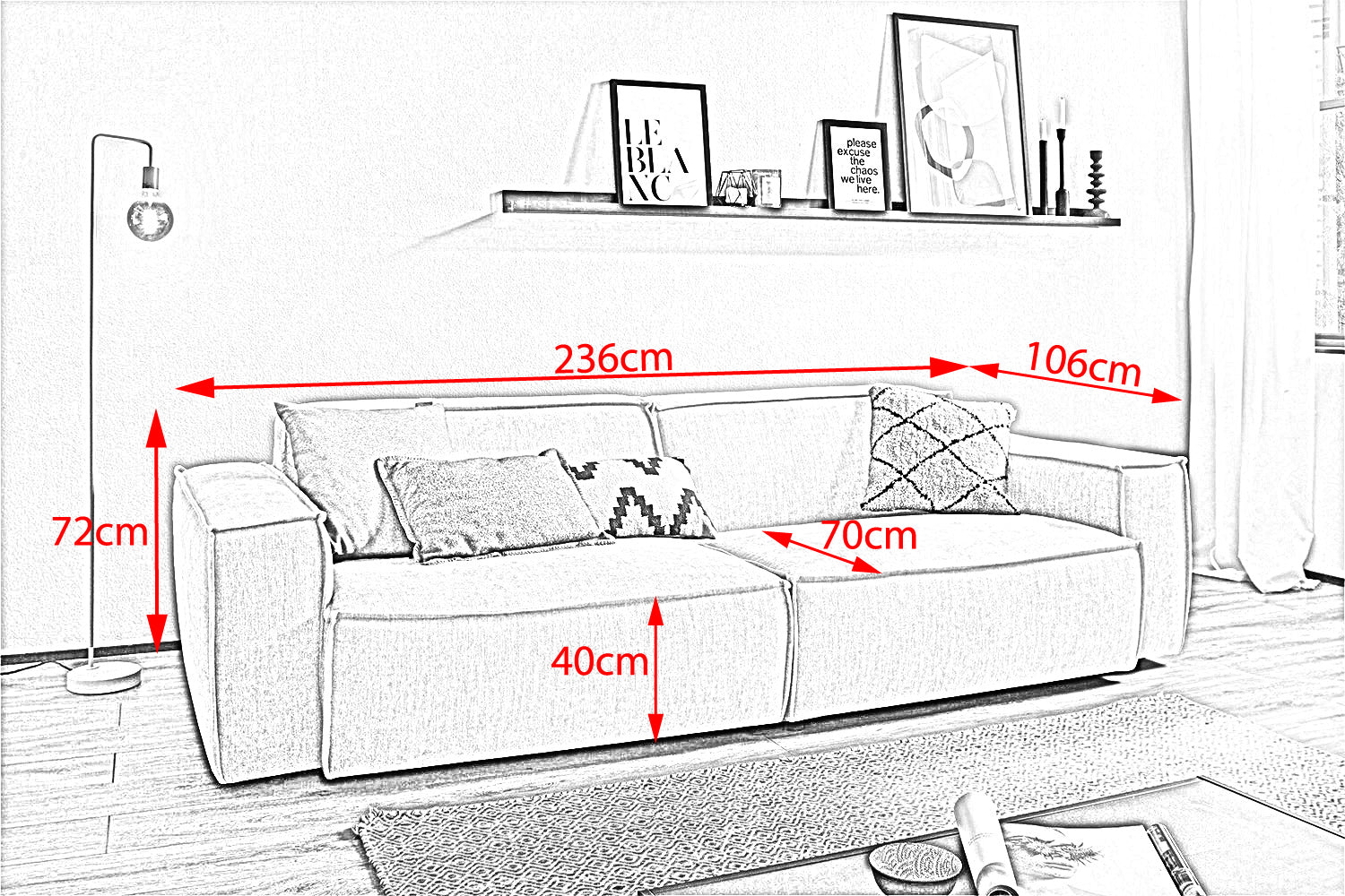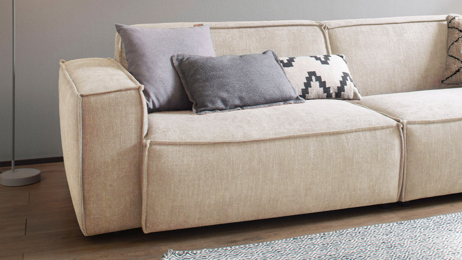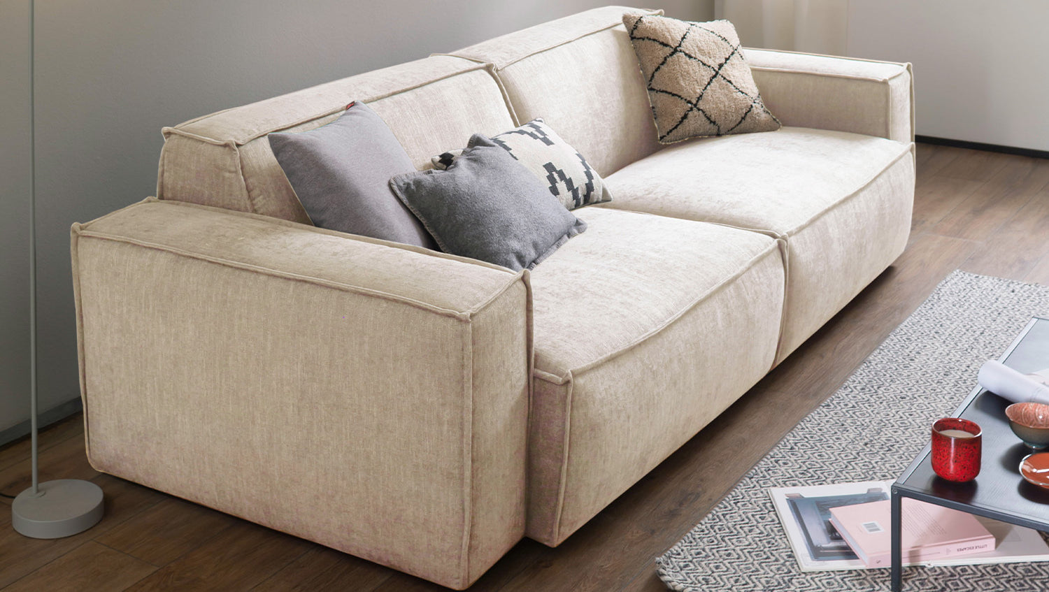 El sofá SAMU de KAWOLA impresiona por su extraordinaria comodidad de asiento, que se consigue gracias a la estructura extremadamente suave y desenfadada del tapizado e invita a quedarse y relajarse. La tapicería se adapta a la forma del cuerpo; las impresiones del asiento y las ondulaciones de las fundas son típicas del producto. Su forma moderna y urbana confiere al sofá un aspecto inconfundible y ofrece espacio suficiente para pasar veladas acogedoras. Con su diseño atemporal, se integra a la perfección en cualquier ambiente y también destaca de pie en la habitación. Si quiere dar un toque original a su salón, el sofá SAMU es sin duda la elección perfecta.