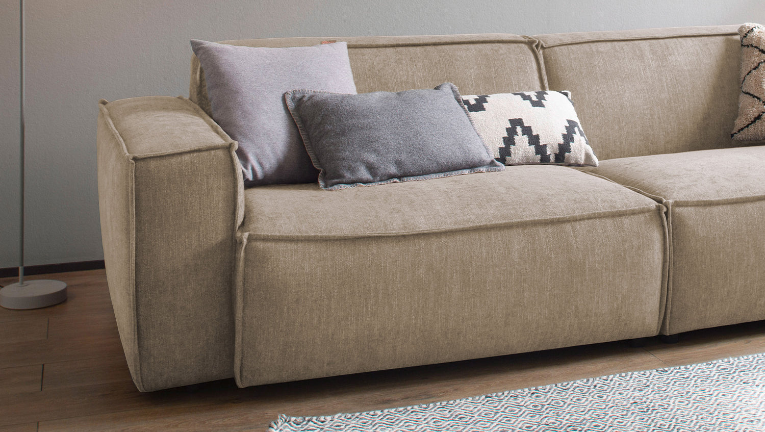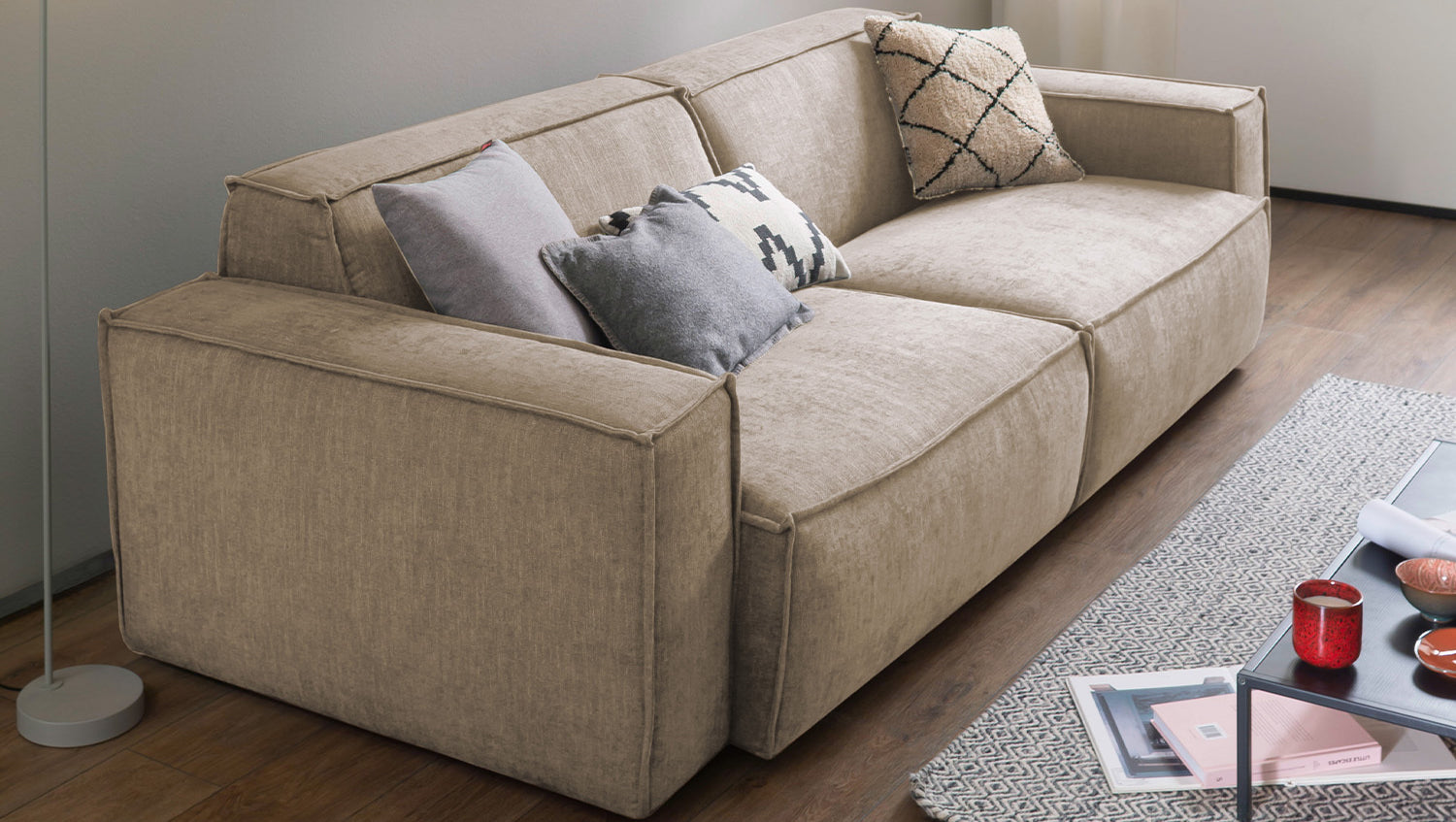 El sofá SAMU de KAWOLA impresiona por su extraordinaria comodidad de asiento, que se consigue gracias a la estructura extremadamente suave y desenfadada del tapizado e invita a quedarse y relajarse. La tapicería se adapta a la forma del cuerpo; las impresiones del asiento y las ondulaciones de las fundas son típicas del producto. Su forma moderna y urbana confiere al sofá un aspecto inconfundible y ofrece espacio suficiente para pasar veladas acogedoras. Con su diseño atemporal, se integra a la perfección en cualquier ambiente y también destaca de pie en la habitación. Si quiere dar un toque original a su salón, el sofá SAMU es sin duda la elección perfecta.