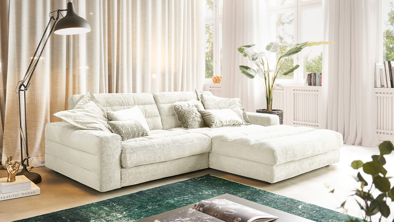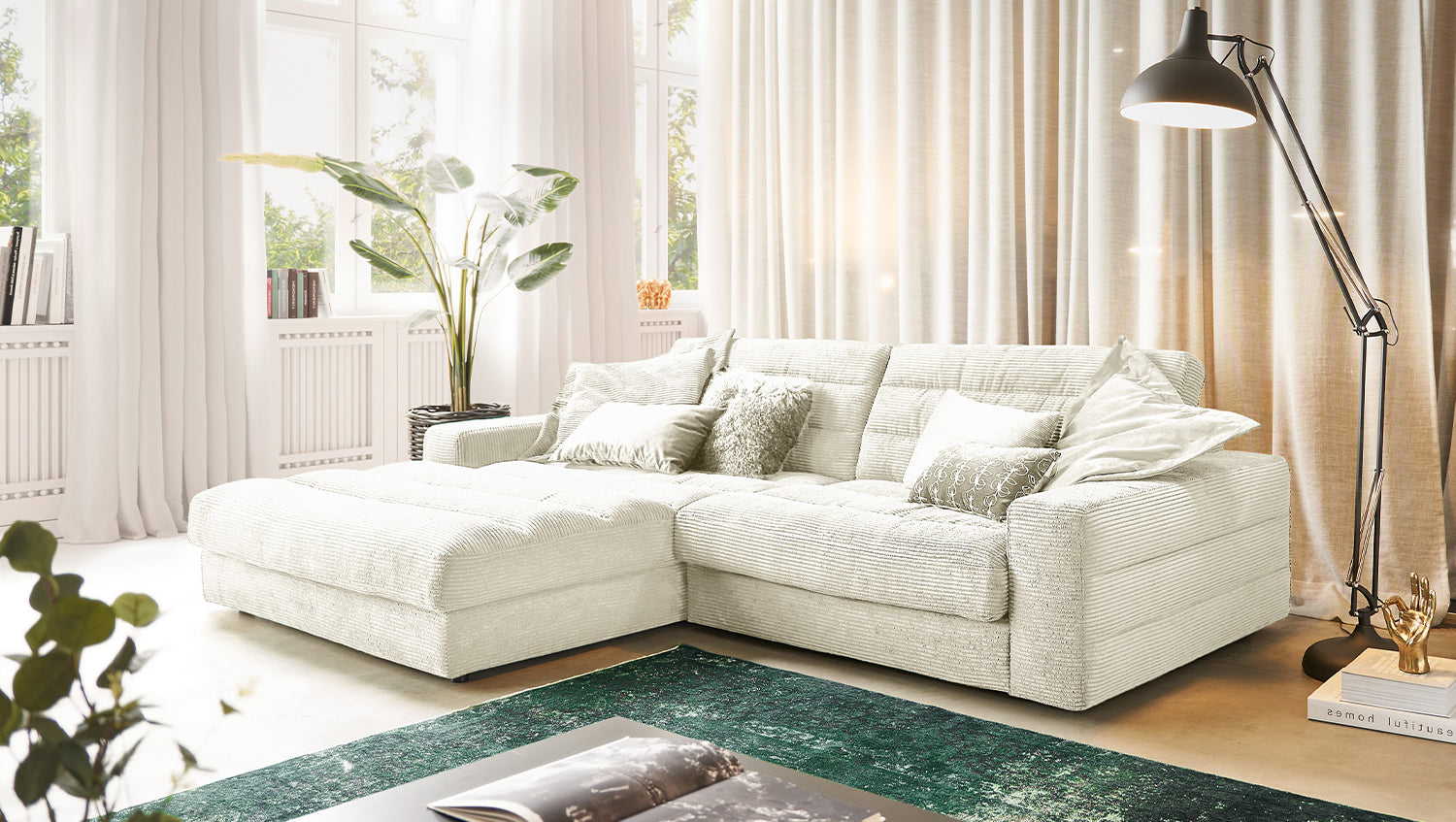 KAWOLA Sofá LANA Sofá esquinero Pana blanco crema