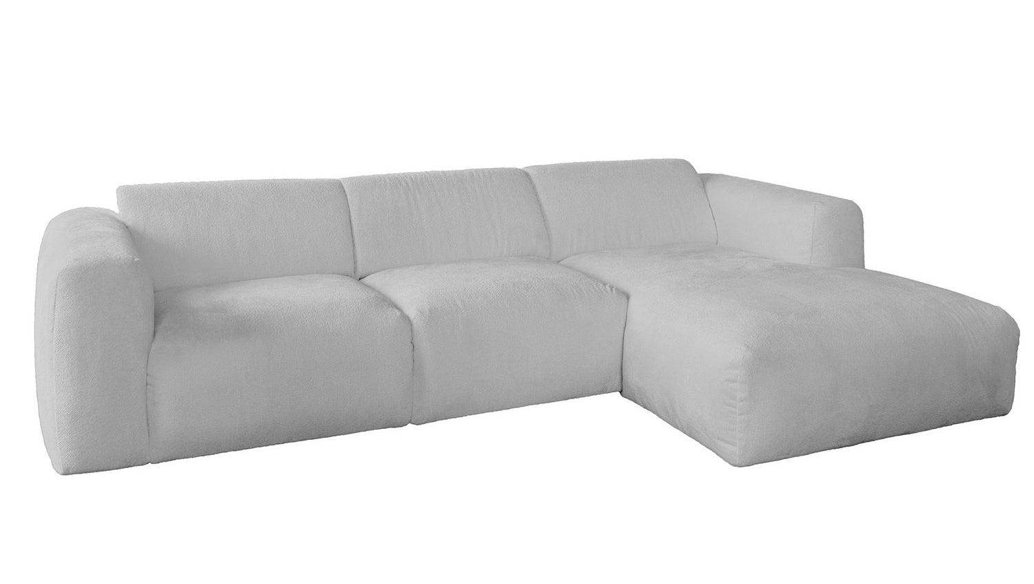 Sofá KAWOLA sofá de esquina VALAR, tela, chaise longue plateado, derecha