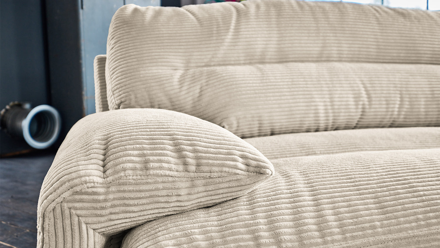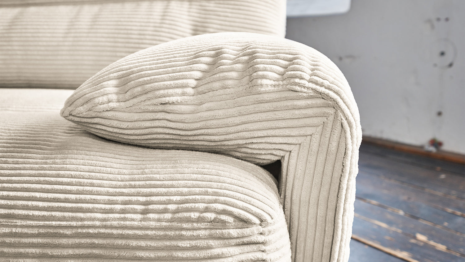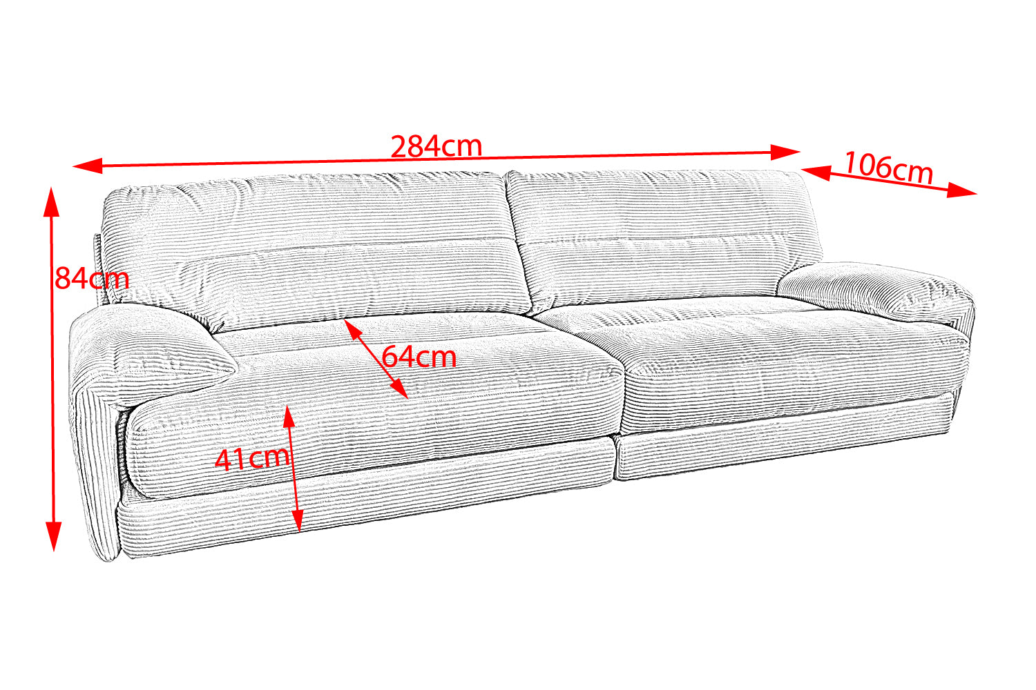 Descubra el sofá de 3 plazas CINE de KAWOLA, un mueble que combina con maestría elegancia, comodidad y funcionalidad. La funda de pana de alta calidad no solo le confiere una estética atractiva, sino que también garantiza su durabilidad y resistencia al pilling. Con una generosa anchura de 284 cm, el sofá ofrece espacio suficiente para hasta cuatro personas, ideal para reuniones sociales con familiares y amigos. El confort de asiento de firmeza media y una profundidad de asiento de 64 cm crean un ambiente acogedor en el que recostarse y relajarse, mientras que el acolchado de espuma de alta densidad garantiza una comodidad de asiento óptima, ya sea para breves momentos de relajación o para conversaciones más largas. La funda de pana conserva su aspecto impecable incluso después de un uso prolongado. Cumpla sus sueños vitales con este mueble único que aporta acogimiento y elegancia a su hogar. El sofá de 3 plazas CINE es una declaración de estilo y calidad.