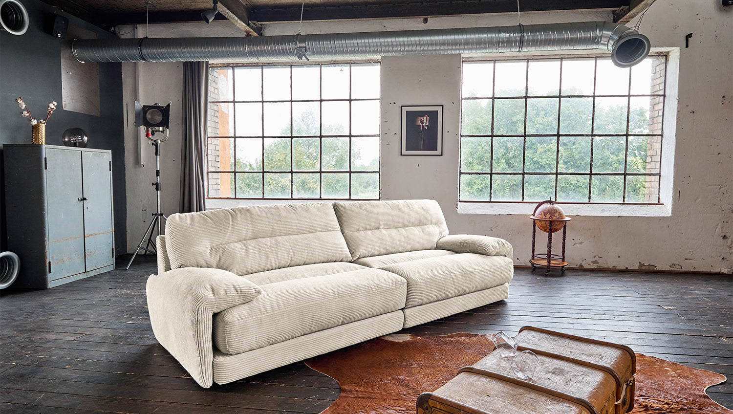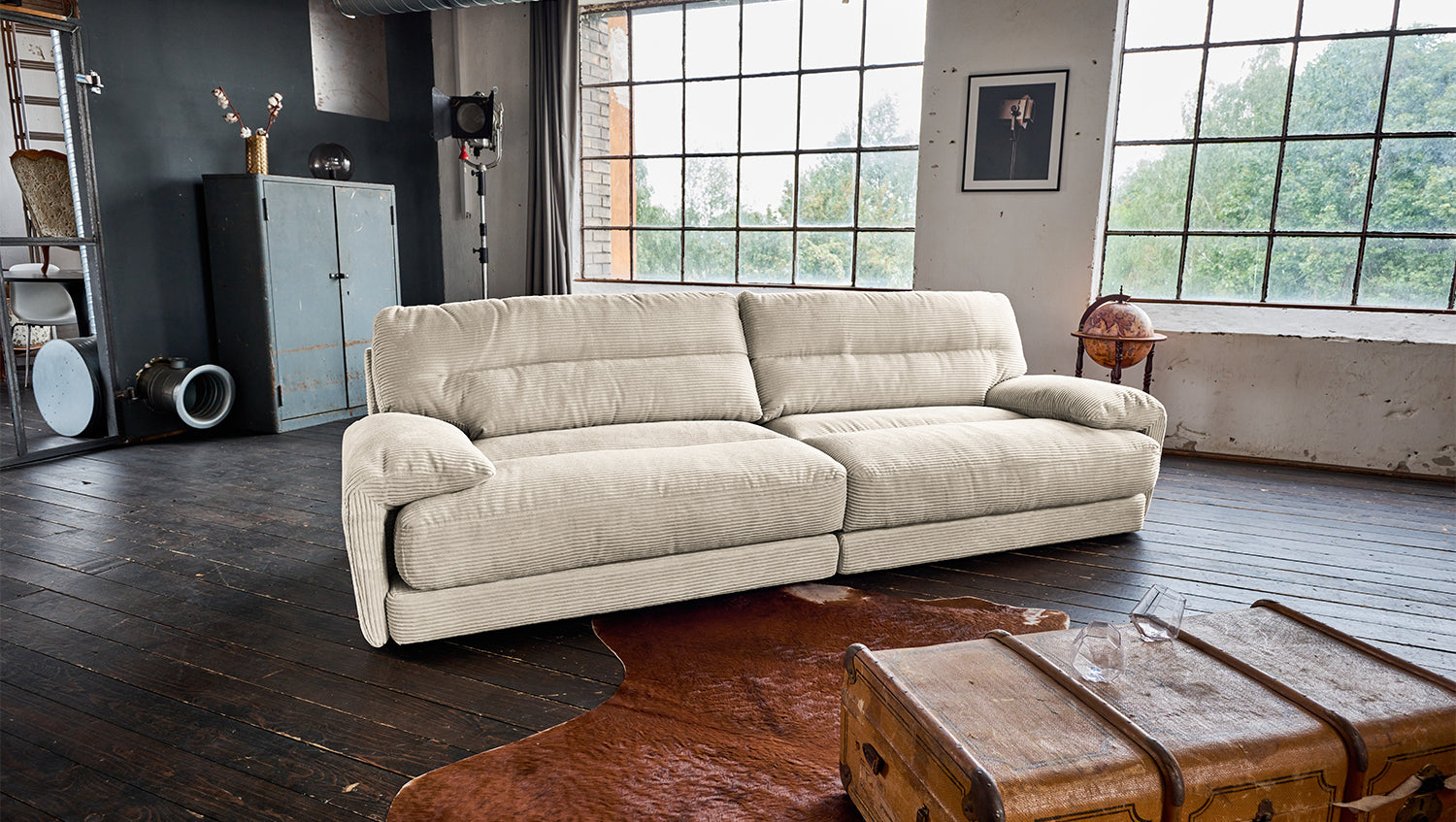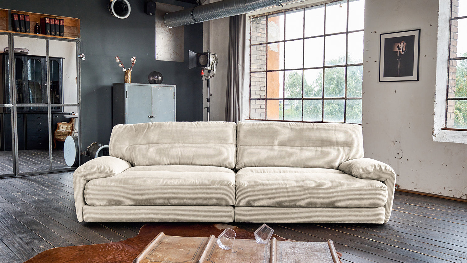 KAWOLA Sofá CINE XXL-Sofá 3 plazas pana crema blanco