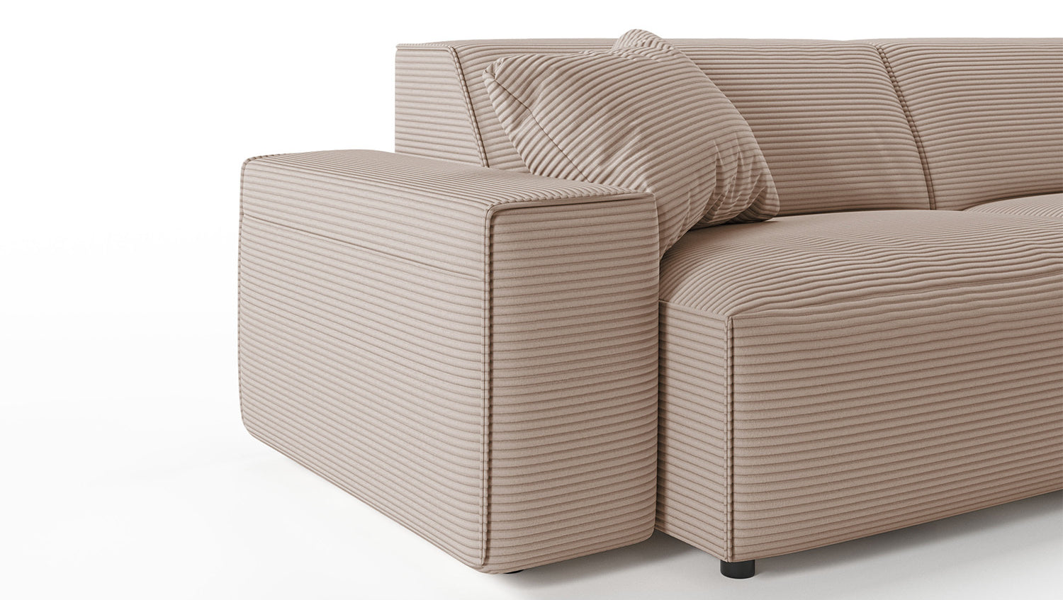Relájate en el cómodo sillón de 3 plazas KAWOLA RANI con su acogedora funda de pana. El robusto armazón de madera maciza garantiza estabilidad y durabilidad, mientras que los mullidos asientos y respaldos con su acolchado de espuma fría proporcionan un confort óptimo. La moderna funda de pana no sólo es muy resistente, sino que también confiere al sofá un aspecto moderno y un tacto agradable. Es la elección perfecta para cualquiera que busque un sofá elegante y cómodo para el salón. Prepárese para reclinarse en nuestro RANI de 3 plazas y disfrutar de la vida! Instrucciones de cuidado Pana: Debe aspirar el sofá con regularidad, preferiblemente con un accesorio de cepillo suave. Utilice un producto de limpieza suave y un paño húmedo para eliminar las manchas. Utilice muy poca agua al limpiar y deje que la funda se seque completamente antes de usarla. Evite la luz solar directa para evitar que se decolore.