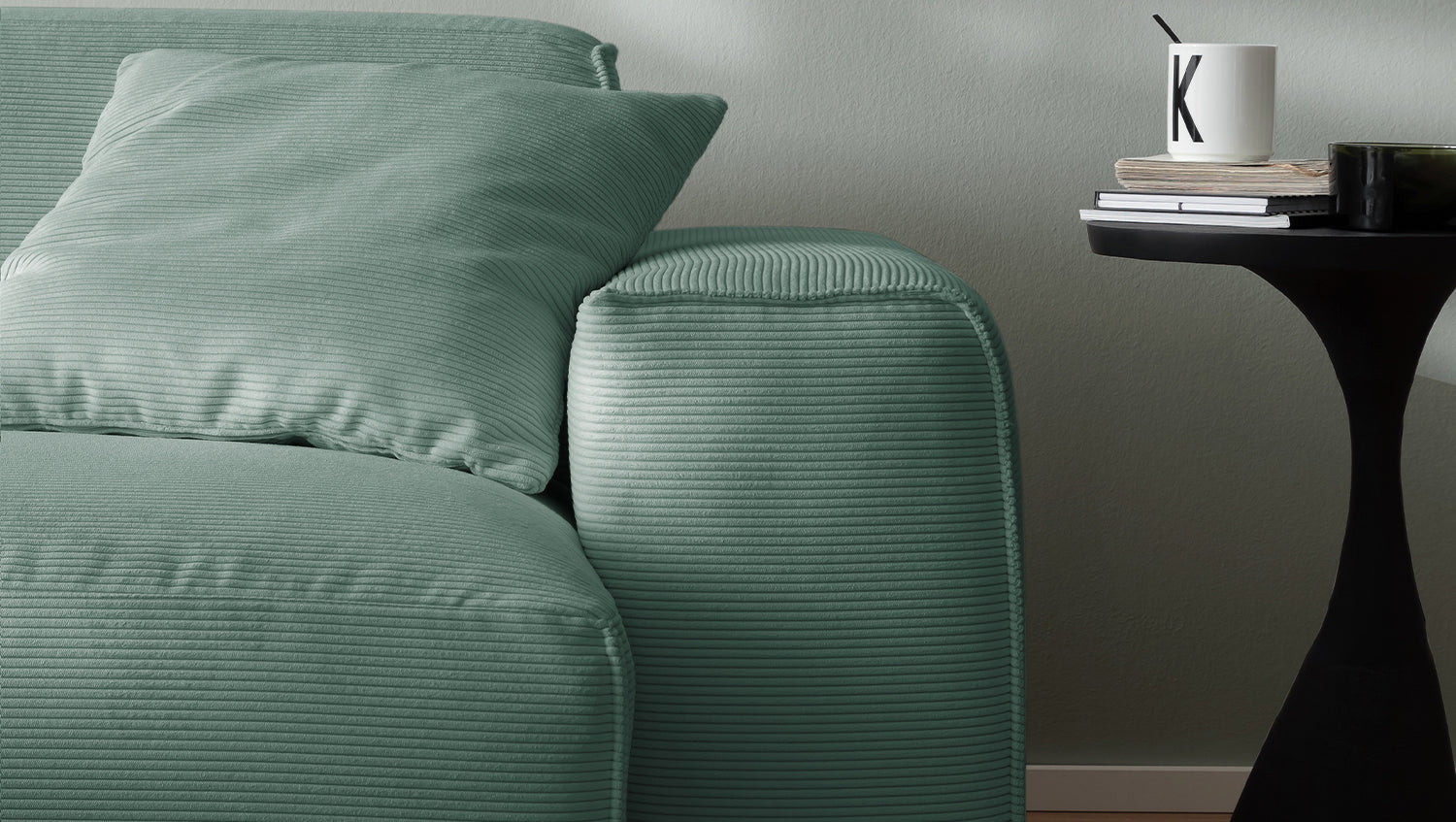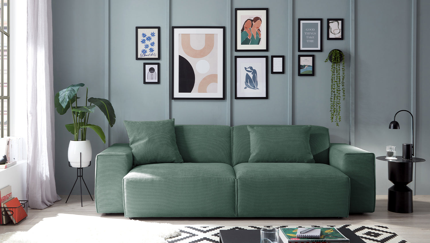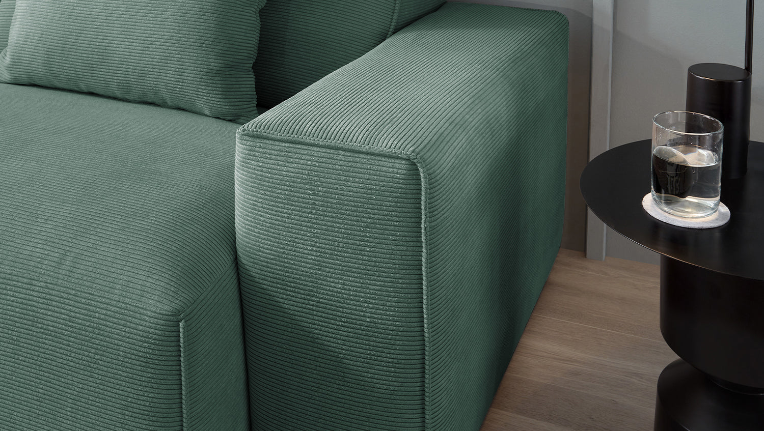 KAWOLA Sofá RANI 3 plazas pana fina verde