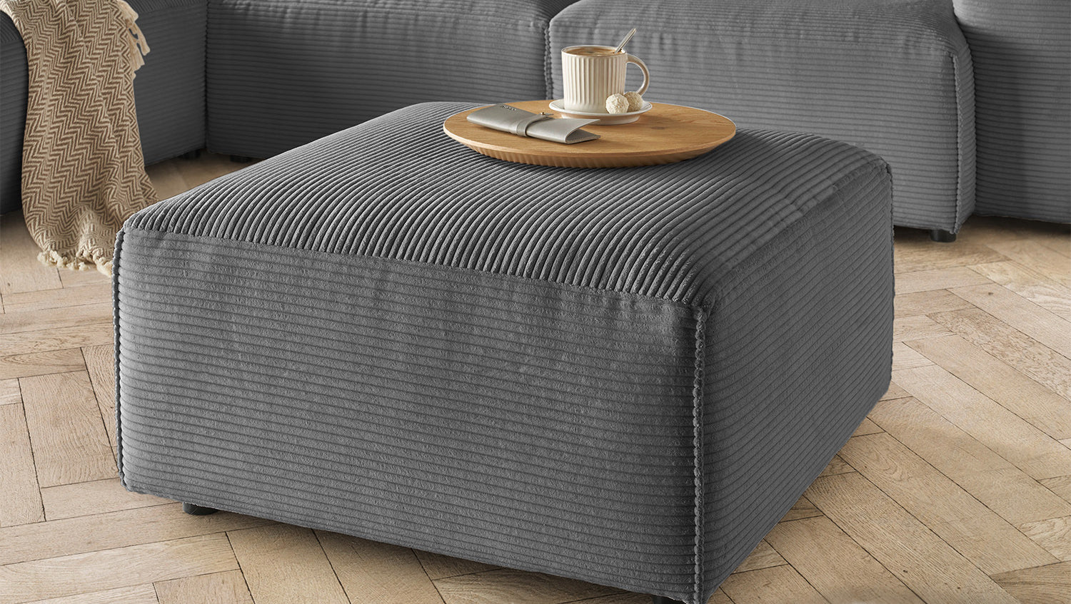 Relájate en el cómodo taburete tapizado RANI de KAWOLA con su acogedora funda de pana. El robusto armazón de madera maciza garantiza estabilidad y durabilidad, mientras que el mullido asiento con acolchado de espuma fría proporciona un confort óptimo. La funda de moderno tejido de pana no sólo es muy resistente, sino que confiere al Puf un aspecto moderno y un tacto agradable. Gracias a su diseño atemporal, se integra fácilmente en cualquier ambiente. El taburete tapizado RANI es la elección perfecta para cualquiera que busque un mueble elegante y cómodo para el salón. Instrucciones para el cuidado de la Pana: Debe aspirar el sofá con regularidad, preferiblemente con un accesorio de cepillo suave. Utilice un detergente suave y un paño húmedo para eliminar las manchas. Utilice muy poca agua al limpiar y deje que la funda se seque completamente antes de usarla. Evite la luz solar directa para evitar que se decolore.