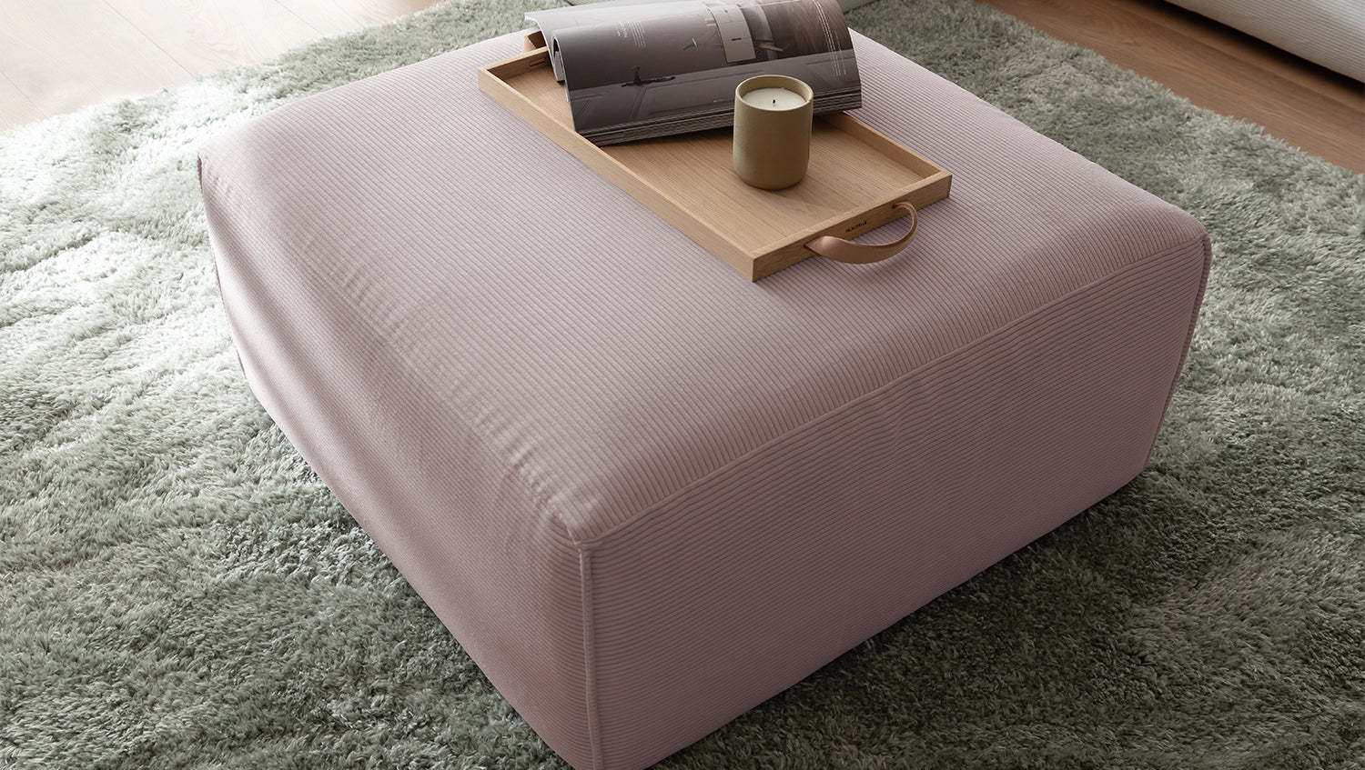 KAWOLA taburete RANI taburete tapizado Pana fina rosa