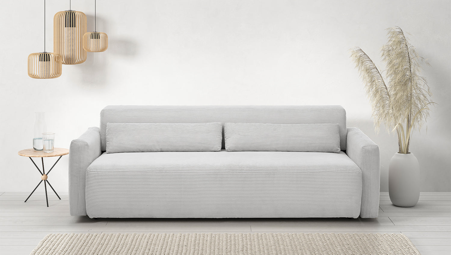KAWOLA Sofá cama NEO Sofá cama pana gris claro