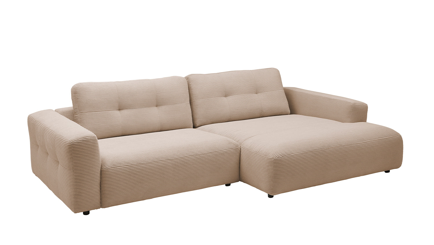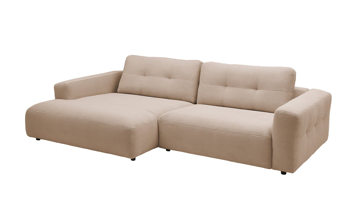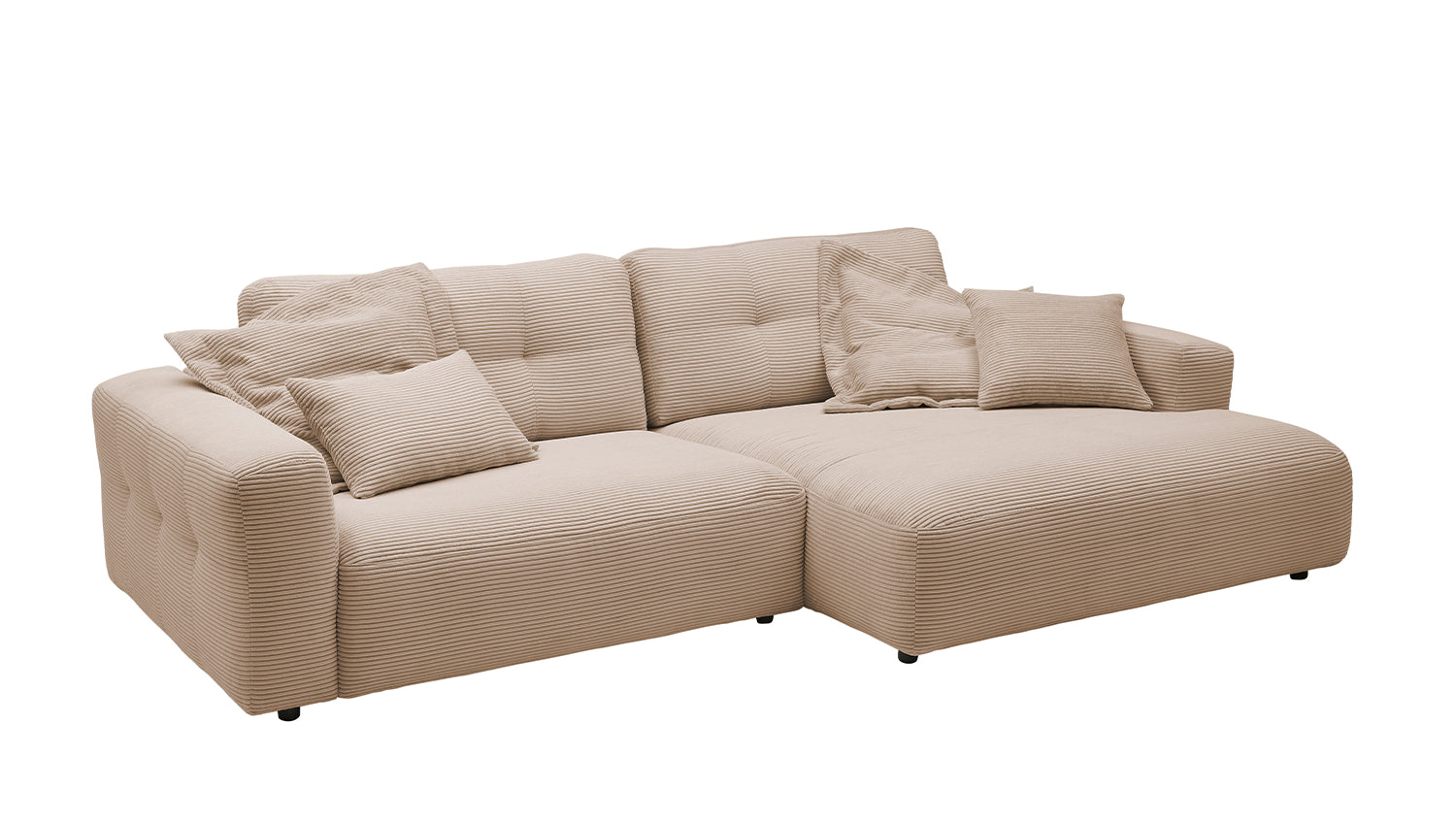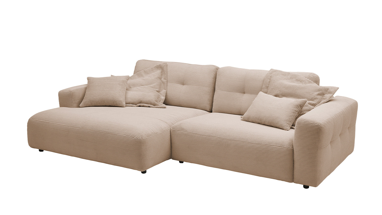 El sofá esquinero MIKA de KAWOLA combina un diseño moderno con un acabado de alta calidad y se convertirá en el centro de atención de su salón. Con su tapizado integral en la moderna tela Pana, el sofá resulta atractivo desde todos los ángulos y se puede colocar de forma flexible en la habitación. Su característica más destacada es la comodidad de asiento de firmeza media, que ofrece un agradable equilibrio entre apoyo y comodidad. Con unas dimensiones de 296 cm de ancho y 167 cm de fondo, el sofá ofrece espacio suficiente para pasar horas de relax, mientras que la suspensión de muelles ondulados del asiento y el duradero tapizado de espuma fría proporcionan comodidad y apoyo adicionales. Los deslizadores de plástico de las patas facilitan el desplazamiento y la colocación sobre diferentes revestimientos de suelo. El sofá rinconero MIKA de KAWOLA no sólo es elegante y cómodo, sino también muy acogedor, para pasar horas agradables en su salón. Regálese lo mejor y apueste por la calidad y el estilo: elija MIKA.