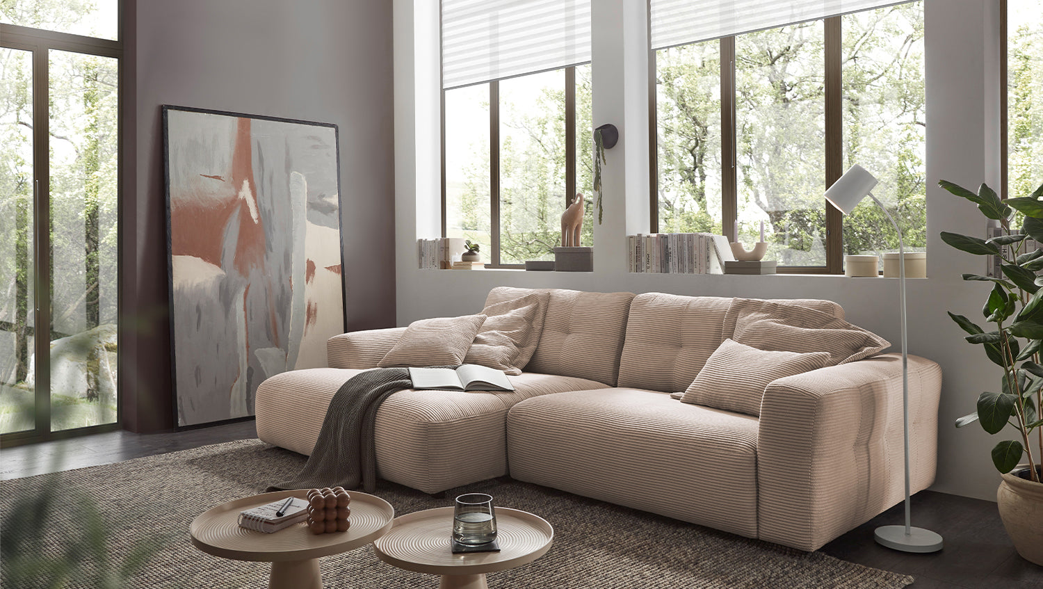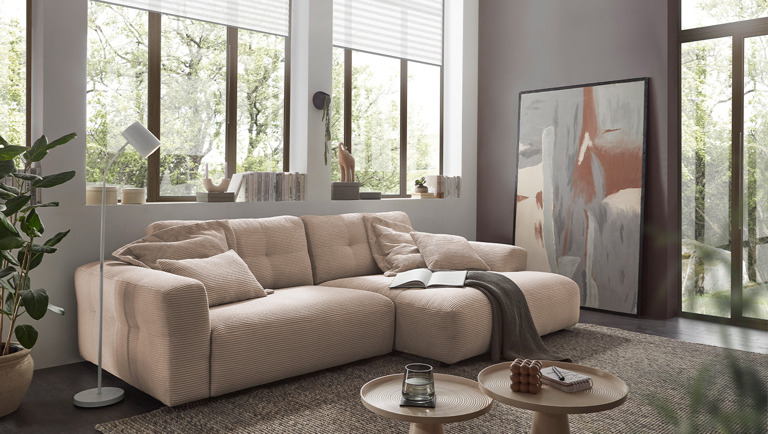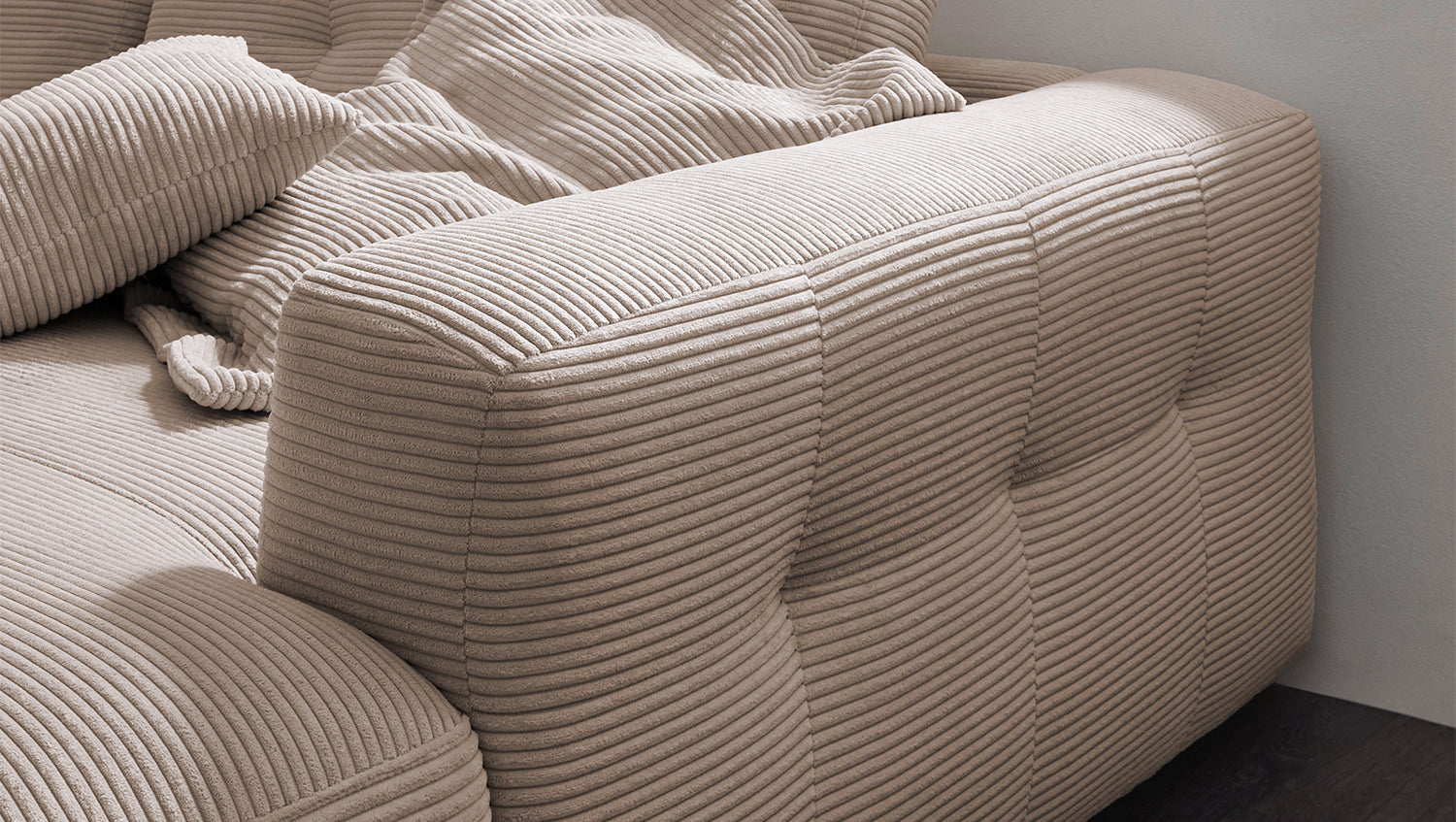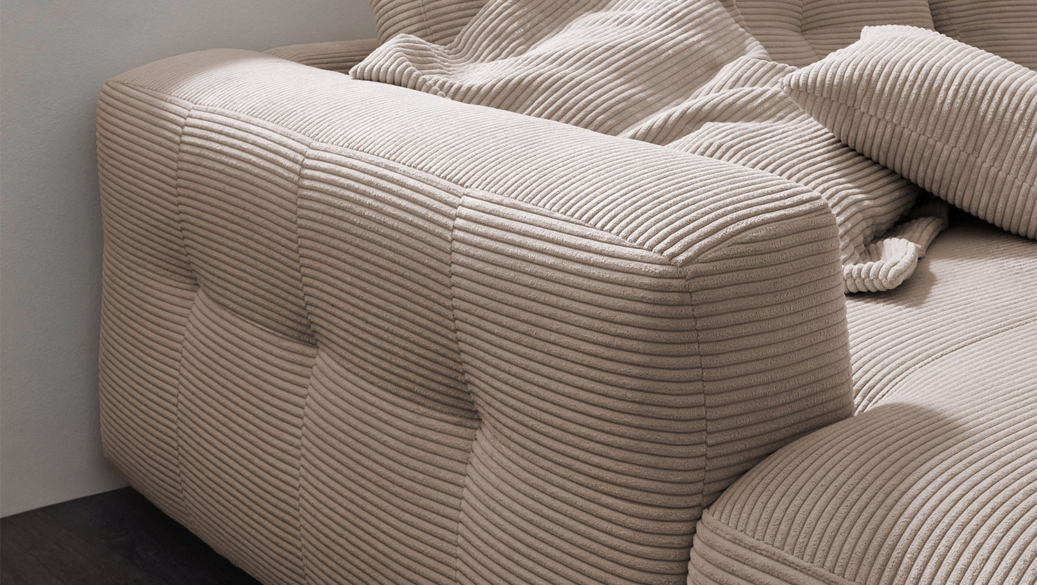 El sofá esquinero MIKA de KAWOLA combina un diseño moderno con un acabado de alta calidad y se convertirá en el centro de atención de su salón. Con su tapizado integral en la moderna tela Pana, el sofá resulta atractivo desde todos los ángulos y se puede colocar de forma flexible en la habitación. Su característica más destacada es la comodidad de asiento de firmeza media, que ofrece un agradable equilibrio entre apoyo y comodidad. Con unas dimensiones de 296 cm de ancho y 167 cm de fondo, el sofá ofrece espacio suficiente para pasar horas de relax, mientras que la suspensión de muelles ondulados del asiento y el duradero tapizado de espuma fría proporcionan comodidad y apoyo adicionales. Los deslizadores de plástico de las patas facilitan el desplazamiento y la colocación sobre diferentes revestimientos de suelo. El sofá rinconero MIKA de KAWOLA no sólo es elegante y cómodo, sino también muy acogedor, para pasar horas agradables en su salón. Regálese lo mejor y apueste por la calidad y el estilo: elija MIKA.