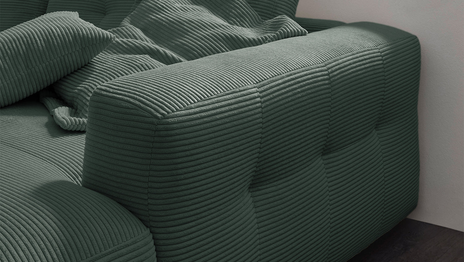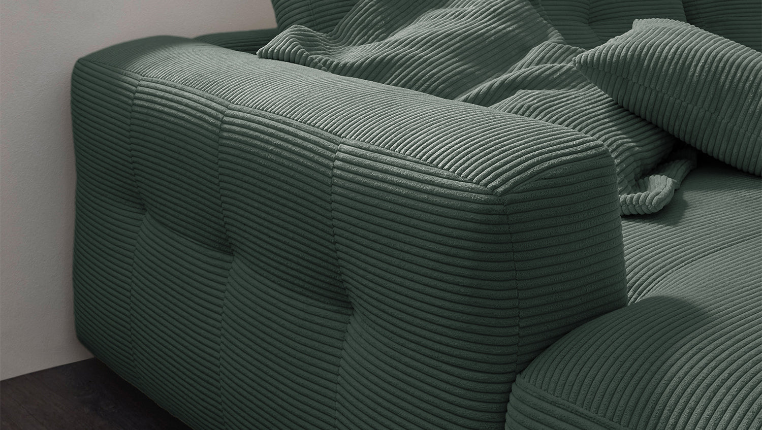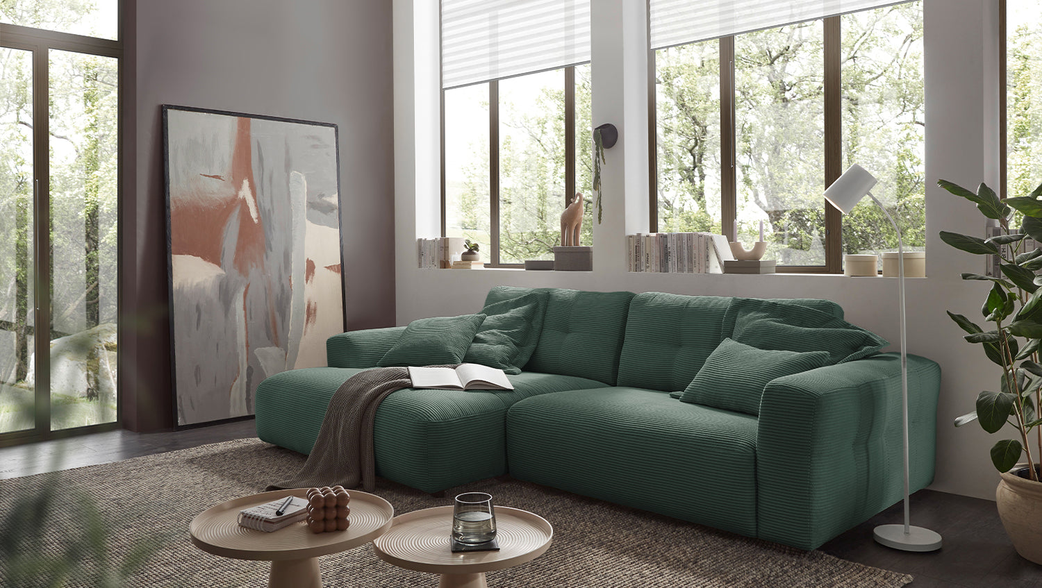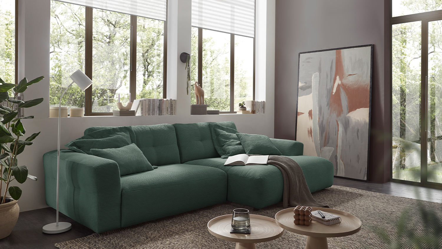 KAWOLA Sofá MIKA Sofá esquinero Pana esmeralda