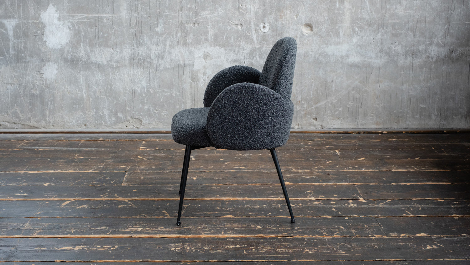 • Carcasa del asiento: Funda de tejido bouclé de alta calidad