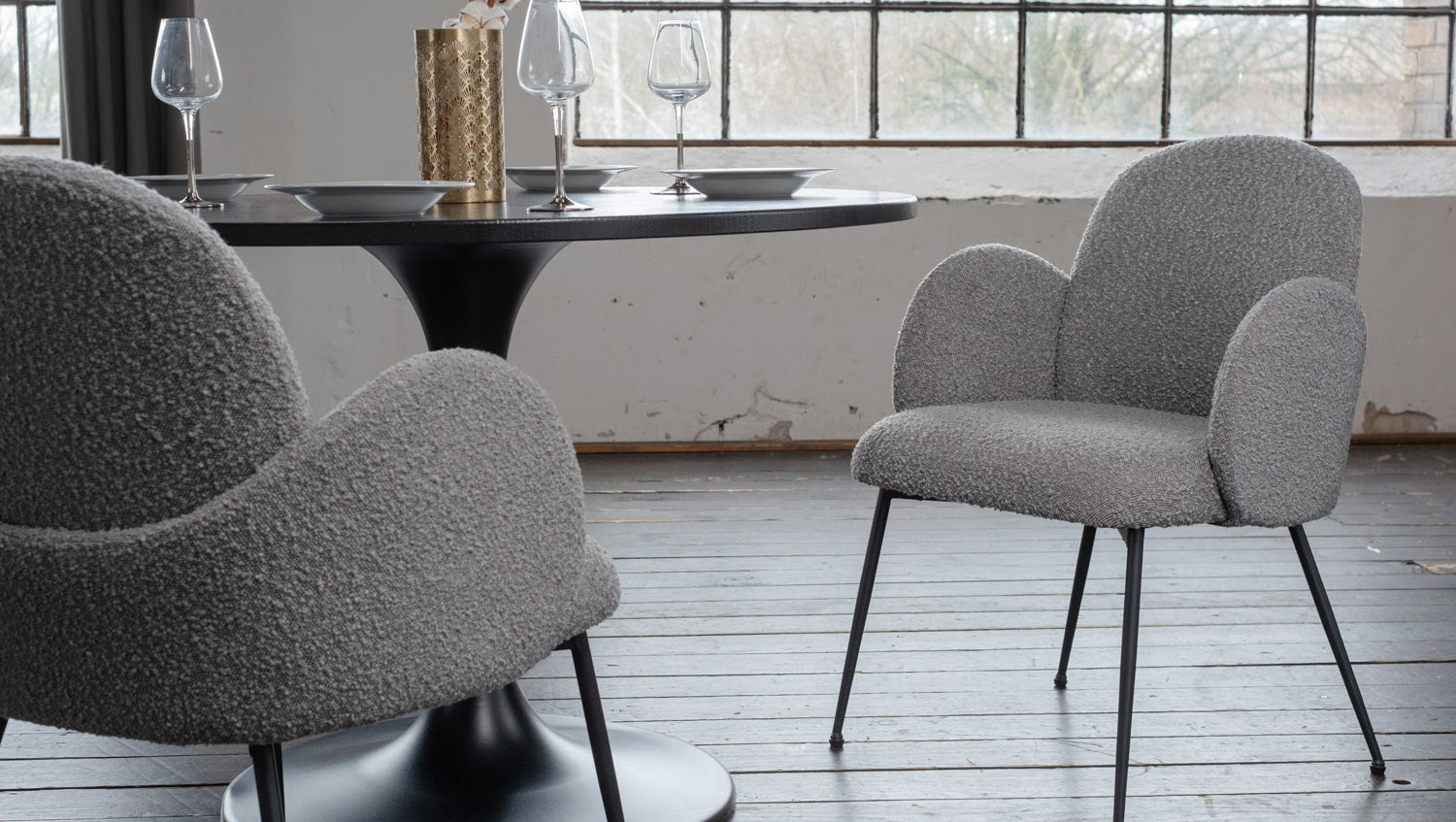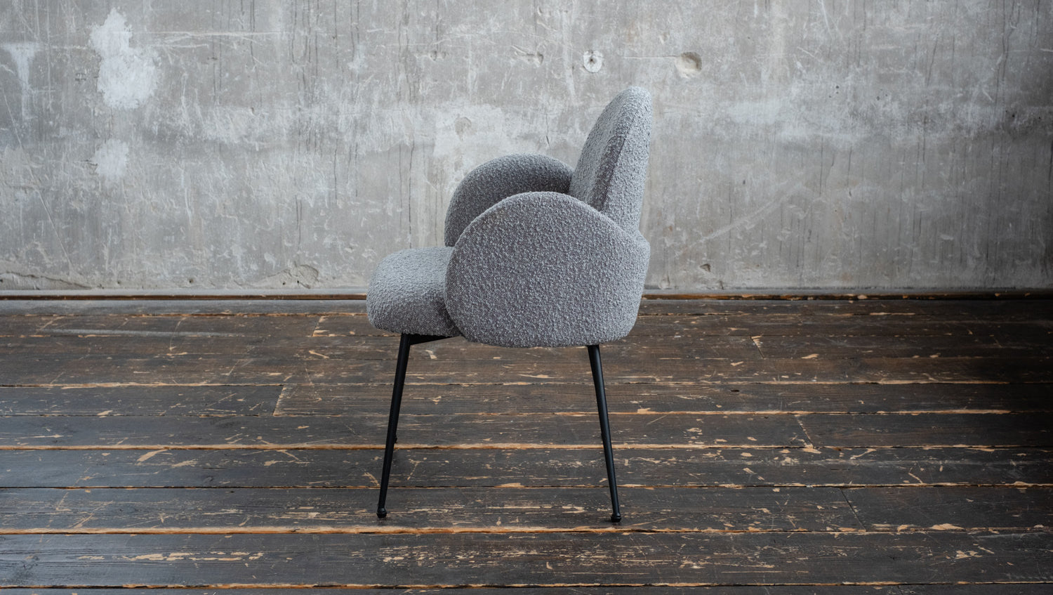 • Carcasa del asiento: Funda de tejido bouclé de alta calidad