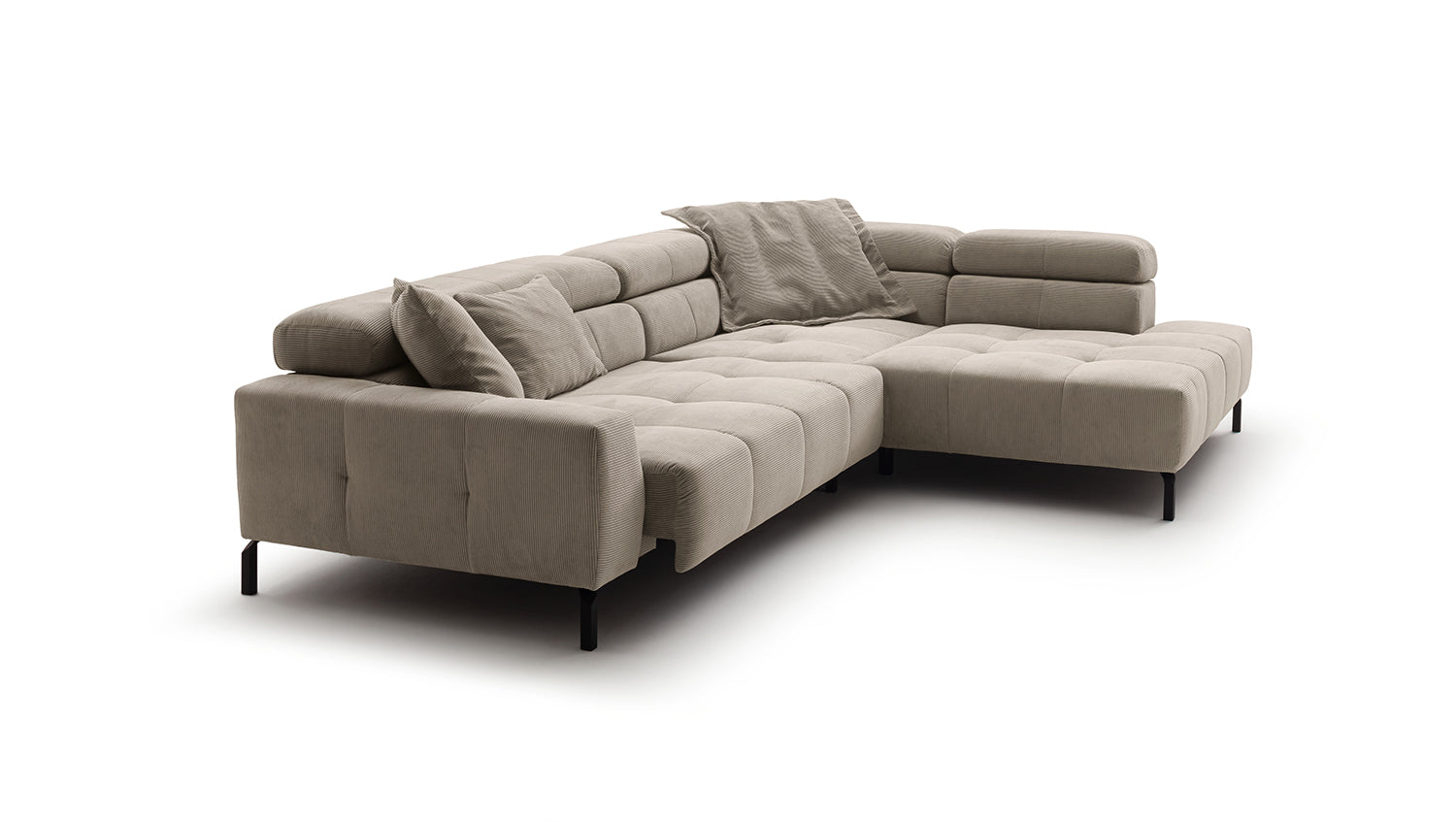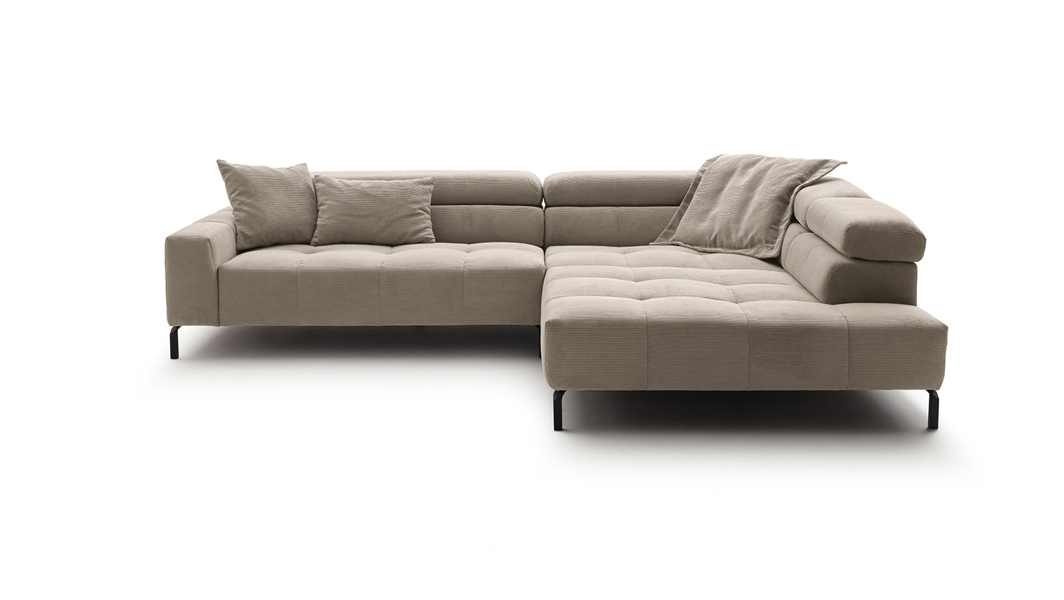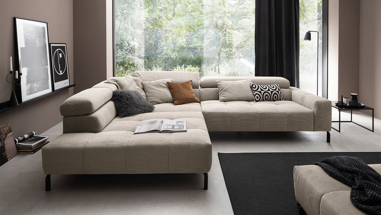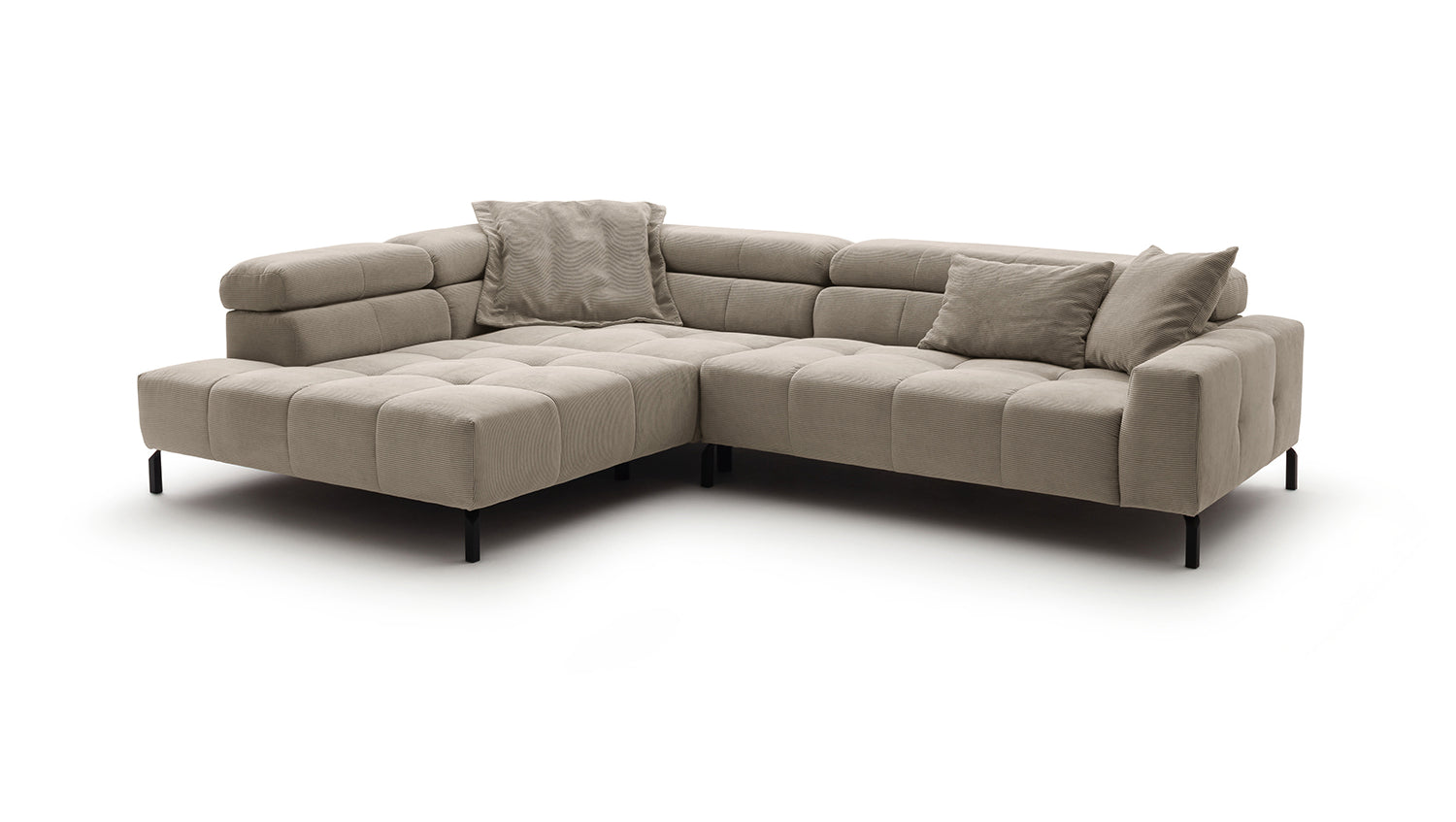 Descubra el elegante sofá esquinero OHIO de KAWOLA: la combinación perfecta de estilo y confort. La exclusiva Pana fina con acolchado integral confiere a su salón una elegancia atemporal. Disfrute de un confort de asiento de primera clase: el sofá ofrece un ajuste único de los reposacabezas: personalice su zona de asiento según sus necesidades, desde una suave inclinación hasta reposacabezas verticales. El sofá rinconero OHIO combina funcionalidad y diseño a la perfección. Gracias al confort de asiento de firmeza media, experimentará una mezcla ideal de apoyo y comodidad. La funda de pana no solo le da al sofá un aspecto cálido, sino que también le da un toque de estilo. Añada un toque de lujo y relajación a su hogar con el sofá rinconero OHIO de KAWOLA. Experimente un confort inigualable y un diseño atemporal: el hogar de sus sueños se hará realidad con este mueble único. Entrega sin cojines ni decoración