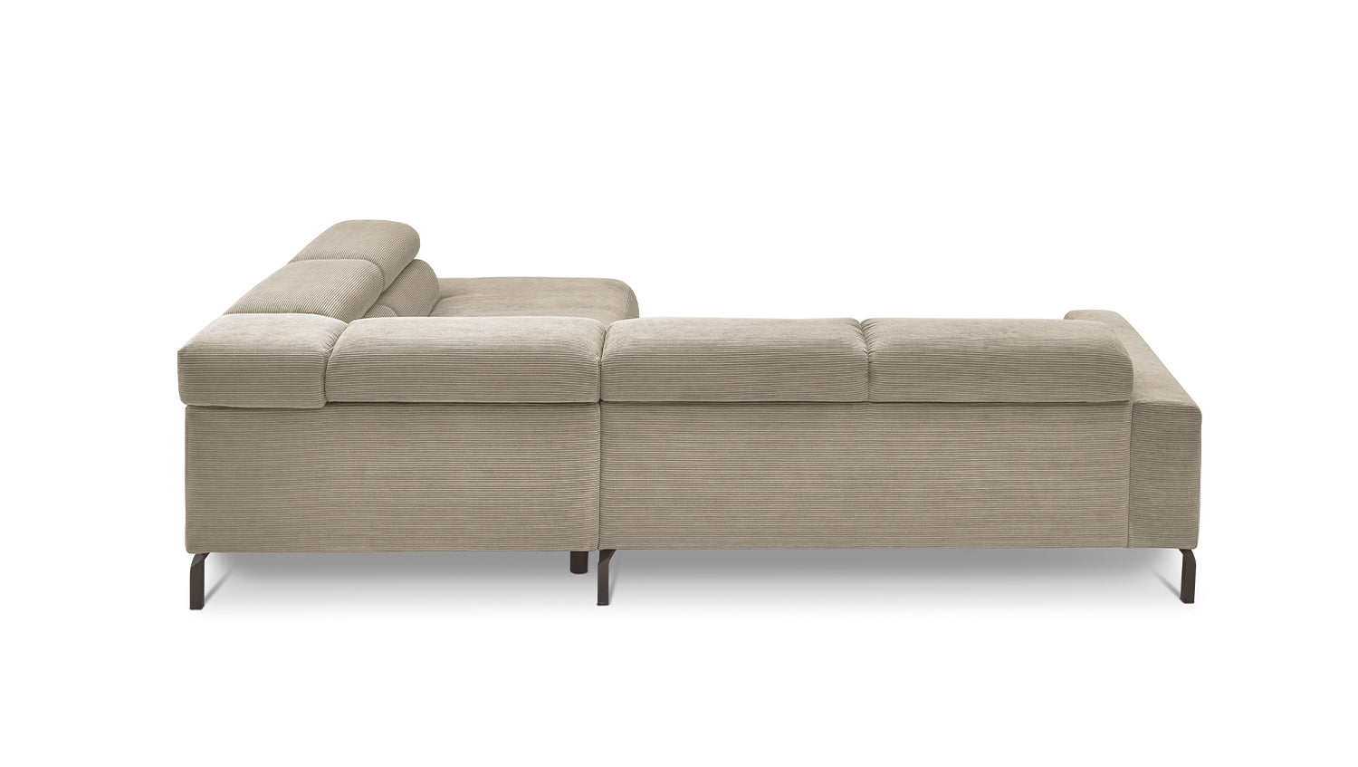 Descubra el exclusivo sofá esquinero DELIA de KAWOLA, una auténtica obra maestra en cuanto a diseño y confort. El tapizado integral en delicada Pana fina le da a este sofá un toque lujoso y crea un ambiente acogedor. Disfrute de un lujo ergonómico con el respaldo de espuma moldeada y el asiento con muelles ondulados y espuma PUR de alta calidad para un confort óptimo. La tapicería del asiento, de firmeza media, ofrece el equilibrio perfecto entre apoyo y comodidad, mientras que la innovadora función de ajuste del reposacabezas permite inclinarlo o elevarlo individualmente. Perfecto para relajarse leyendo o viendo películas. El sofá esquinero DELIA combina funcionalidad y estilo al más alto nivel. Este sofá no sólo atrae las miradas, sino que también es un lugar para relajarse. Sumérjase en el encanto único de DELIA, el sofá esquinero para entendidos exigentes. Se entrega sin cojines ni decoración.