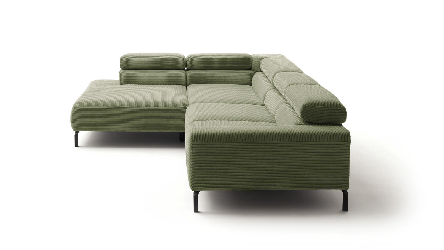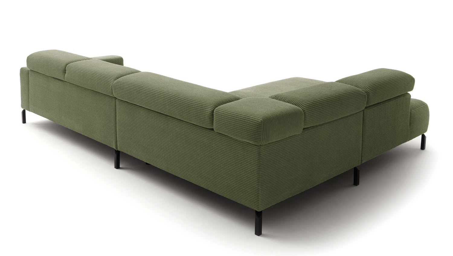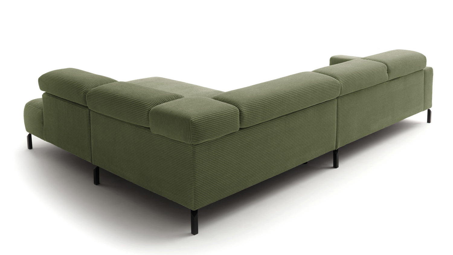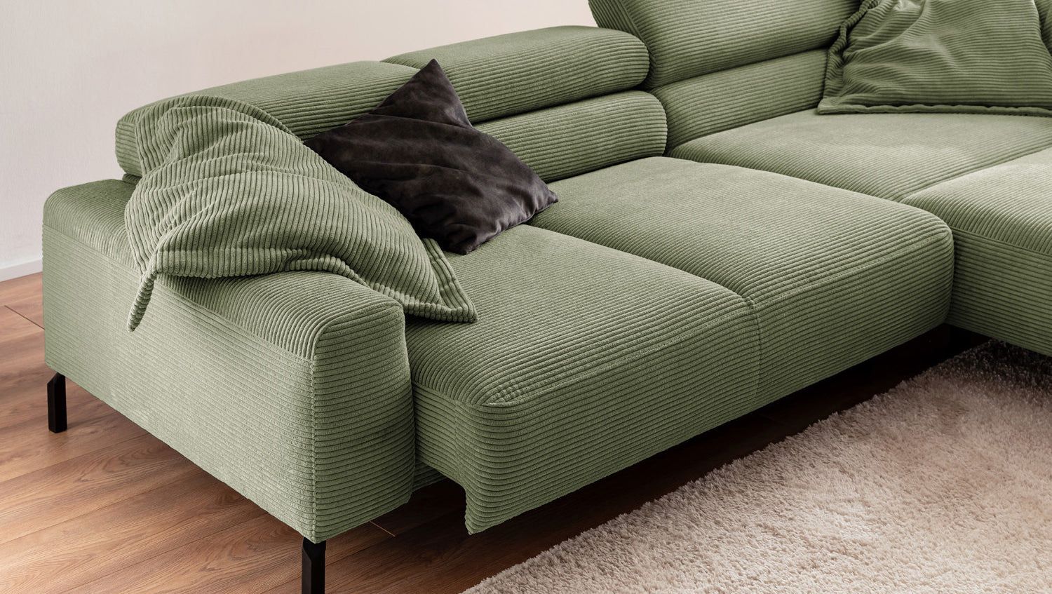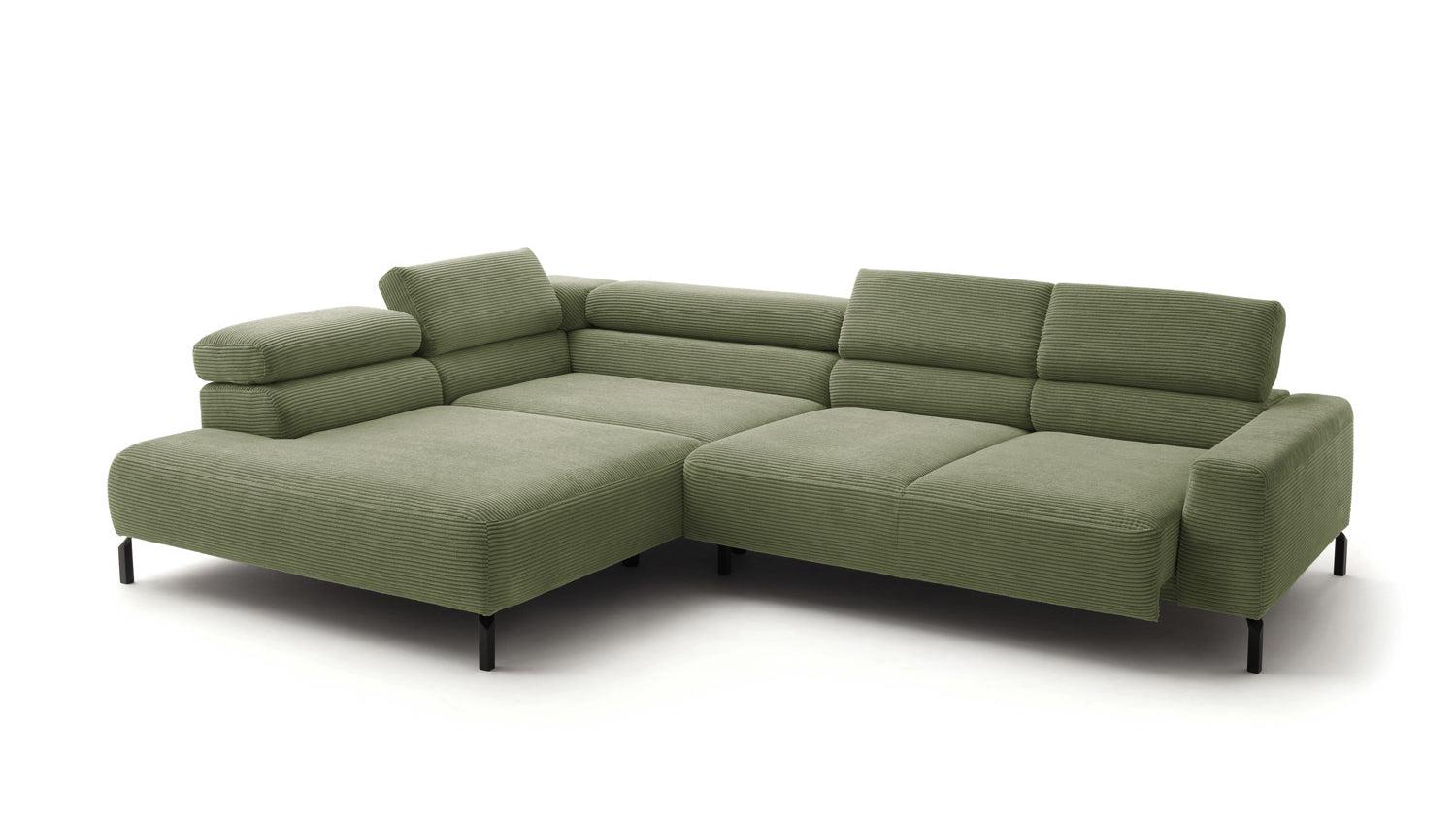 Descubra el exclusivo sofá esquinero DELIA de KAWOLA, una auténtica obra maestra en cuanto a diseño y confort. El tapizado integral de pana de alta calidad le da un toque lujoso y crea un ambiente acogedor. Disfrute del lujo ergonómico con el respaldo de espuma especialmente moldeada y el asiento, equipado con muelles ondulados y espuma PUR de alta calidad para un confort óptimo. El acolchado del asiento, de firmeza media, ofrece el equilibrio perfecto entre apoyo y comodidad, mientras que la innovadora función de ajuste del reposacabezas permite inclinarlo o elevarlo individualmente. Perfecto para relajarse leyendo o viendo películas. El sofá esquinero DELIA combina funcionalidad y estilo al más alto nivel. Este sofá no sólo atrae las miradas, sino que también es un lugar para relajarse. Sumérjase en el encanto único de DELIA, el sofá esquinero para entendidos exigentes. Se entrega sin cojines ni decoración.