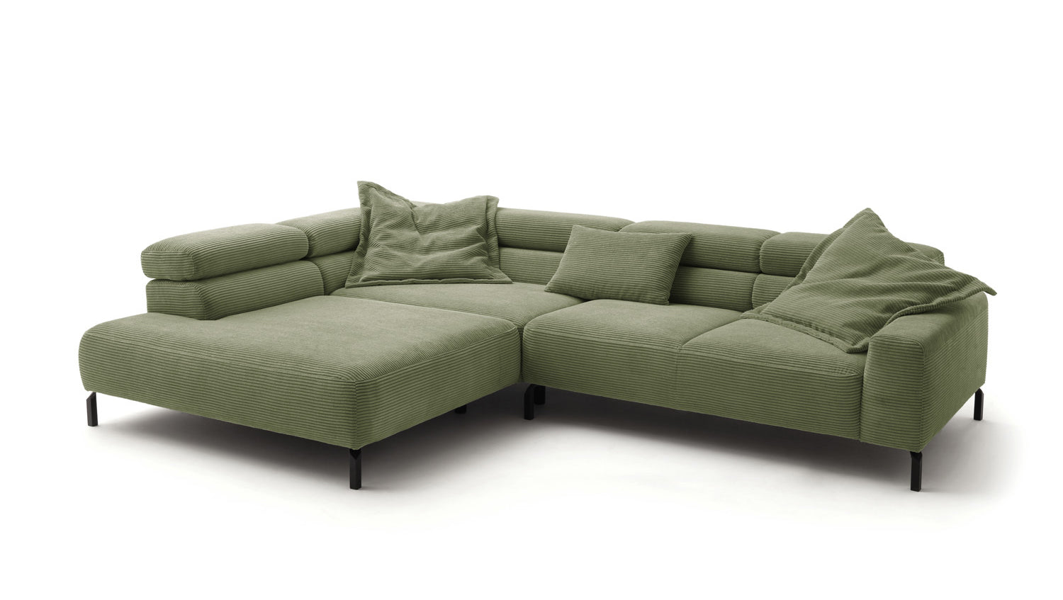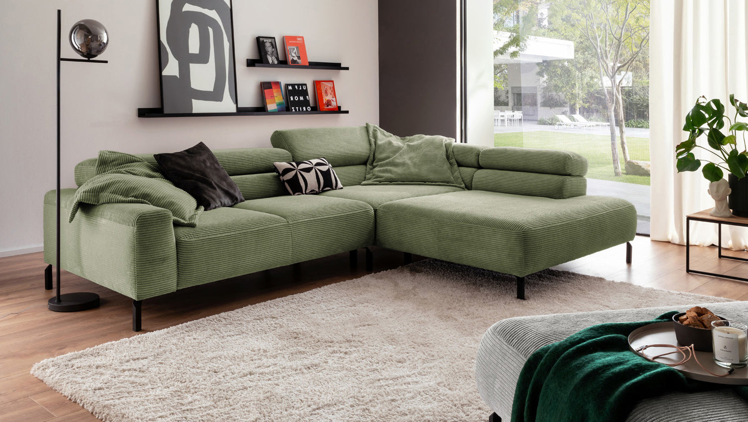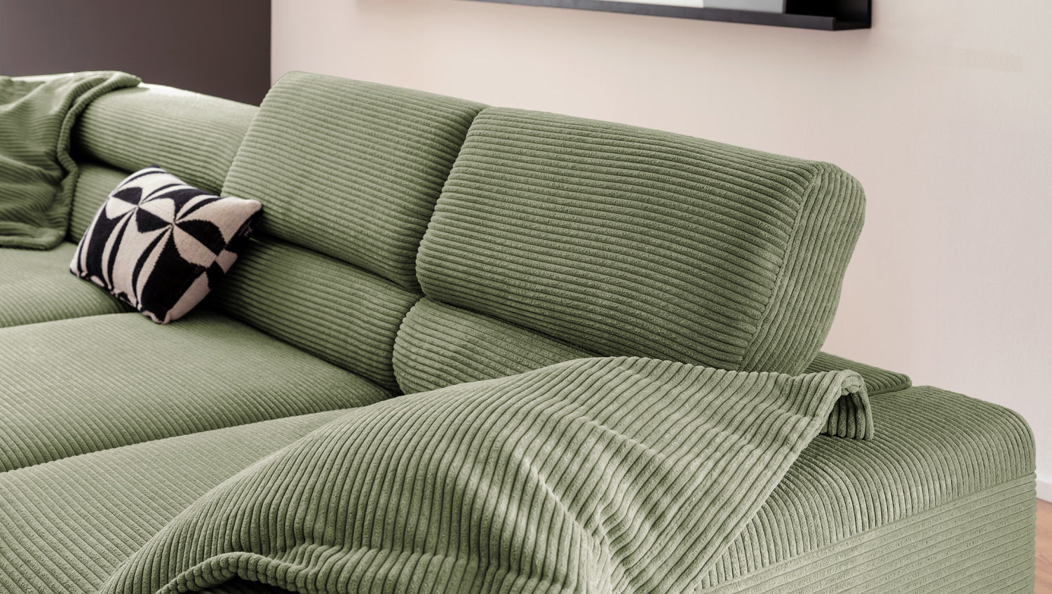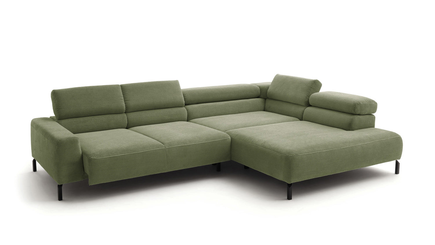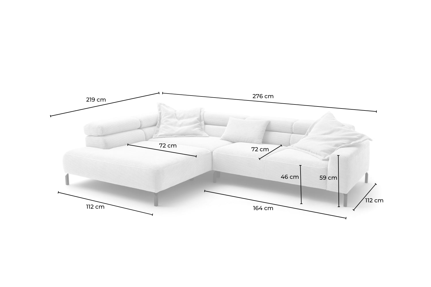 Descubra el exclusivo sofá esquinero DELIA de KAWOLA, una auténtica obra maestra en cuanto a diseño y confort. El tapizado integral de pana de alta calidad le da un toque lujoso y crea un ambiente acogedor. Disfrute del lujo ergonómico con el respaldo de espuma especialmente moldeada y el asiento, equipado con muelles ondulados y espuma PUR de alta calidad para un confort óptimo. El acolchado del asiento, de firmeza media, ofrece el equilibrio perfecto entre apoyo y comodidad, mientras que la innovadora función de ajuste del reposacabezas permite inclinarlo o elevarlo individualmente. Perfecto para relajarse leyendo o viendo películas. El sofá esquinero DELIA combina funcionalidad y estilo al más alto nivel. Este sofá no sólo atrae las miradas, sino que también es un lugar para relajarse. Sumérjase en el encanto único de DELIA, el sofá esquinero para entendidos exigentes. Se entrega sin cojines ni decoración.