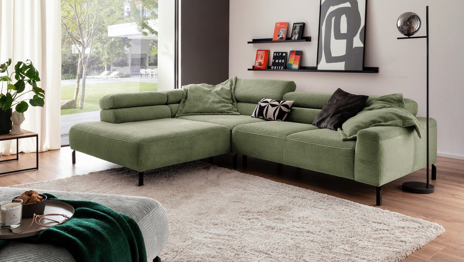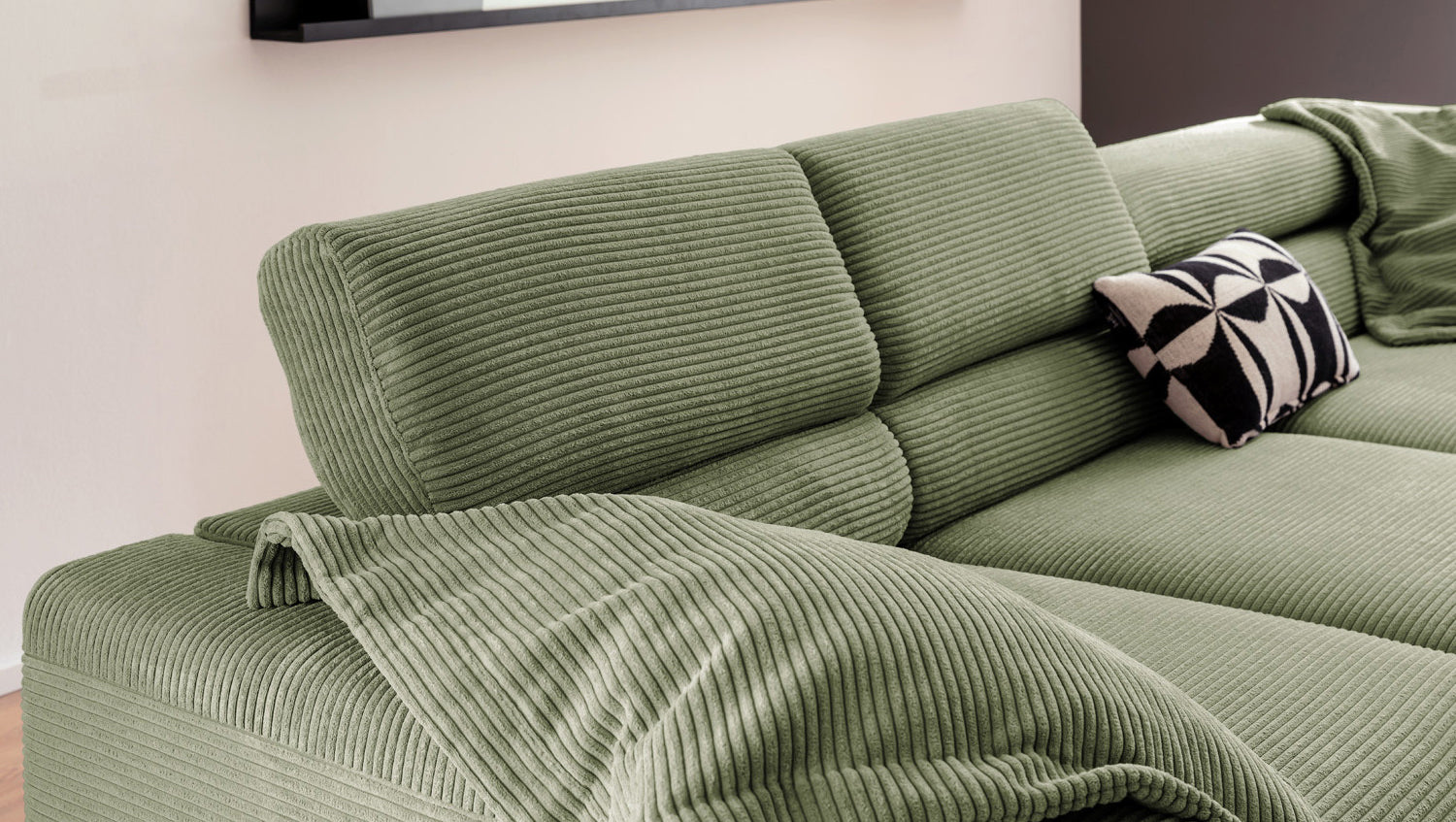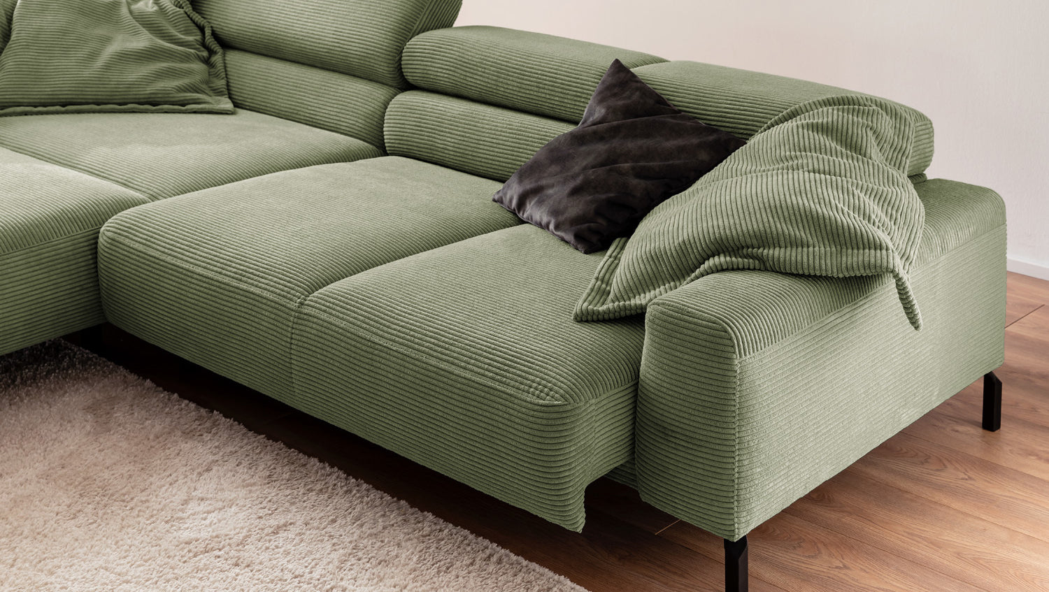 KAWOLA Sofá DELIA Sofá esquinero de pana verde oliva