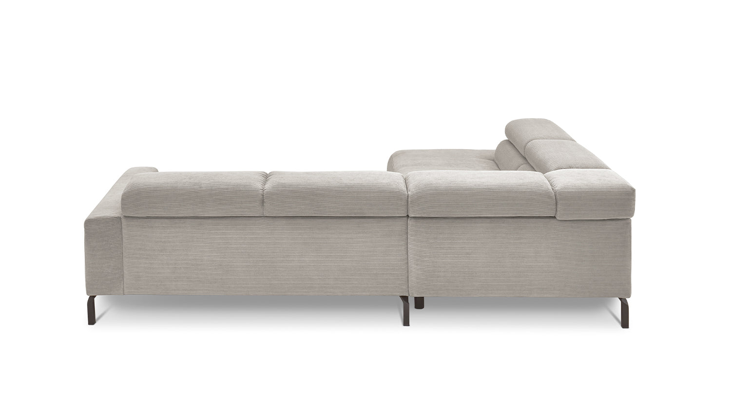 Descubra el exclusivo sofá esquinero DELIA de KAWOLA, una auténtica obra maestra en cuanto a diseño y confort. El tapizado integral en delicada Pana fina le da a este sofá un toque lujoso y crea un ambiente acogedor. Disfrute de un lujo ergonómico con el respaldo de espuma moldeada y el asiento con muelles ondulados y espuma PUR de alta calidad para un confort óptimo. La tapicería del asiento, de firmeza media, ofrece el equilibrio perfecto entre apoyo y comodidad, mientras que la innovadora función de ajuste del reposacabezas permite inclinarlo o elevarlo individualmente. Perfecto para relajarse leyendo o viendo películas. El sofá esquinero DELIA combina funcionalidad y estilo al más alto nivel. Este sofá no sólo atrae las miradas, sino que también es un lugar para relajarse. Sumérjase en el encanto único de DELIA, el sofá esquinero para entendidos exigentes. Se entrega sin cojines ni decoración.
