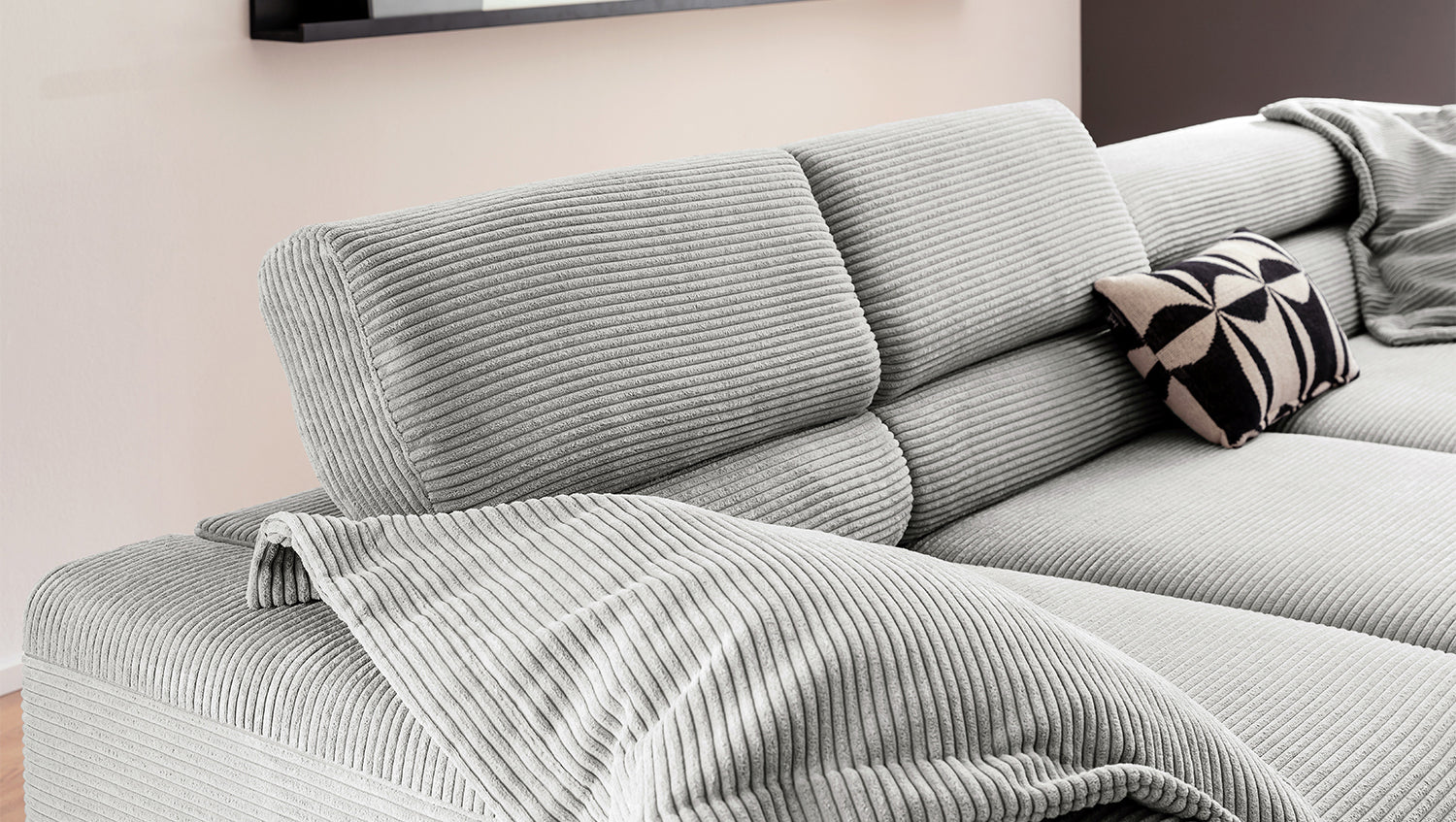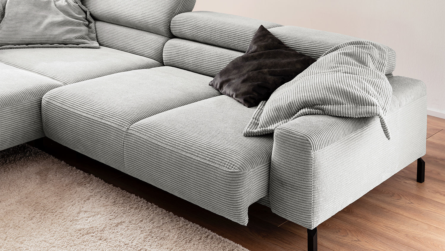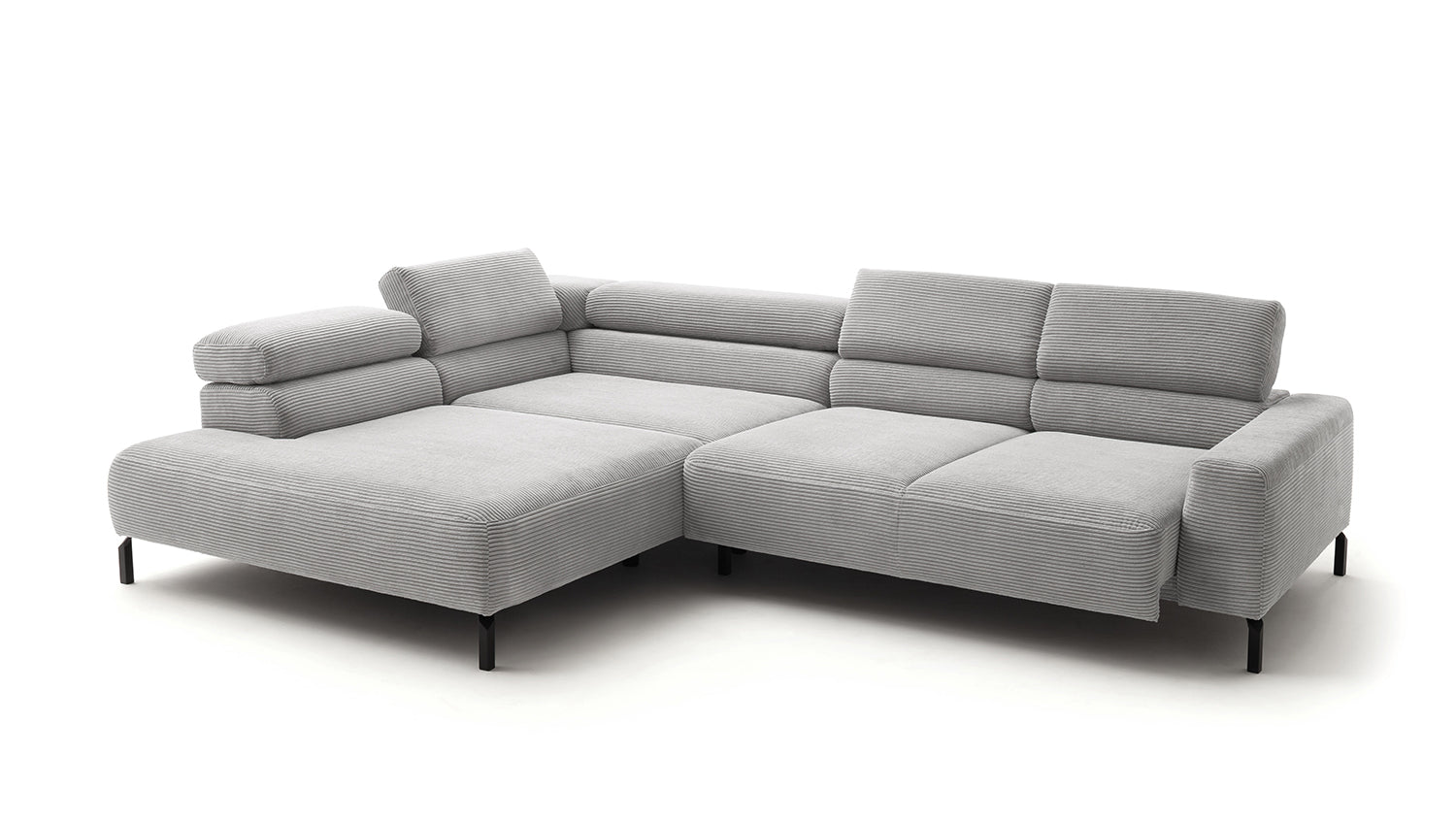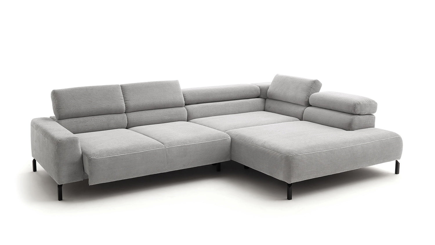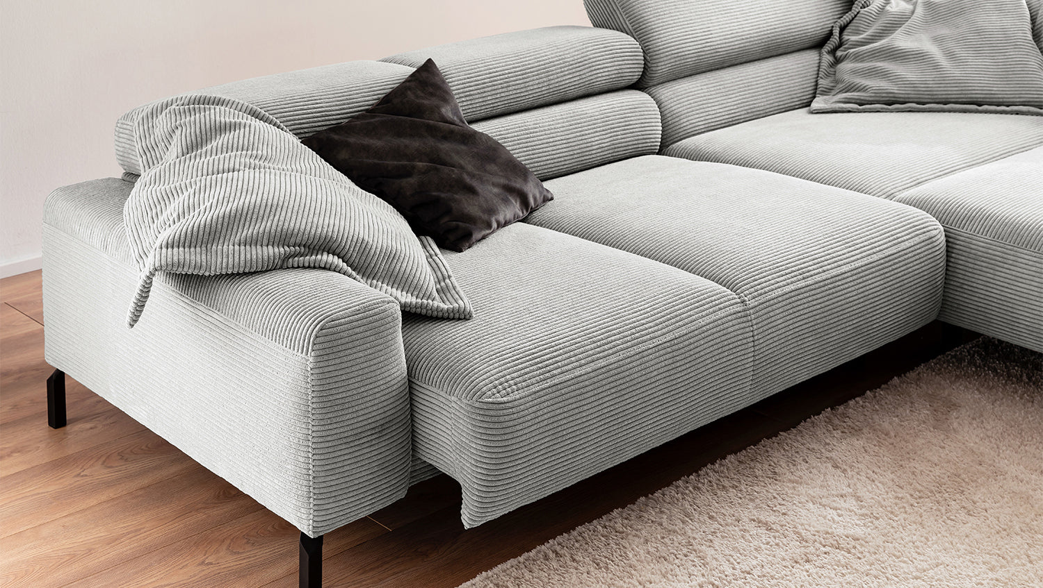 Descubra el exclusivo sofá esquinero DELIA de KAWOLA, una auténtica obra maestra en cuanto a diseño y confort. El tapizado integral de pana de alta calidad le da un toque lujoso y crea un ambiente acogedor. Disfrute del lujo ergonómico con el respaldo de espuma especialmente moldeada y el asiento, equipado con muelles ondulados y espuma PUR de alta calidad para un confort óptimo. El acolchado del asiento, de firmeza media, ofrece el equilibrio perfecto entre apoyo y comodidad, mientras que la innovadora función de ajuste del reposacabezas permite inclinarlo o elevarlo individualmente. Perfecto para relajarse leyendo o viendo películas. El sofá esquinero DELIA combina funcionalidad y estilo al más alto nivel. Este sofá no sólo atrae las miradas, sino que también es un lugar para relajarse. Sumérjase en el encanto único de DELIA, el sofá esquinero para entendidos exigentes. Se entrega sin cojines ni decoración.