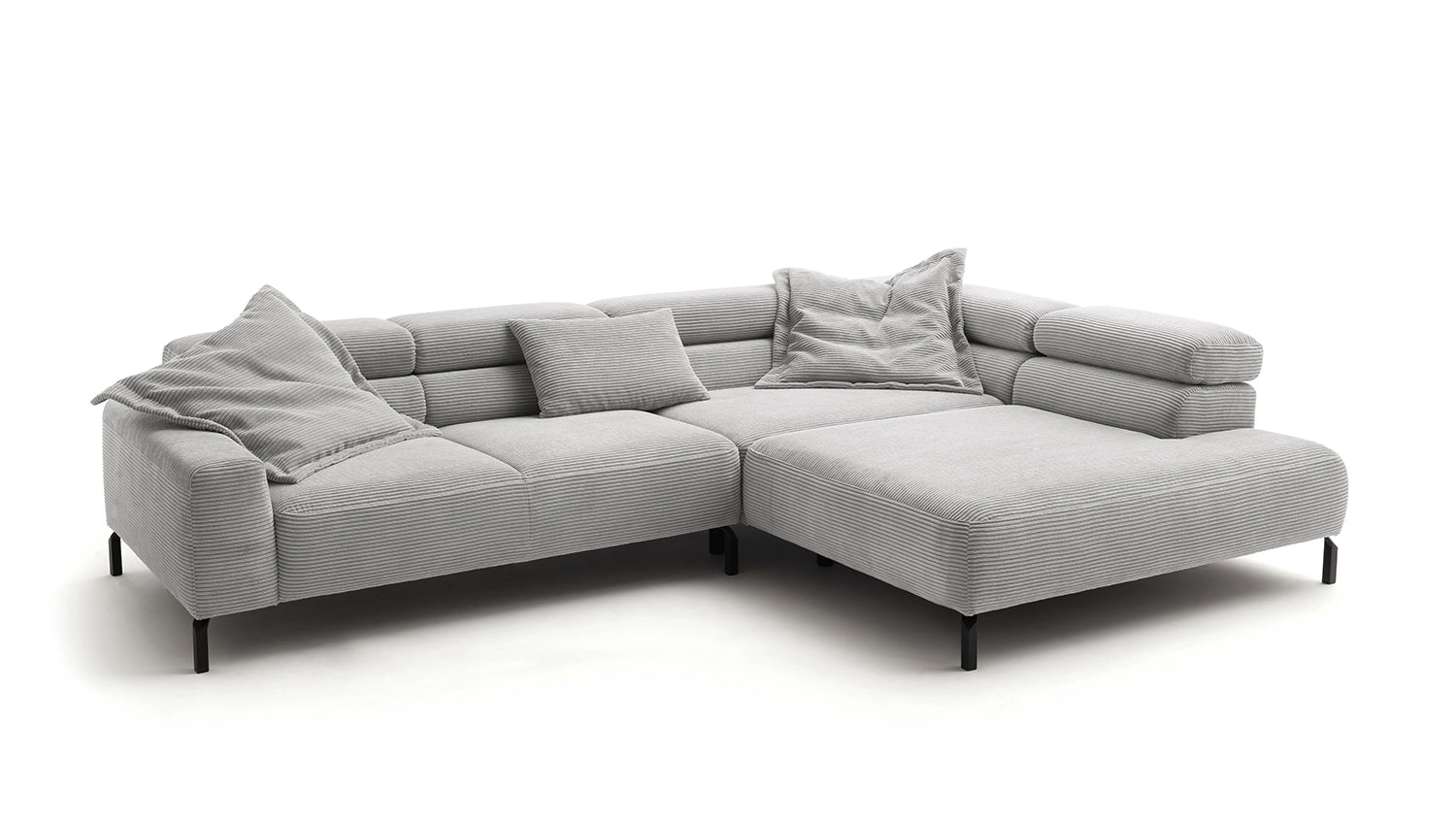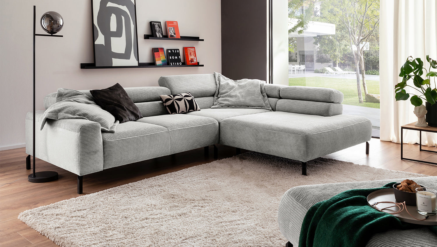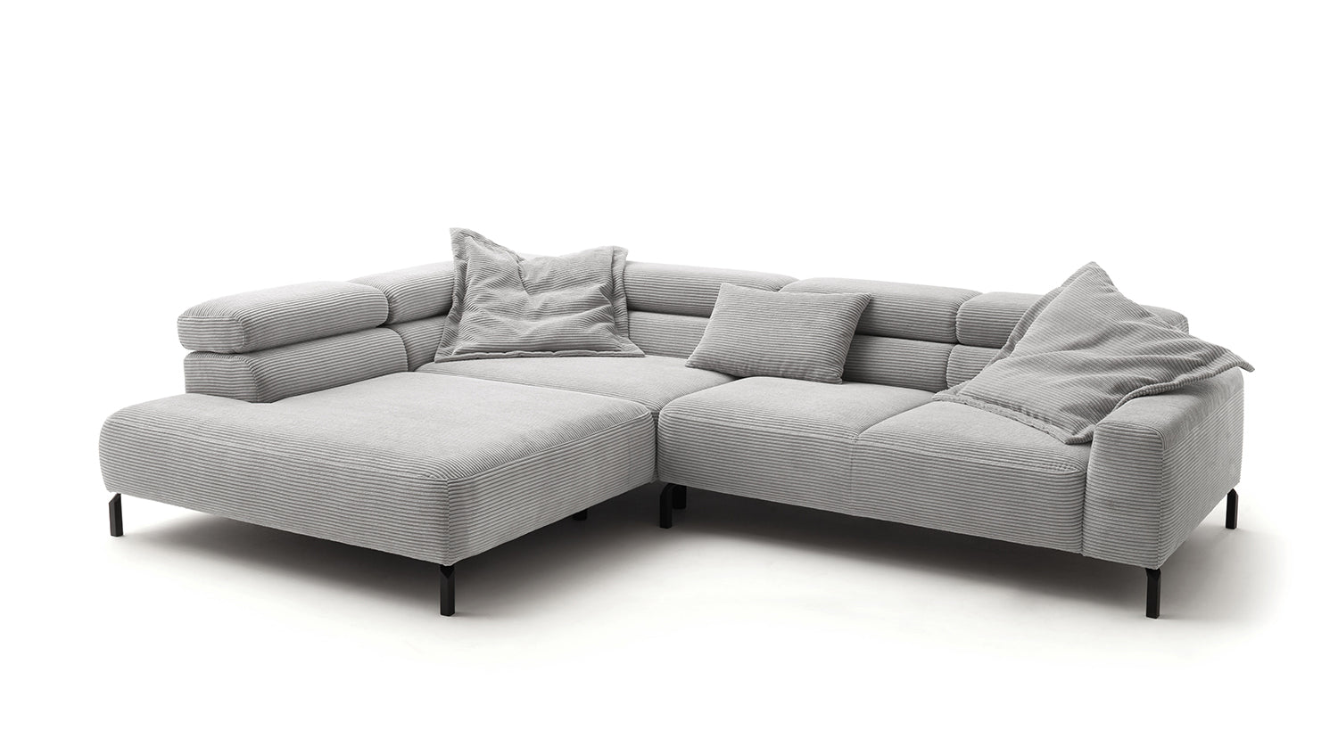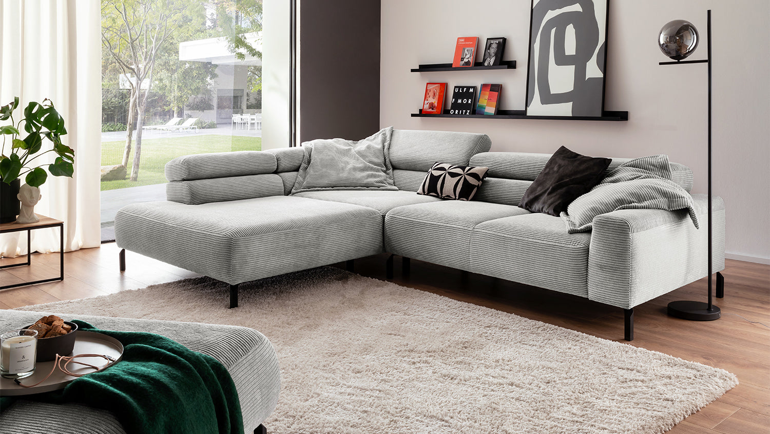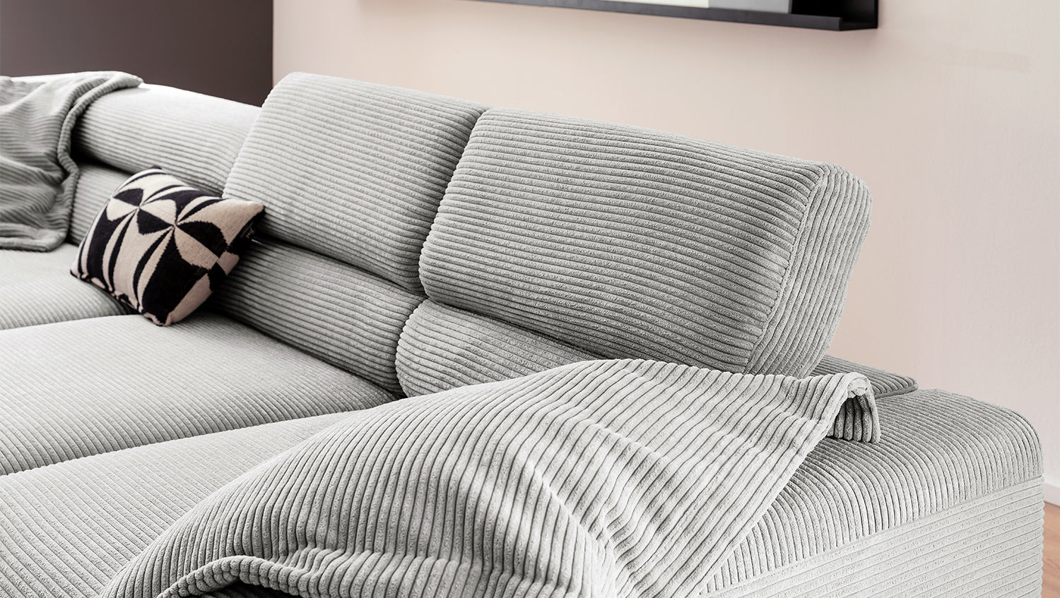 Descubra el exclusivo sofá esquinero DELIA de KAWOLA, una auténtica obra maestra en cuanto a diseño y confort. El tapizado integral de pana de alta calidad le da un toque lujoso y crea un ambiente acogedor. Disfrute del lujo ergonómico con el respaldo de espuma especialmente moldeada y el asiento, equipado con muelles ondulados y espuma PUR de alta calidad para un confort óptimo. El acolchado del asiento, de firmeza media, ofrece el equilibrio perfecto entre apoyo y comodidad, mientras que la innovadora función de ajuste del reposacabezas permite inclinarlo o elevarlo individualmente. Perfecto para relajarse leyendo o viendo películas. El sofá esquinero DELIA combina funcionalidad y estilo al más alto nivel. Este sofá no sólo atrae las miradas, sino que también es un lugar para relajarse. Sumérjase en el encanto único de DELIA, el sofá esquinero para entendidos exigentes. Se entrega sin cojines ni decoración.