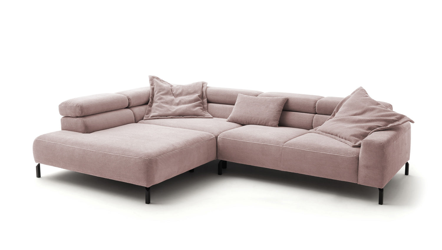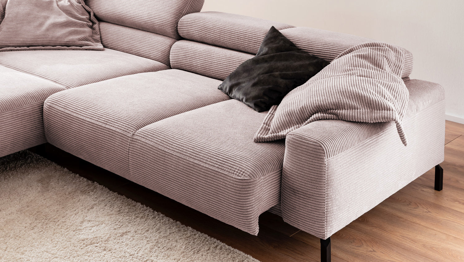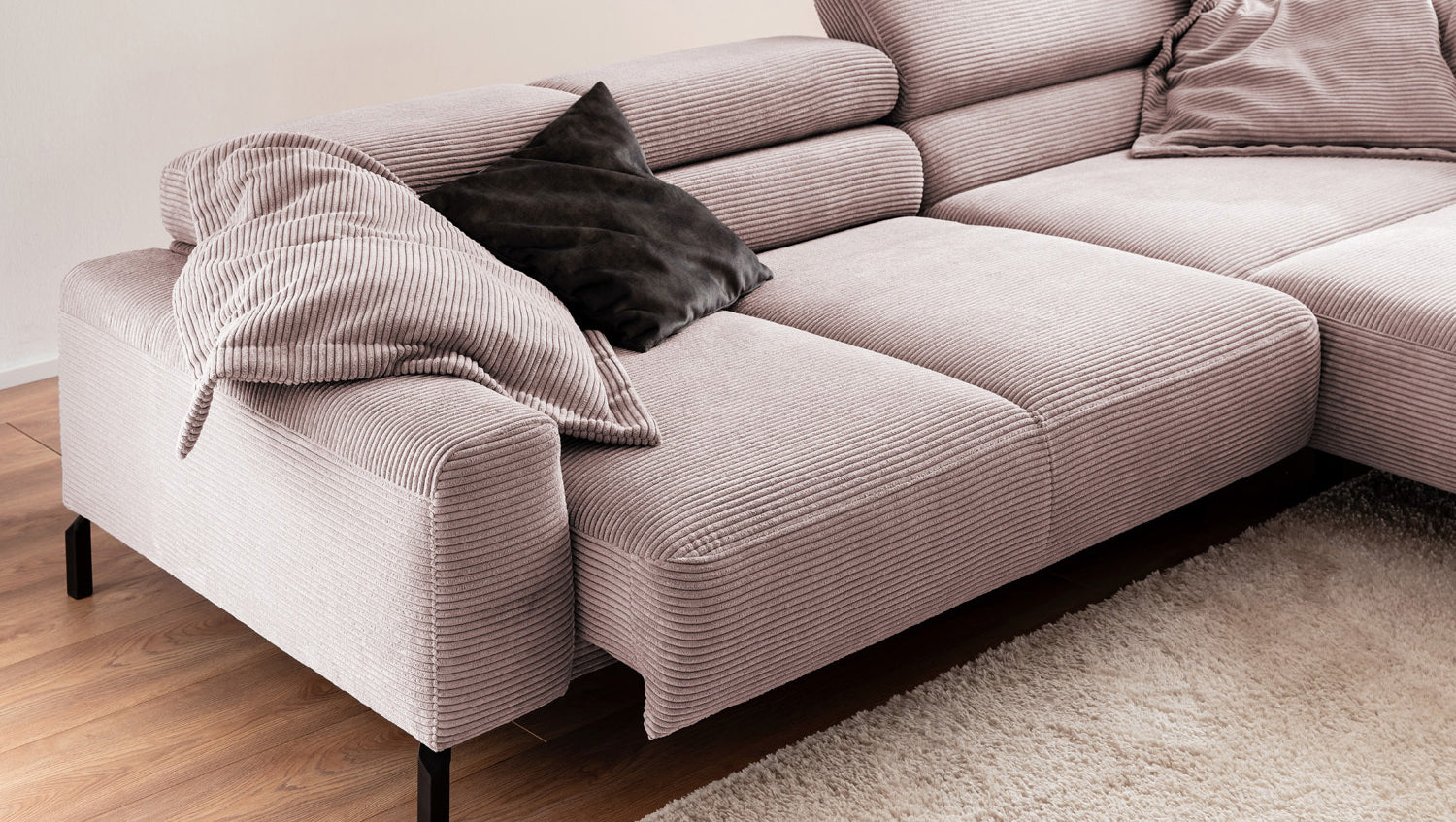 KAWOLA Sofá DELIA Sofá esquinero de Pana rosa