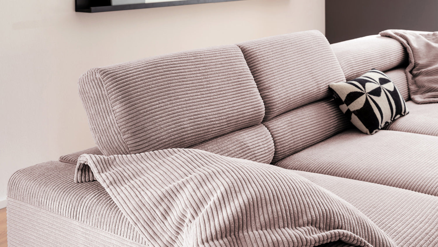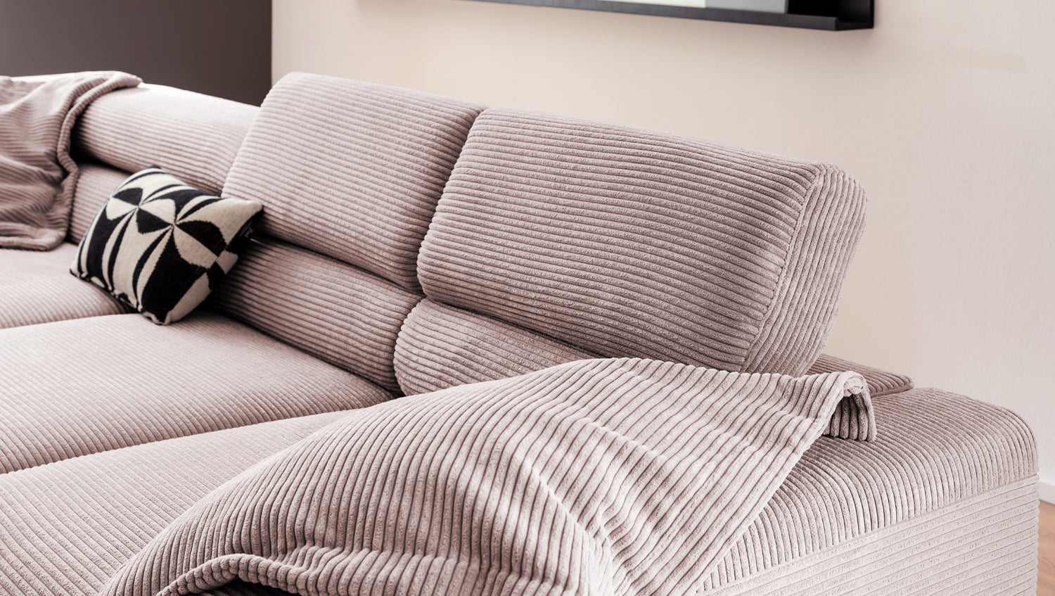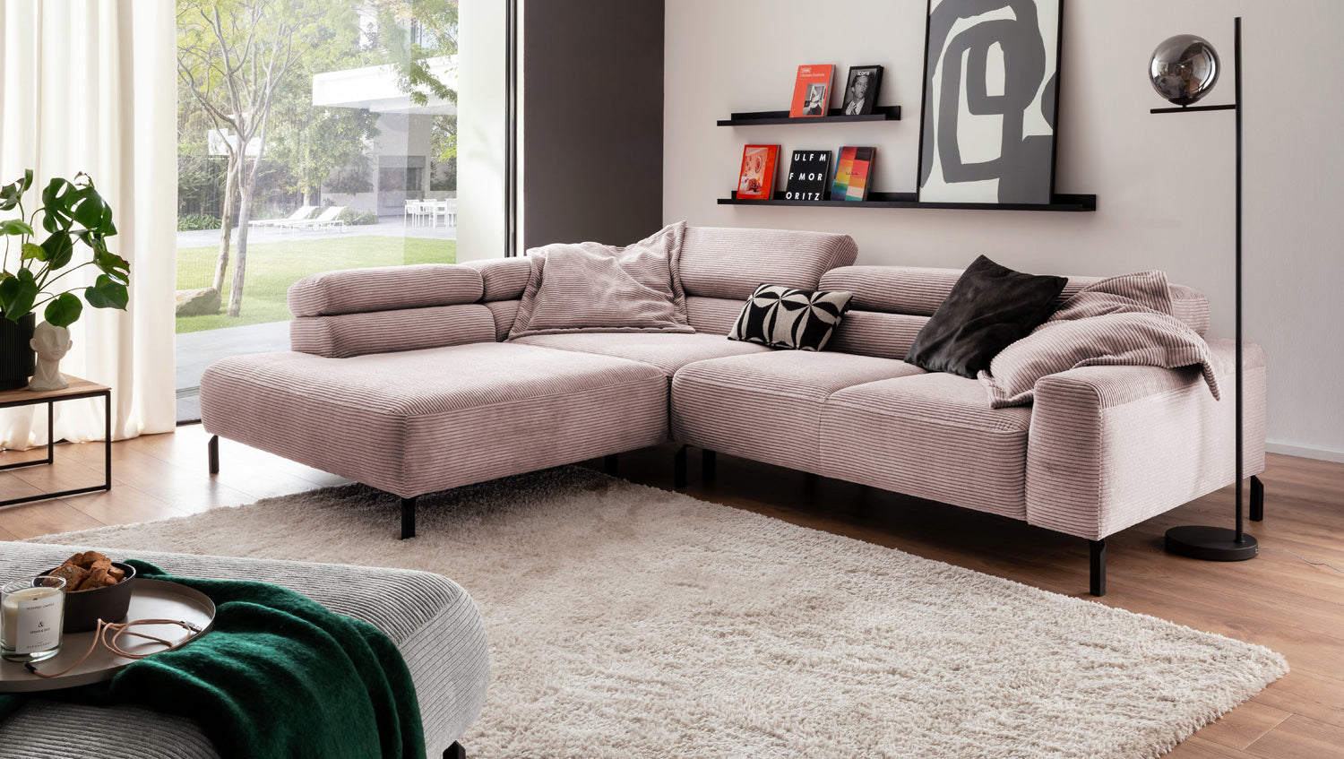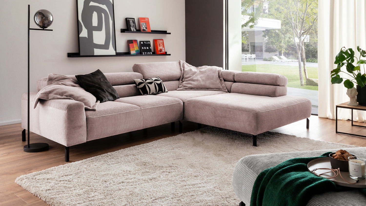 KAWOLA Sofá DELIA Sofá esquinero de Pana rosa