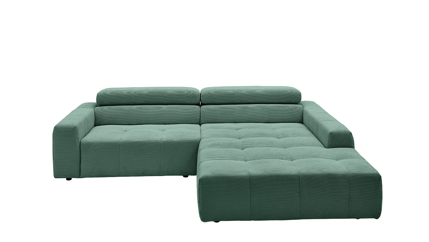 Descubra el elegante sofá esquinero RENO de KAWOLA, que impresiona por su funda de pana de alta calidad y el sofisticado ajuste del reposacabezas. La funda integral de pana de primera calidad confiere a este sofá esquinero un encanto atemporal y un tacto agradable. El respaldo ergonómico de espuma proporciona un confort adicional, mientras que la suspensión de muelles ondulados y la espuma PUR de la zona de asiento garantizan una agradable experiencia al sentarse. El innovador ajuste de los reposacabezas le permite inclinarlos individualmente o ponerlos en posición vertical para encontrar su posición de relajación personal. Con un confort de asiento de firmeza media, el sofá esquinero RENO ofrece la combinación perfecta de estilo y comodidad. Experimente la relajación pura en su salón con este cómodo y atractivo mueble. Entrega sin cojines ni decoración