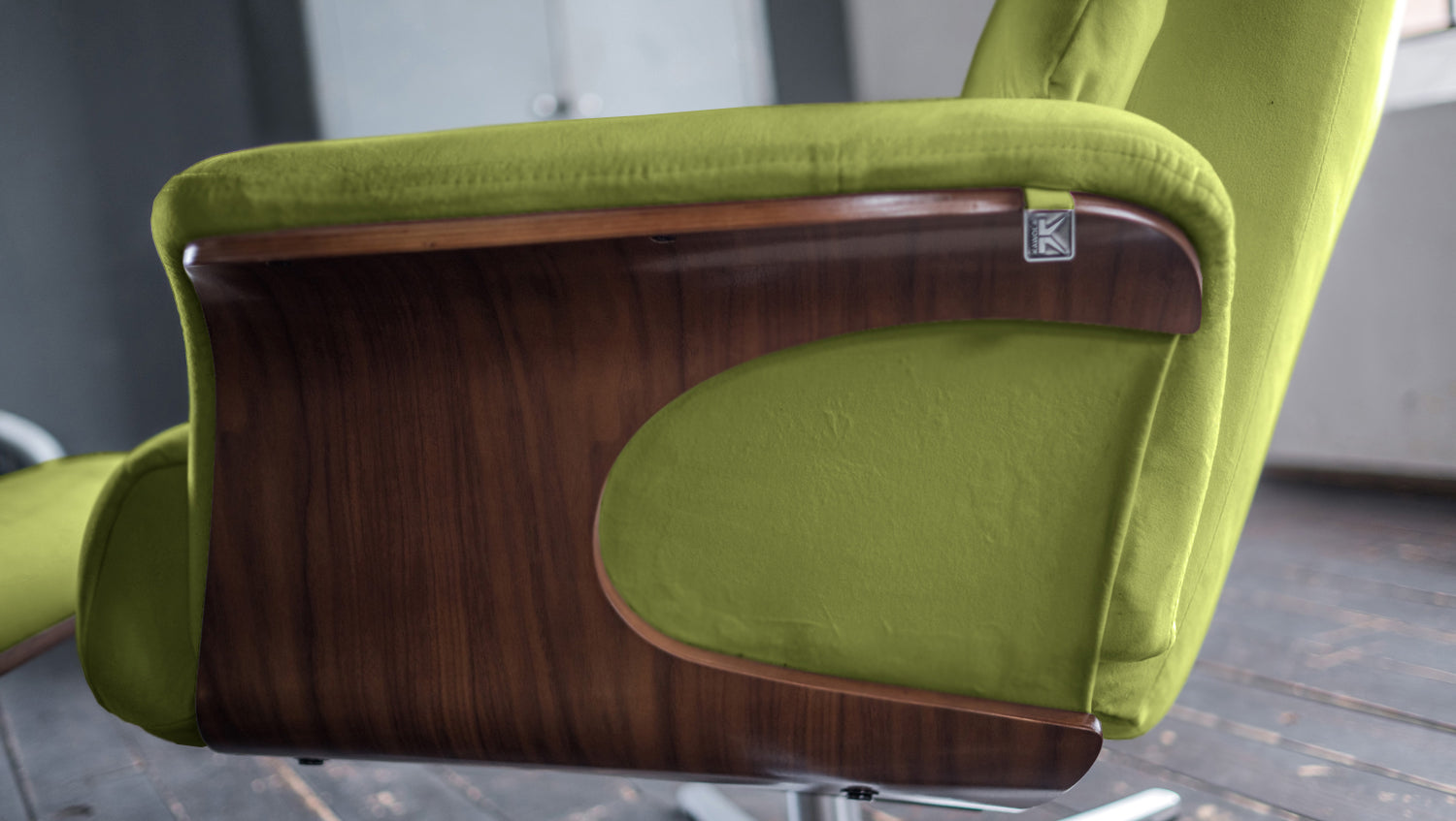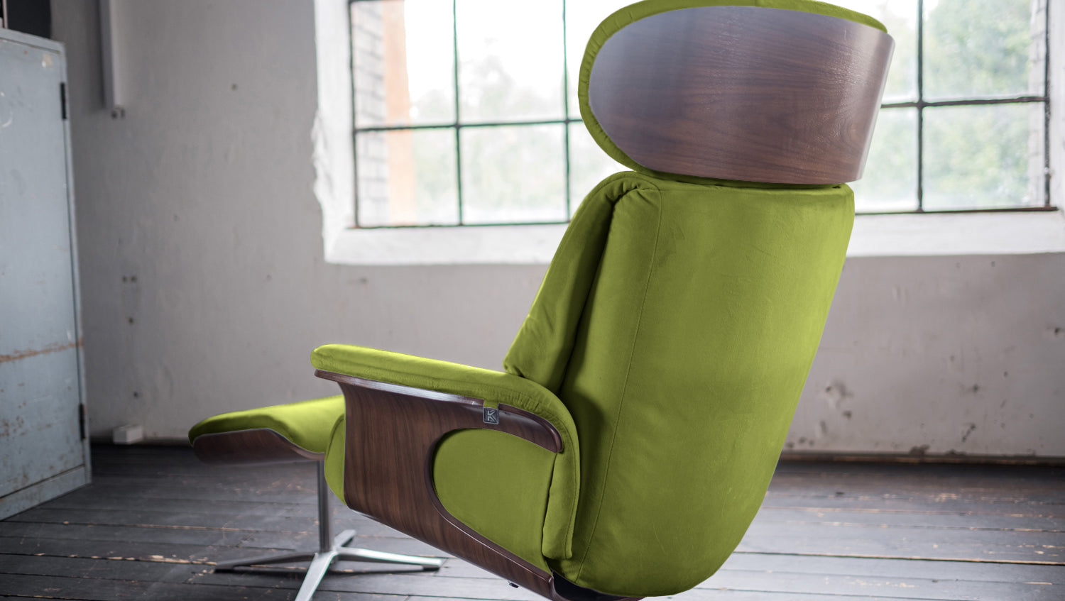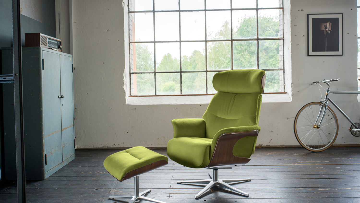 KAWOLA TOSAR sillón reclinable giratorio terciopelo verde con Puf