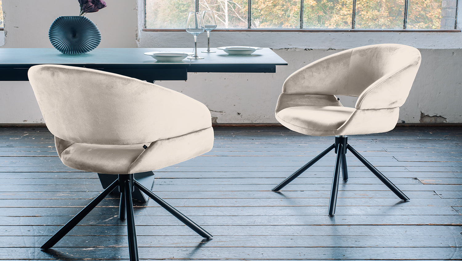 Silla de comedor KAWOLA Silla giratoria LARA Terciopelo crema blanco