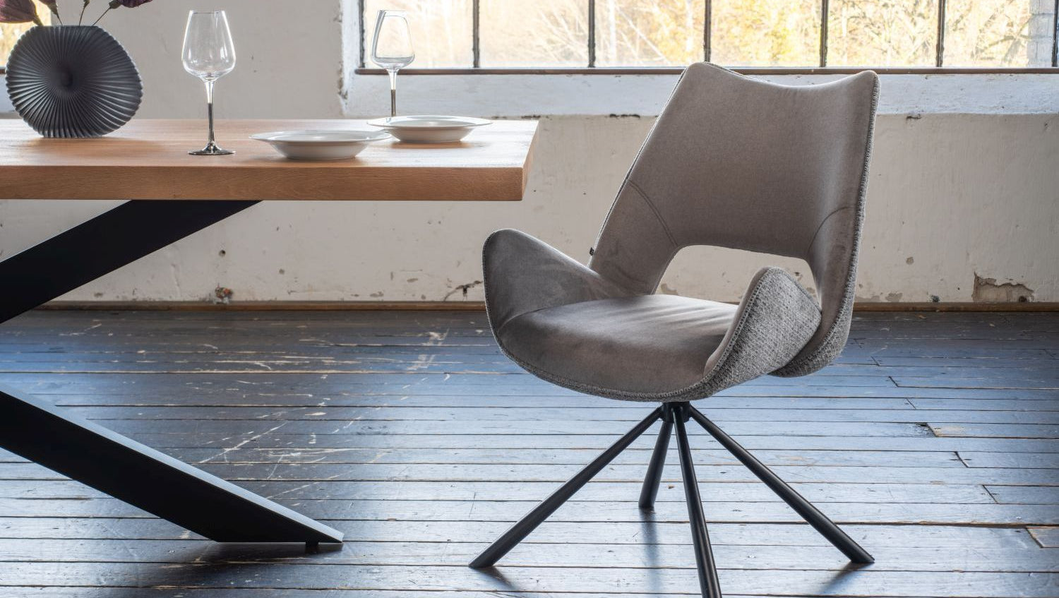 Silla de comedor KAWOLA silla giratoria VELO de tela gris
