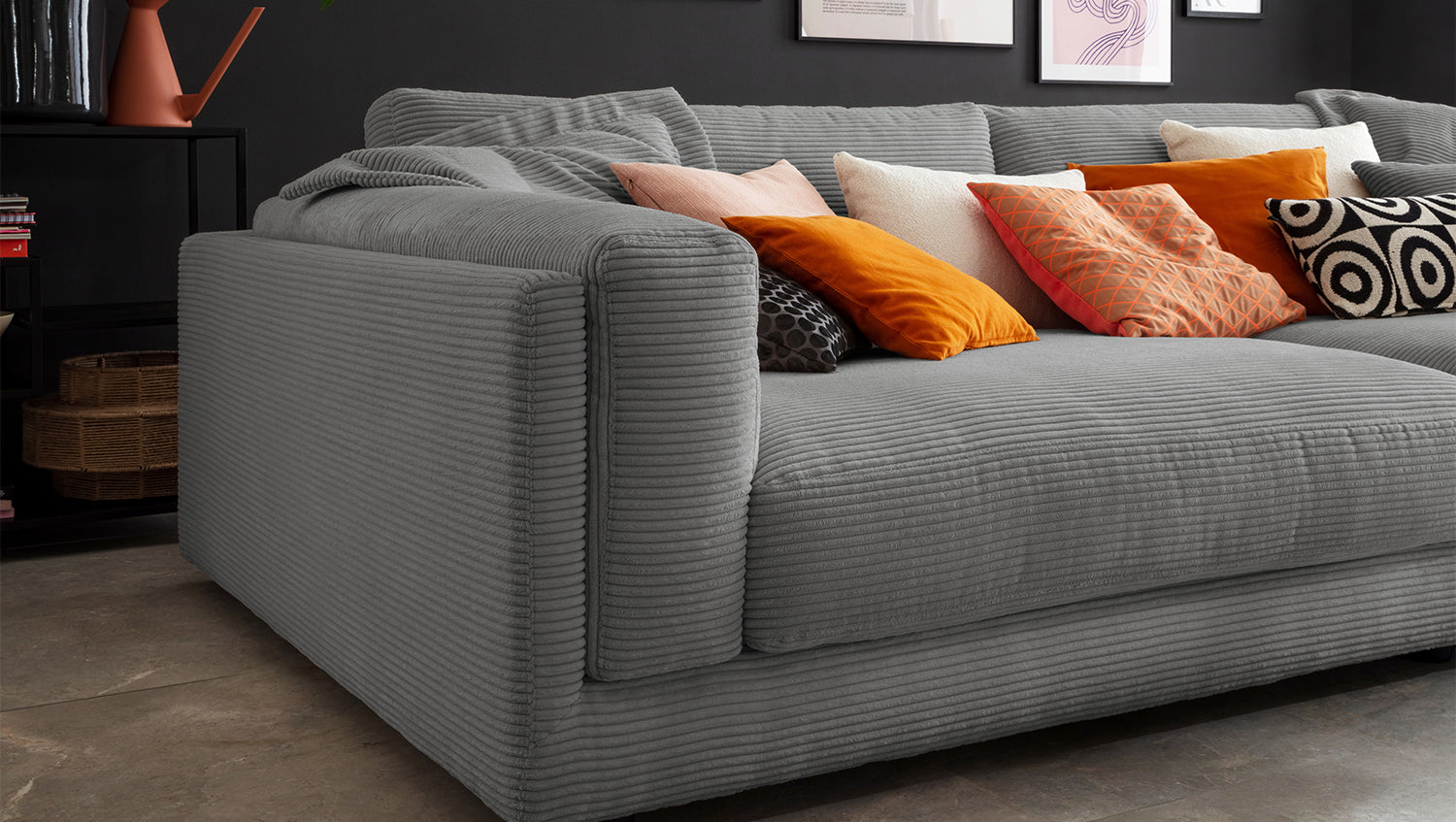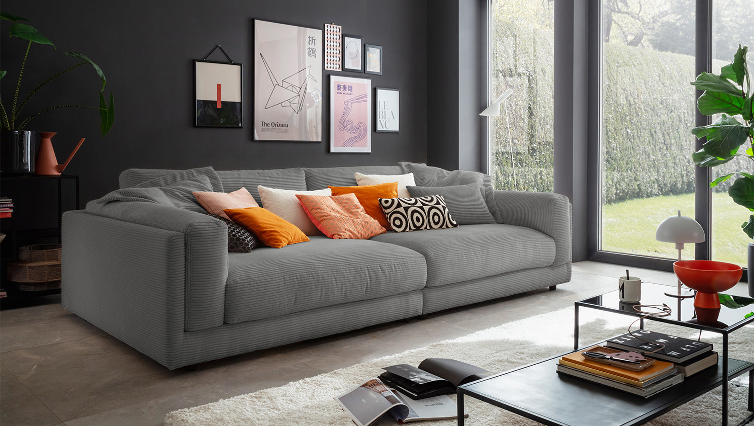 KAWOLA Sofá extra ancho RAINA Pana gris