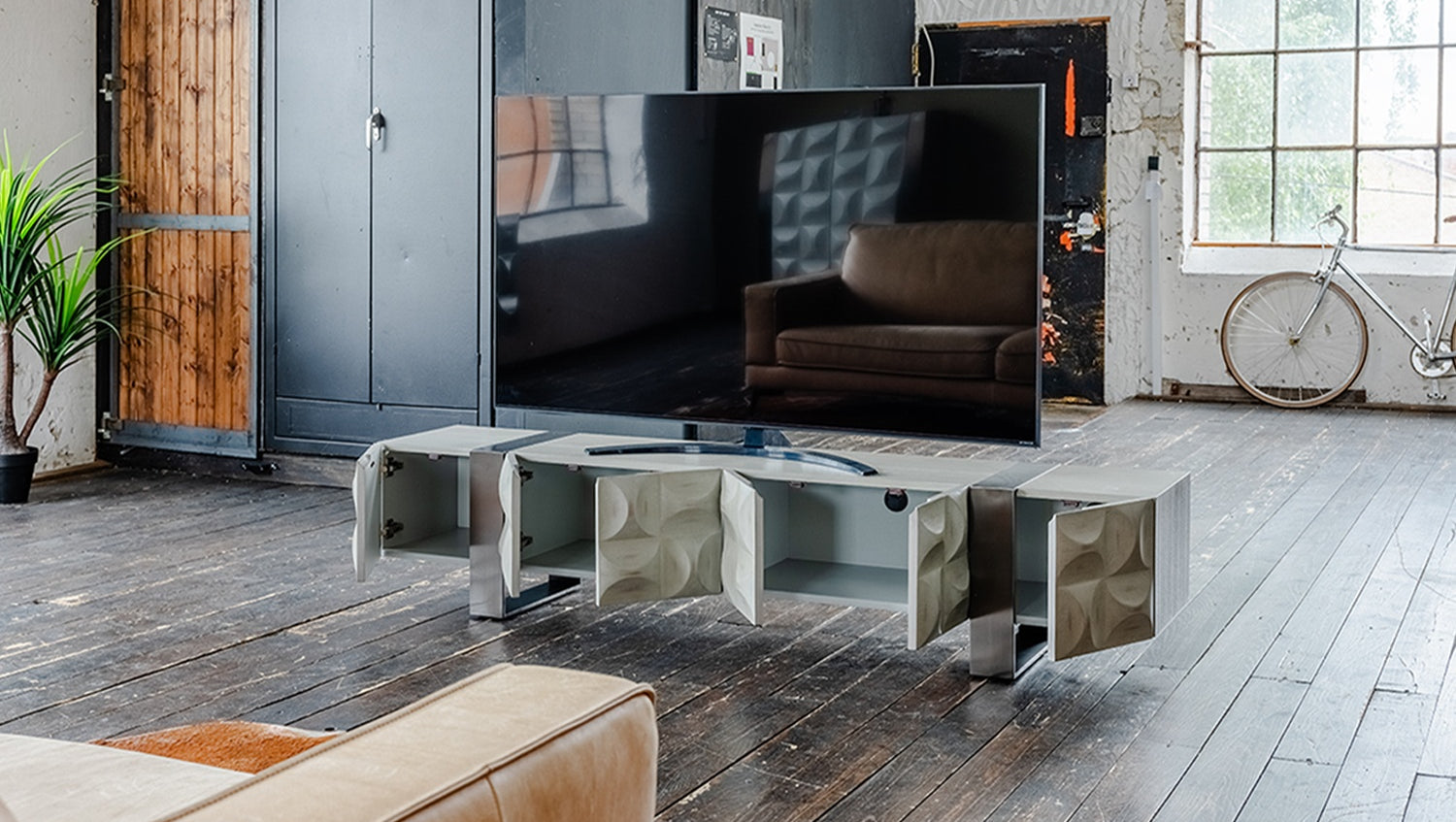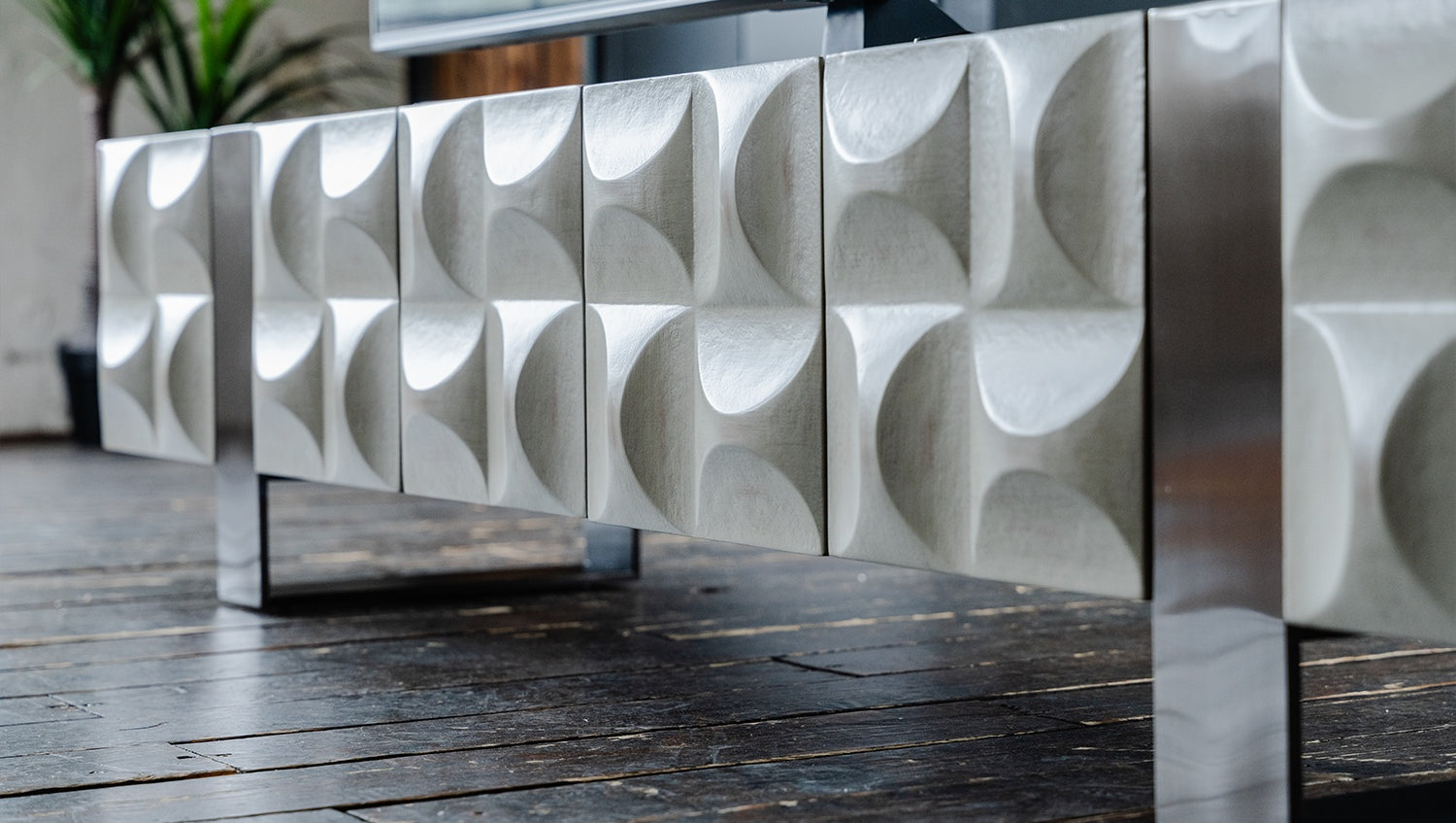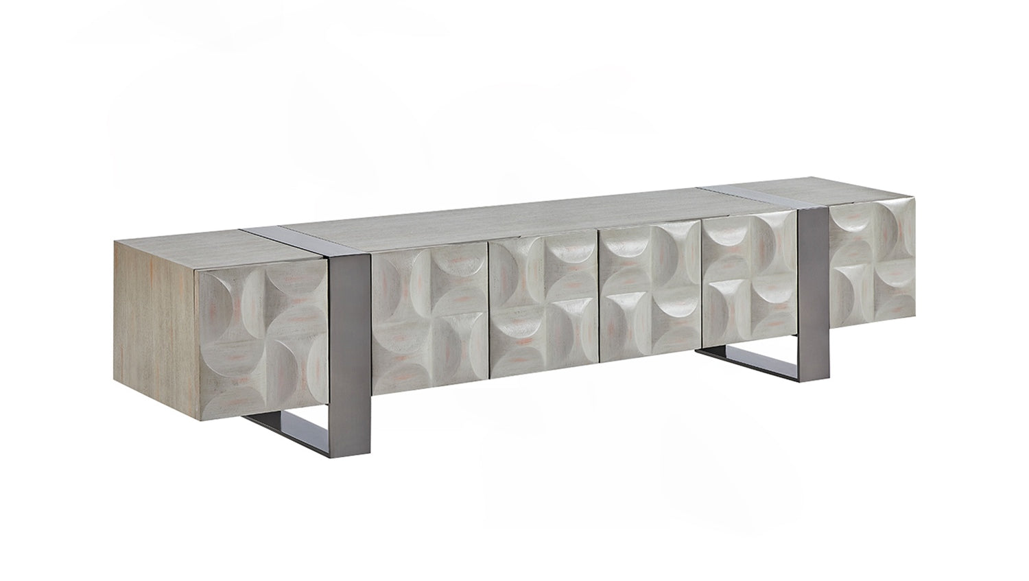 El Mueble bajo MARGO de KAWOLA impresiona por su elegante combinación de diseño moderno y funcionalidad práctica. Con su anchura de 200 cm, es el lugar ideal para su televisor. El cuerpo y las puertas están elegantemente chapados en madera de olmo gris de alta calidad, lo que confiere al mueble un aspecto lujoso. Las cuatro puertas ofrecen un amplio espacio de almacenamiento y pueden abrirse sin esfuerzo gracias al tirador empotrado de la parte superior. Las patas de patín de acero inoxidable cepillado de color plateado crean un aspecto moderno y atemporal a la vez que proporcionan estabilidad. El Aparador MARGO de KAWOLA se integra perfectamente en cualquier ambiente y es ideal para los amantes de los muebles originales y elegantes. ¡Descubra la combinación perfecta de diseño y funcionalidad con el Aparador MARGO!