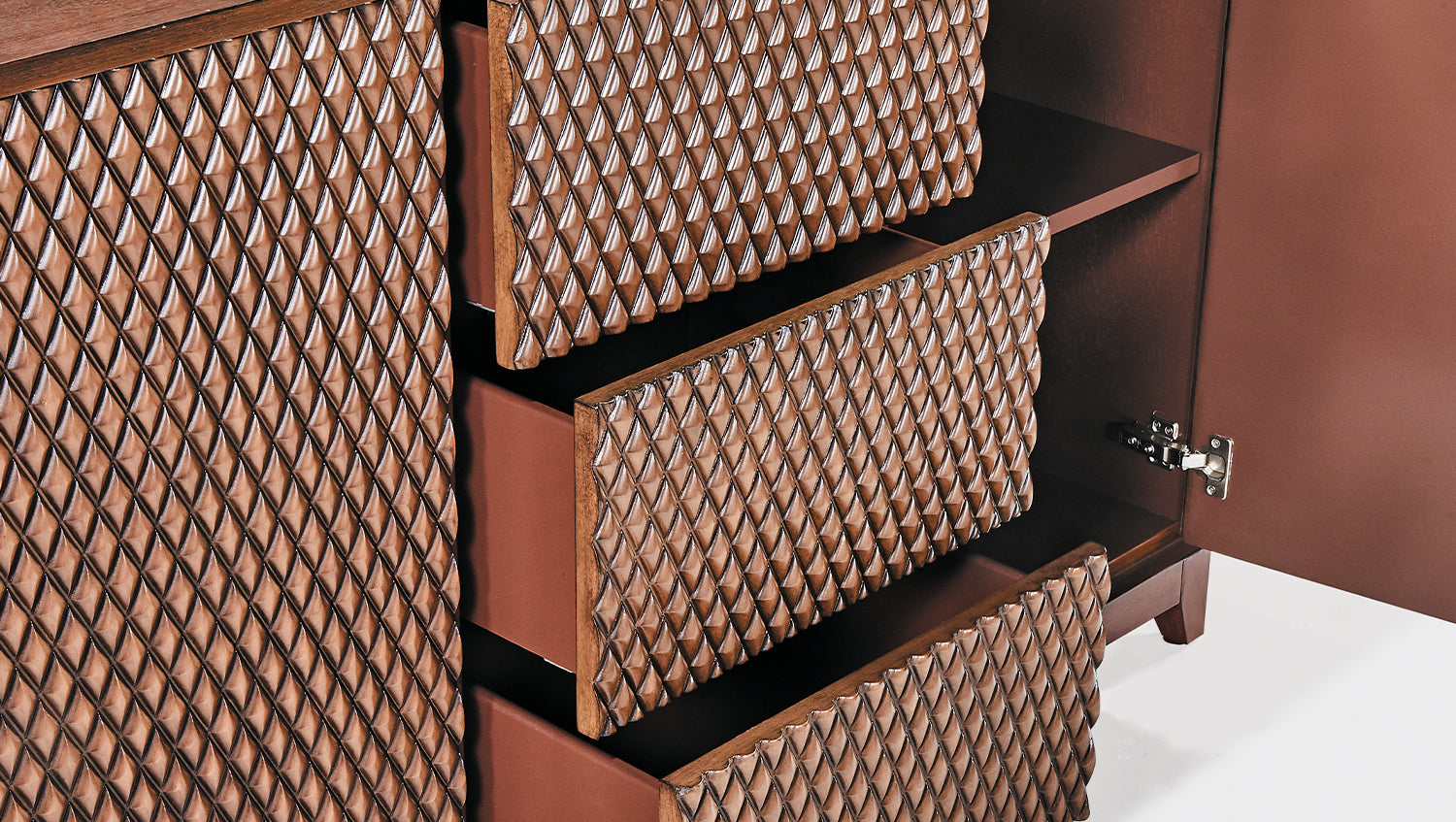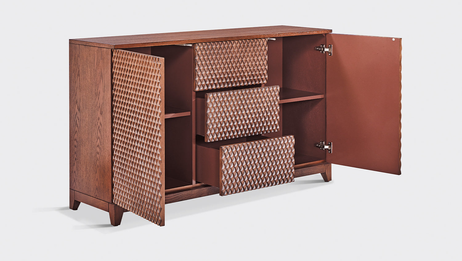 El Aparador KAWOLA COPAS impresiona por su elegante combinación de diseño rústico y funcionalidad práctica. El cuerpo, las puertas y los cajones están elegantemente chapados en madera de roble de alta calidad, lo que confiere al mueble un aspecto lujoso. Las dos puertas y los tres cajones ofrecen un amplio espacio de almacenamiento y pueden abrirse sin esfuerzo gracias al cómodo mecanismo de apertura a presión. Los pies de madera de fresno crean un aspecto sencillo y atemporal, a la vez que proporcionan estabilidad. Los estantes variables permiten un uso flexible del interior y se adaptan a sus necesidades. El Aparador COPAS de KAWOLA se integra perfectamente en cualquier ambiente y es ideal para los amantes de los muebles clásicos pero elegantes. ¡Descubra la combinación perfecta de diseño y funcionalidad con el Aparador COPAS!