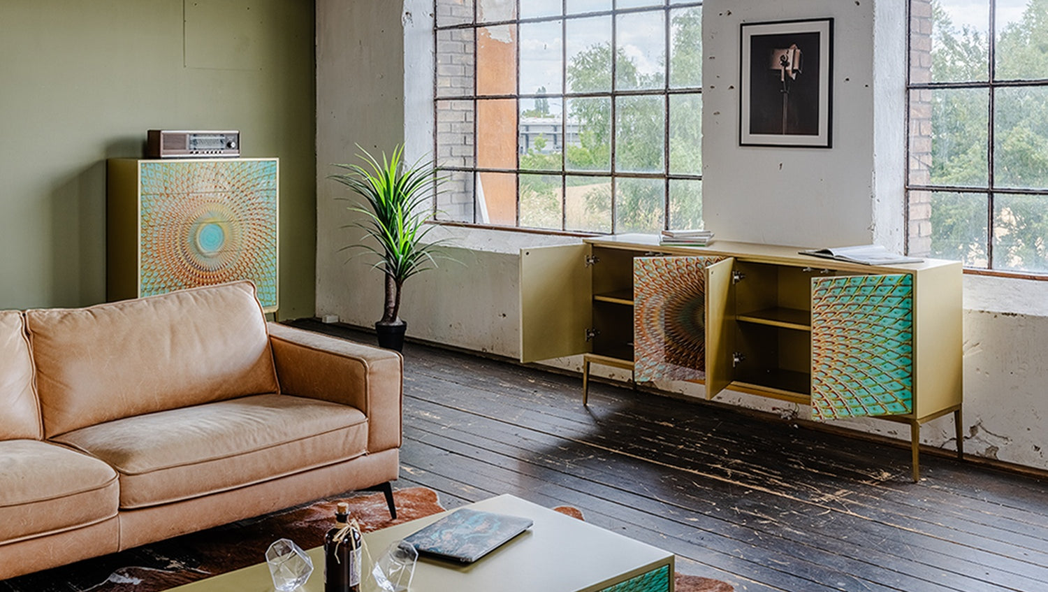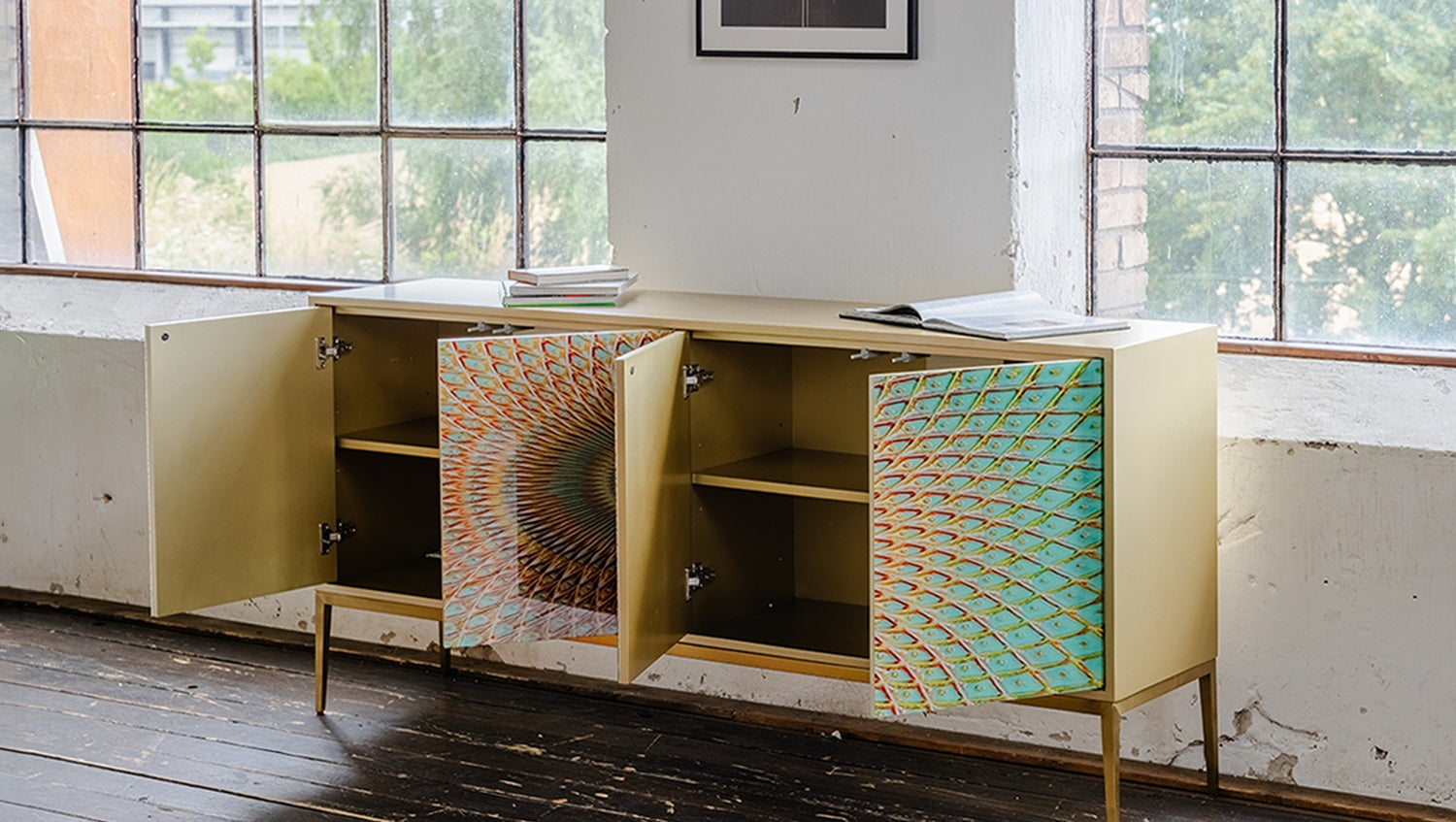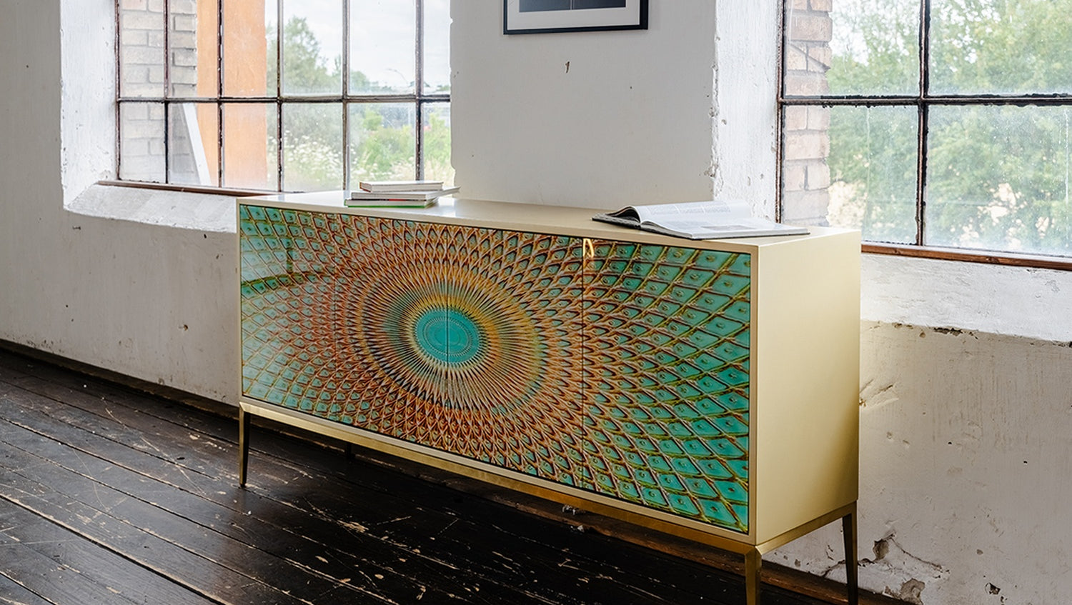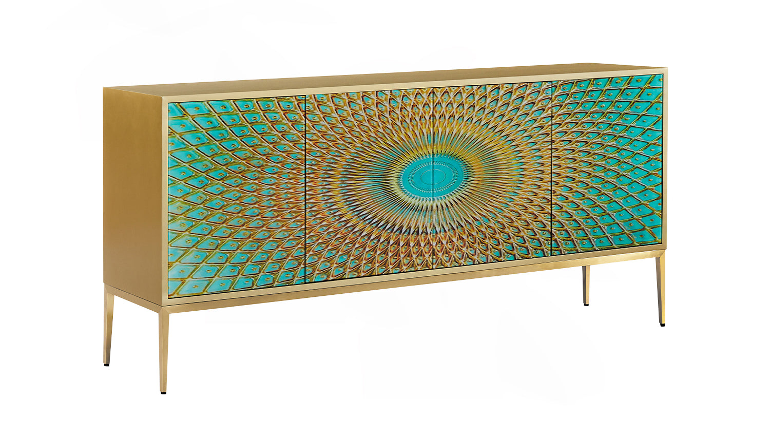 El Aparador KAWOLA LAGO impresiona por su elegante combinación de diseño inusual y funcionalidad práctica. Las puertas están revestidas de cristal templado y presentan decoraciones doradas en forma de ojo de pavo real. Las cuatro puertas ofrecen un amplio espacio de almacenamiento y pueden abrirse sin esfuerzo gracias al cómodo mecanismo de apertura a presión. Los pies de acero inoxidable cepillado de color dorado crean un aspecto moderno y atemporal a la vez que proporcionan estabilidad. Los estantes variables permiten un uso flexible del interior y se adaptan a sus necesidades. El Aparador LAGO de KAWOLA se integra perfectamente en cualquier ambiente y es ideal para los amantes de los muebles inusuales y elegantes. ¡Descubra la combinación perfecta de diseño y funcionalidad con el Aparador LAGO!