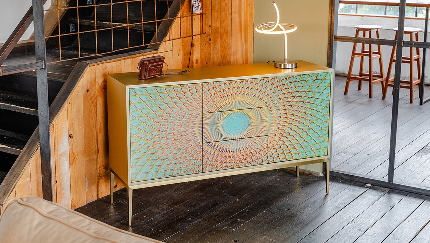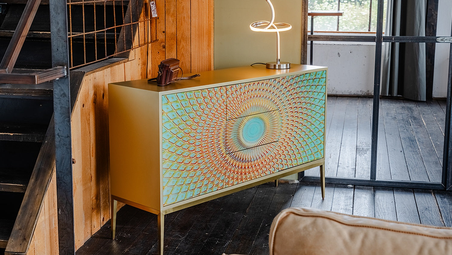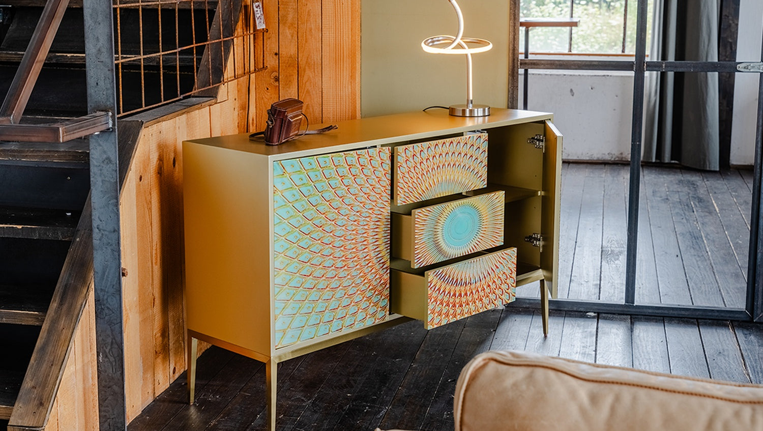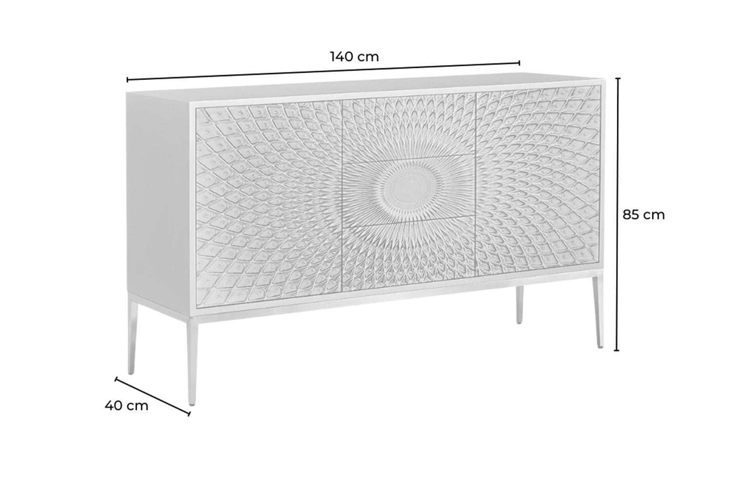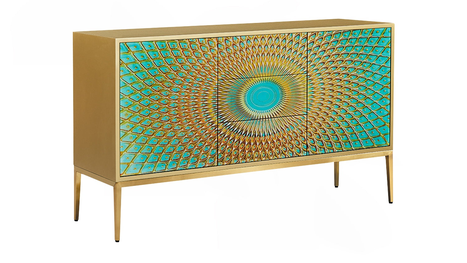 El Aparador KAWOLA LAGO impresiona por su elegante combinación de diseño inusual y funcionalidad práctica. Las puertas y los cajones están revestidos de cristal templado y presentan decoraciones doradas en forma de ojo de pavo real. Las dos puertas y los tres cajones ofrecen un amplio espacio de almacenamiento y pueden abrirse sin esfuerzo gracias al cómodo mecanismo de apertura a presión. Las patas de acero inoxidable cepillado de color dorado crean un aspecto moderno y atemporal a la vez que proporcionan estabilidad. Los estantes variables permiten un uso flexible del interior y se adaptan a sus necesidades. El Aparador LAGO de KAWOLA se integra perfectamente en cualquier ambiente y es ideal para los amantes de los muebles inusuales y elegantes. ¡Descubra la combinación perfecta de diseño y funcionalidad con el Aparador LAGO!