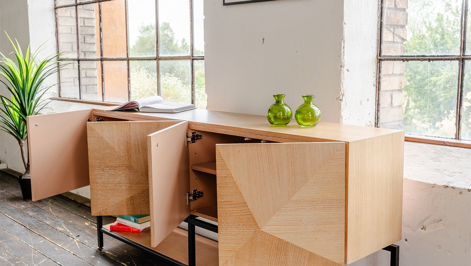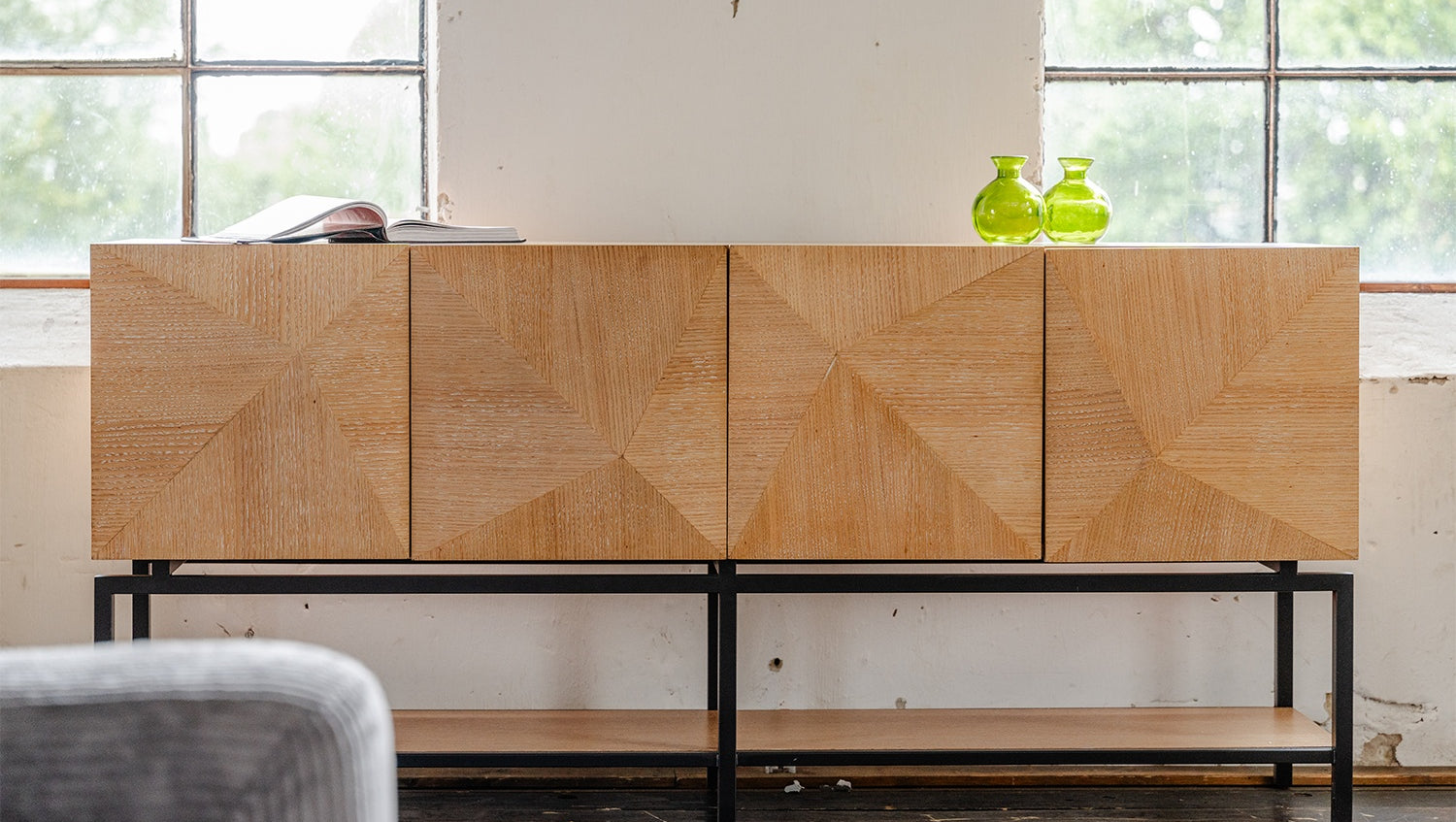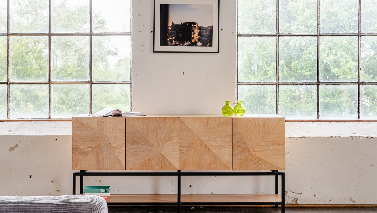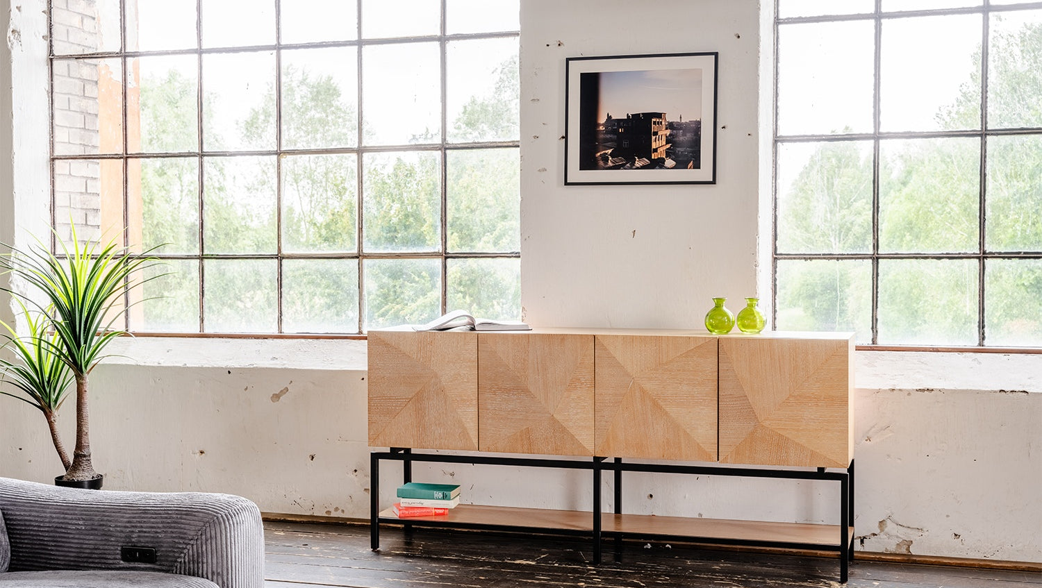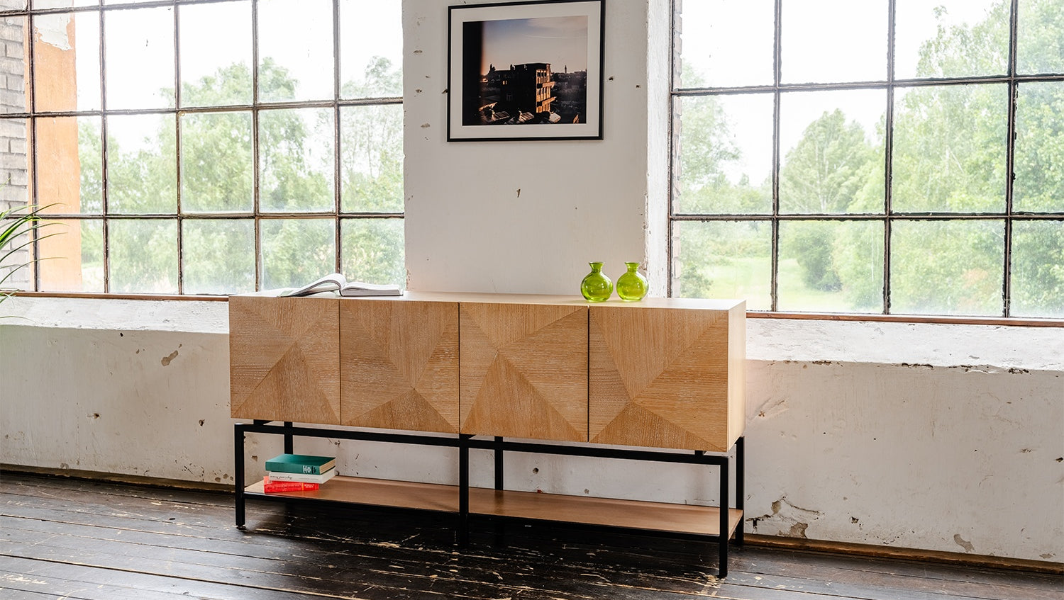 El Aparador KAWOLA ANJO impresiona por su elegante combinación de diseño moderno y funcionalidad práctica. El cuerpo y las puertas están elegantemente chapados en madera de roble de alta calidad, lo que confiere al mueble un aspecto lujoso. Las cuatro puertas ofrecen un amplio espacio de almacenamiento y pueden abrirse sin esfuerzo gracias al cómodo mecanismo de apertura a presión. También cuenta con una generosa balda en la que puede colocar otros objetos favoritos. Las patas de hierro con recubrimiento de polvo negro crean un aspecto moderno y atemporal a la vez que proporcionan estabilidad. El Aparador ANJO de KAWOLA se integra perfectamente en cualquier ambiente y es ideal para los amantes de los muebles originales y elegantes. Descubra la combinación perfecta de diseño y funcionalidad con el Aparador ANJO.