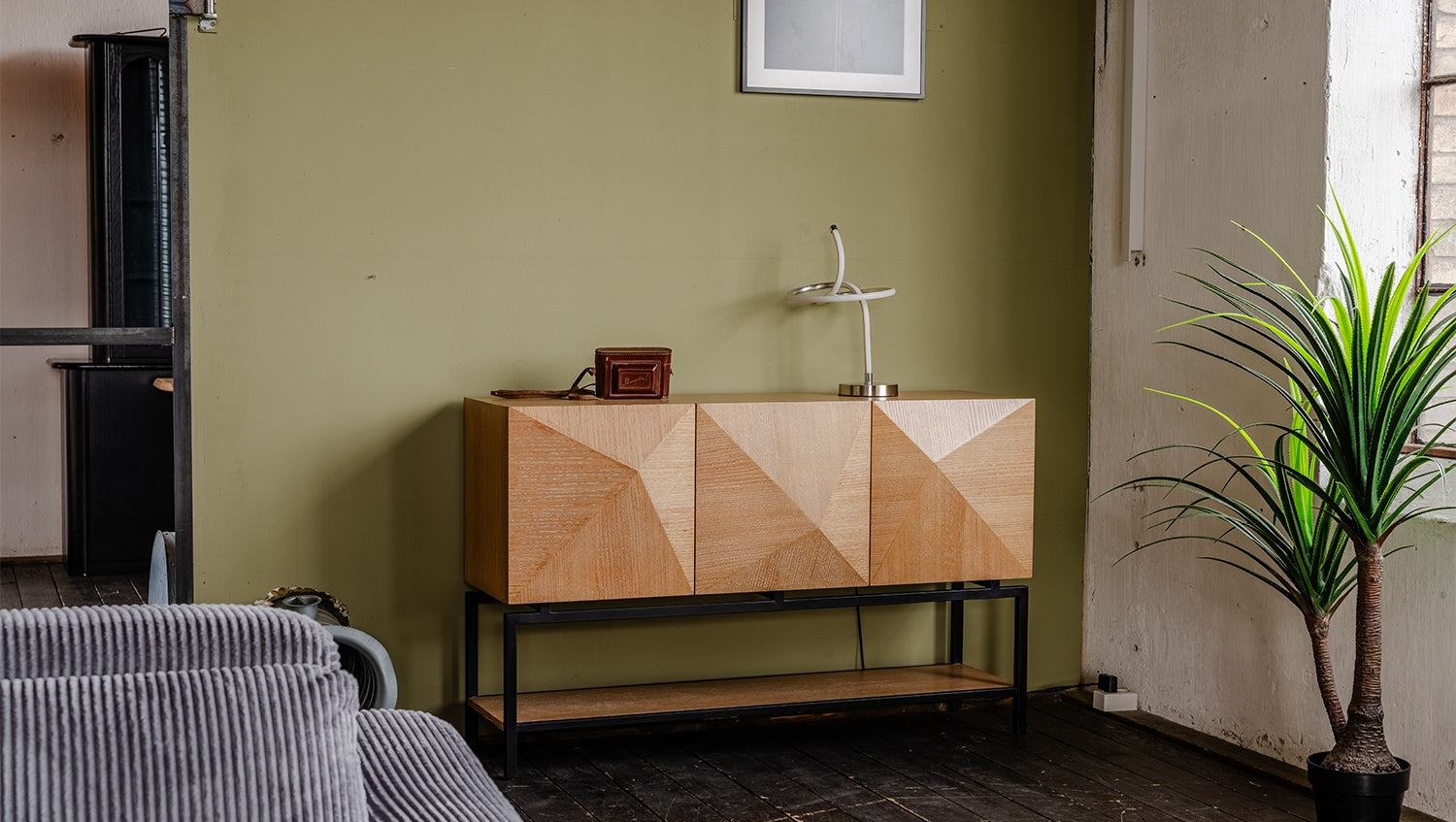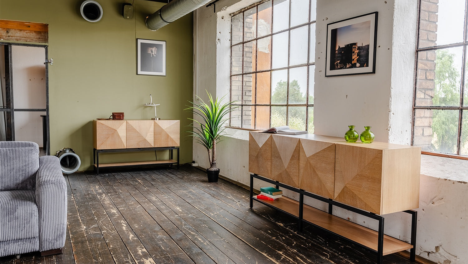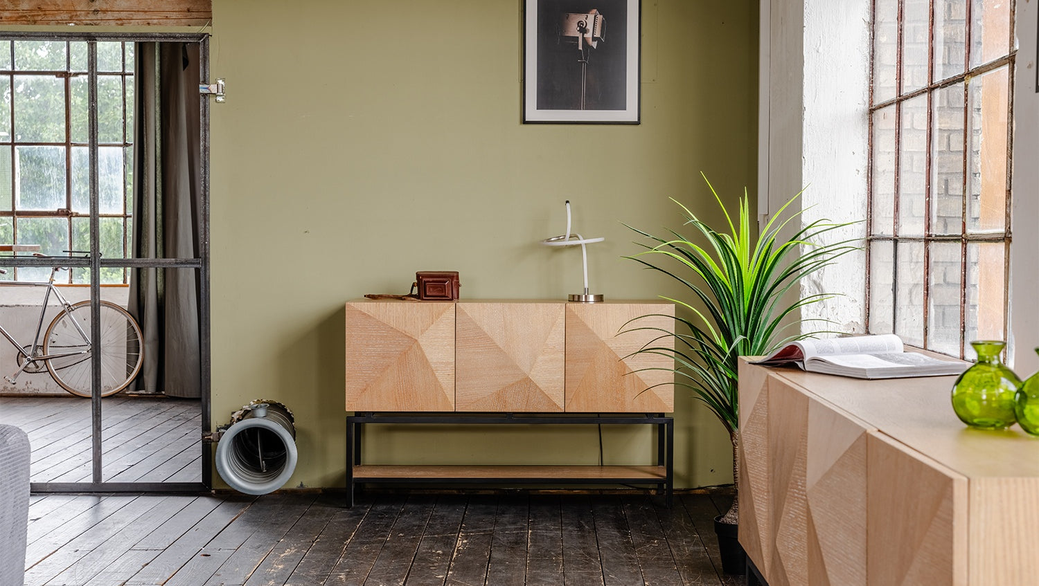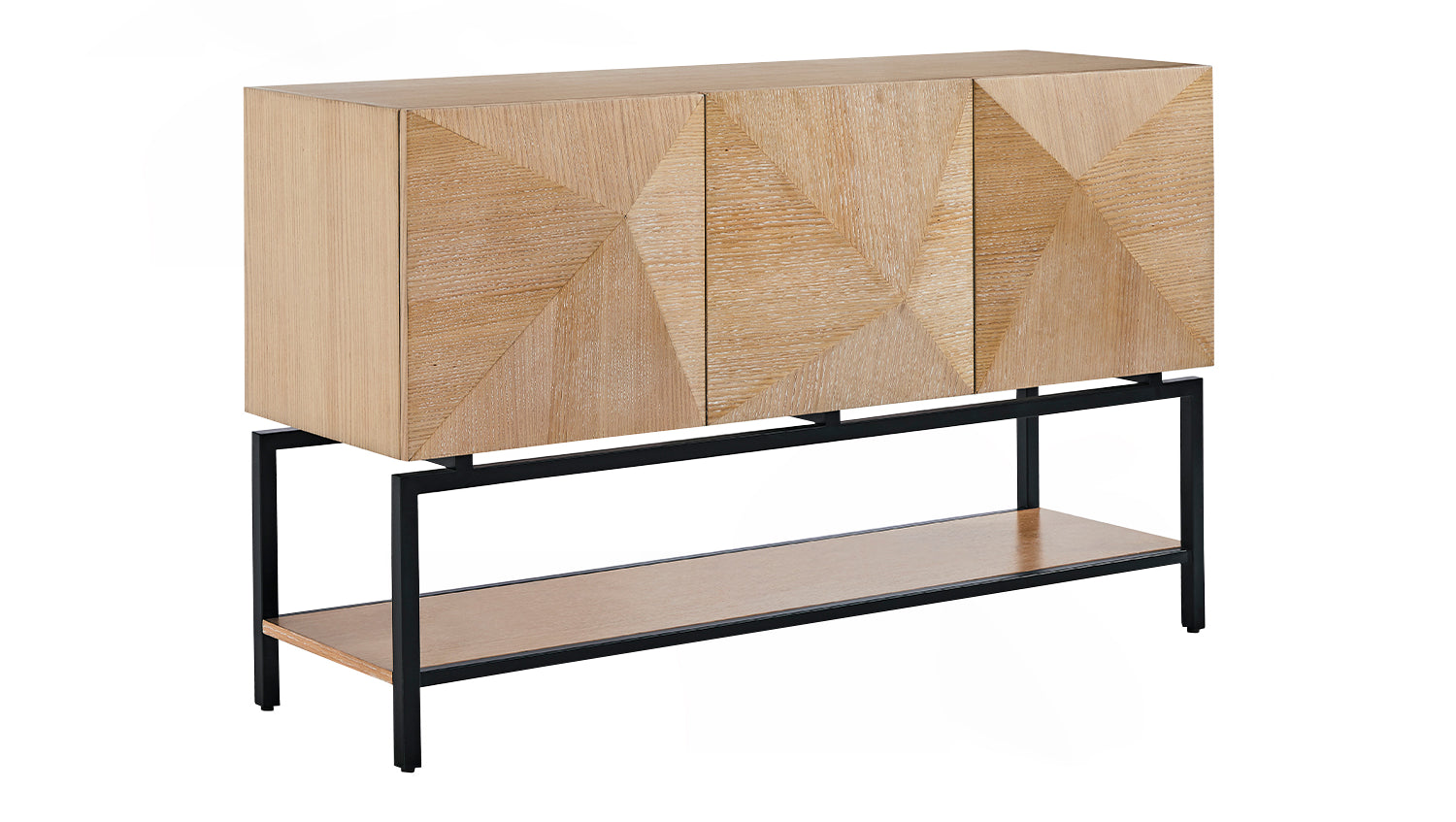El Aparador KAWOLA ANJO impresiona por su elegante combinación de diseño moderno y funcionalidad práctica. El cuerpo y las puertas están elegantemente chapados en madera de roble de alta calidad, lo que confiere al mueble un aspecto lujoso. Las tres puertas ofrecen un amplio espacio de almacenamiento y pueden abrirse sin esfuerzo gracias al cómodo mecanismo de apertura a presión. También cuenta con una generosa balda en la que puede colocar otros objetos favoritos. Las patas de hierro con recubrimiento de polvo negro crean un aspecto moderno y atemporal, a la vez que proporcionan estabilidad. El Aparador ANJO de KAWOLA se integra perfectamente en cualquier ambiente y es ideal para los amantes de los muebles originales y elegantes. Descubra la combinación perfecta de diseño y funcionalidad con el Aparador ANJO.