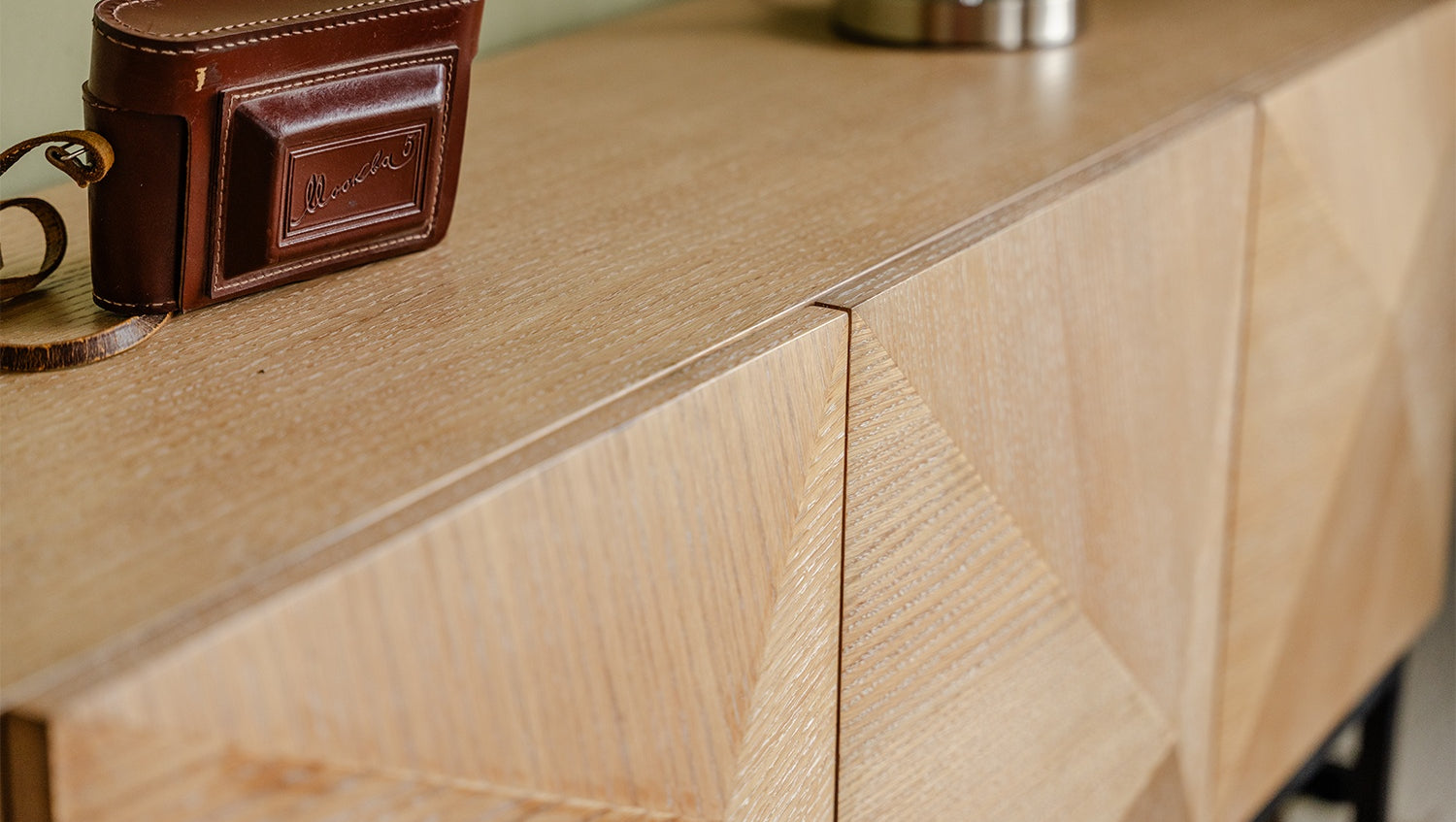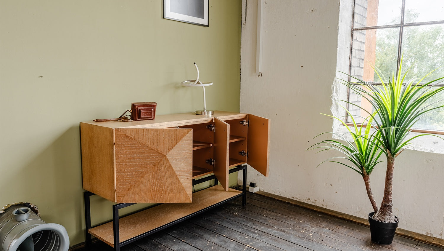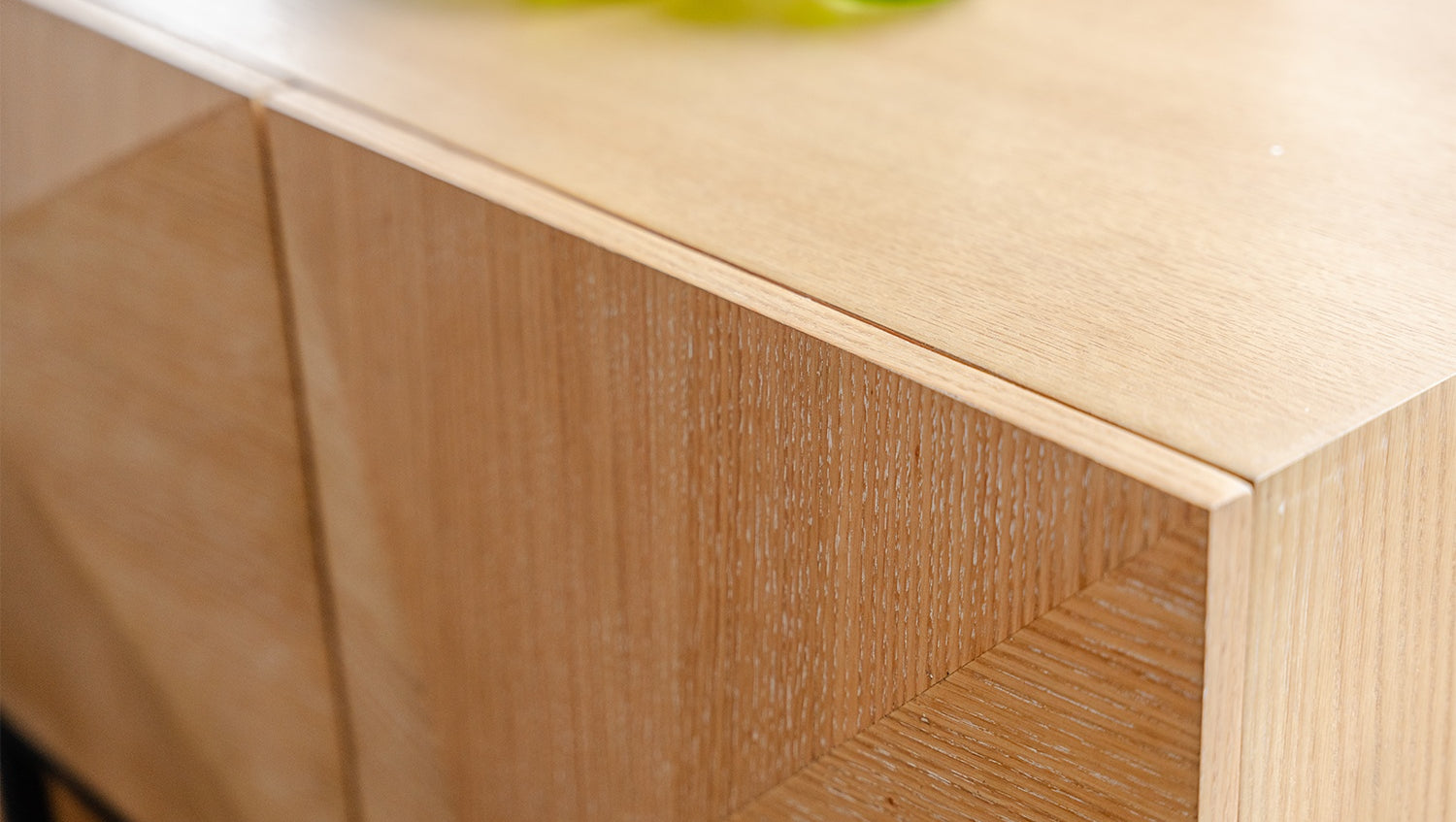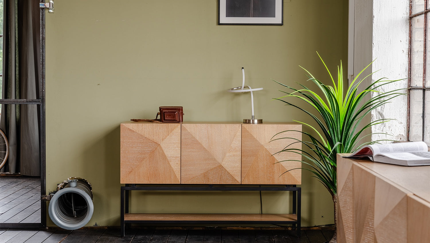 El Aparador KAWOLA ANJO impresiona por su elegante combinación de diseño moderno y funcionalidad práctica. El cuerpo y las puertas están elegantemente chapados en madera de roble de alta calidad, lo que confiere al mueble un aspecto lujoso. Las tres puertas ofrecen un amplio espacio de almacenamiento y pueden abrirse sin esfuerzo gracias al cómodo mecanismo de apertura a presión. También cuenta con una generosa balda en la que puede colocar otros objetos favoritos. Las patas de hierro con recubrimiento de polvo negro crean un aspecto moderno y atemporal, a la vez que proporcionan estabilidad. El Aparador ANJO de KAWOLA se integra perfectamente en cualquier ambiente y es ideal para los amantes de los muebles originales y elegantes. Descubra la combinación perfecta de diseño y funcionalidad con el Aparador ANJO.