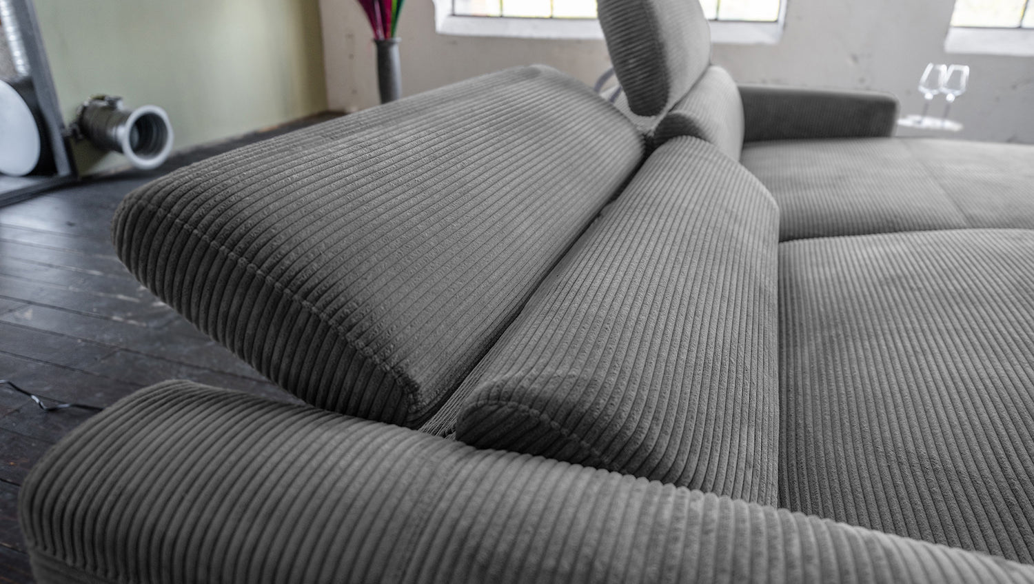 El sofá esquinero LAISKA de KAWOLA combina un diseño moderno con la máxima comodidad. La funda integral de pana de alta calidad no sólo hace que el sofá sea un punto de atracción. Su tacto aterciopelado y su llamativa textura aportan comodidad y elegancia a cualquier salón. Con sus 282 cm de ancho, LAISKA ofrece mucho espacio para relajarse. La suave tapicería garantiza el máximo confort, mientras que los reposacabezas ajustables manualmente se pueden personalizar, para un apoyo perfecto en cualquier posición. El sofá también dispone de una función de reclinación parcialmente motorizada. Esto le permite ajustar individualmente el reposapiés para extender el reposapiernas y el ángulo del respaldo a su posición ideal. Gracias a su diseño atemporal y su acabado de alta calidad, el sofá se integra perfectamente en una gran variedad de estilos de interior. LAISKA es la elección ideal para cualquiera que valore el estilo, la comodidad y la funcionalidad. Experimente un nuevo nivel de confort.