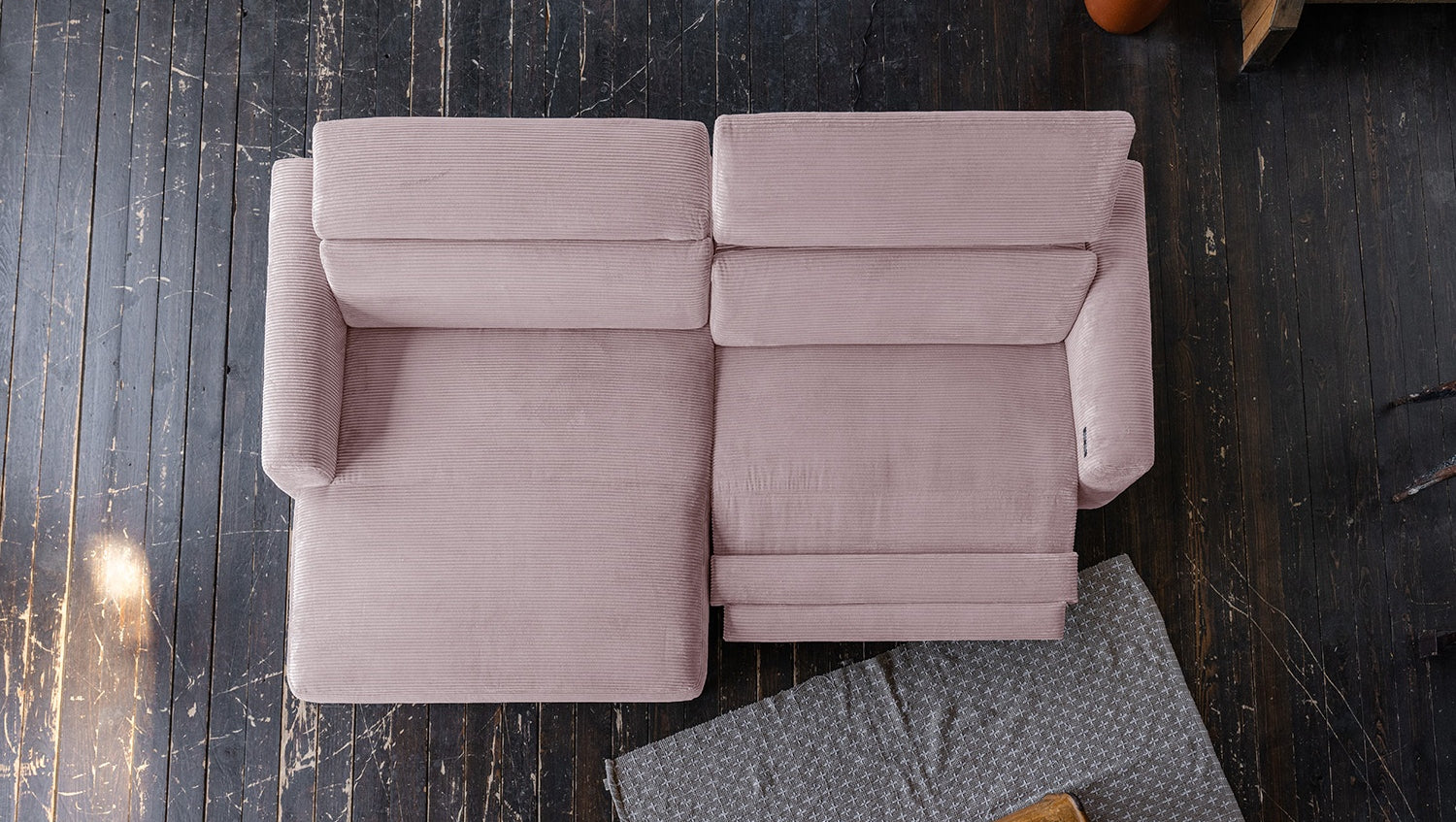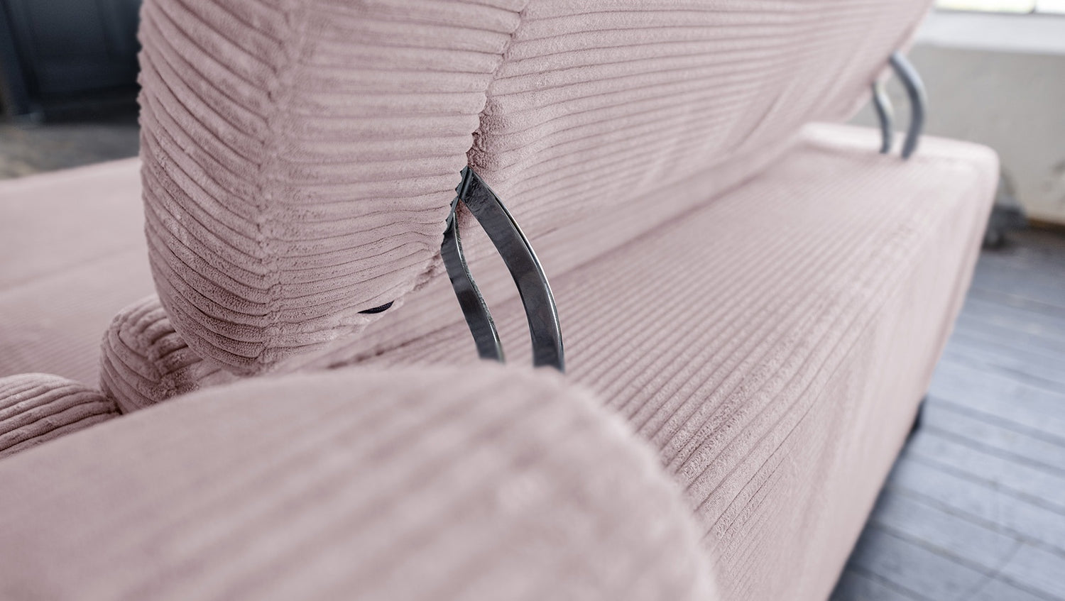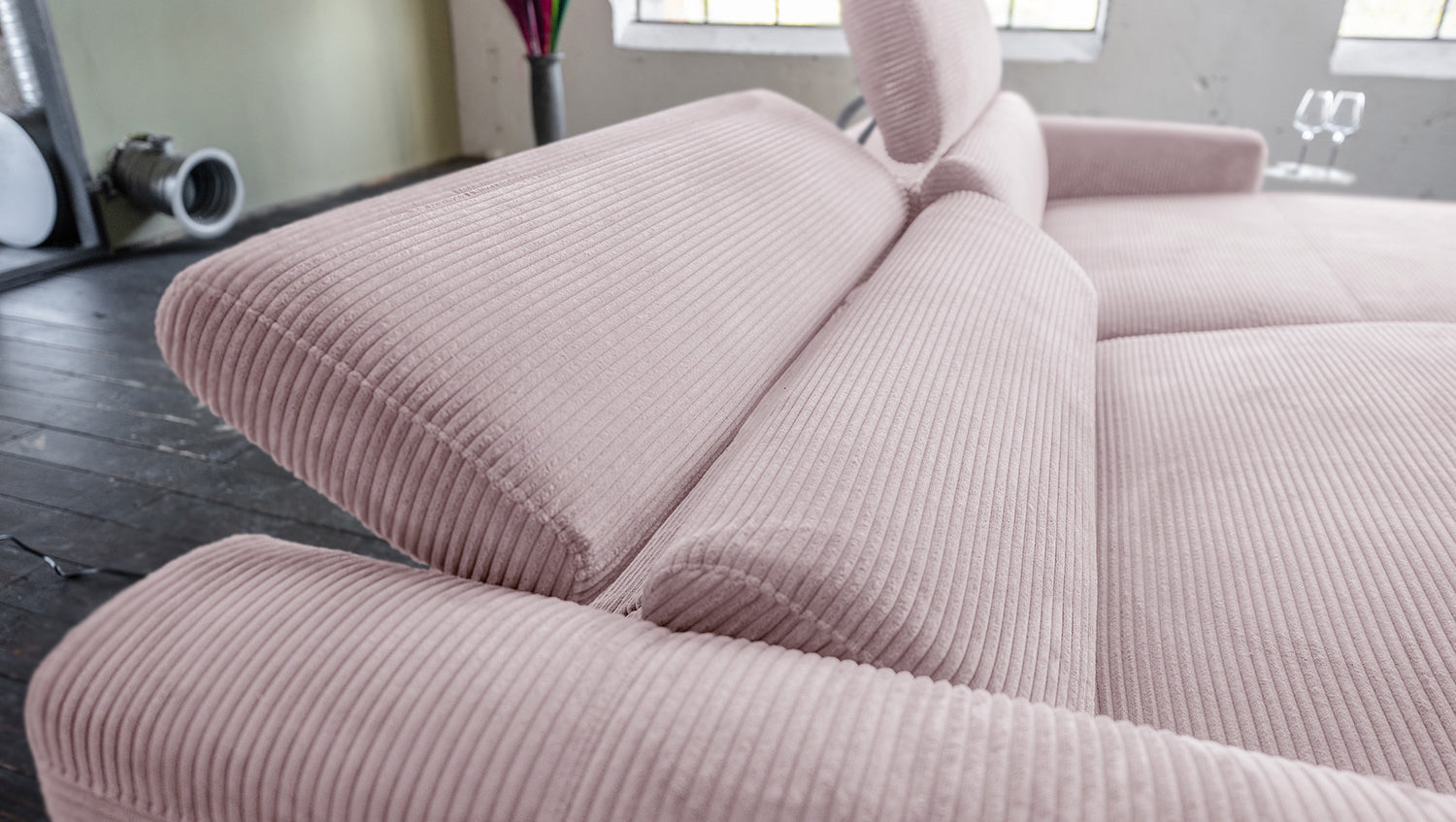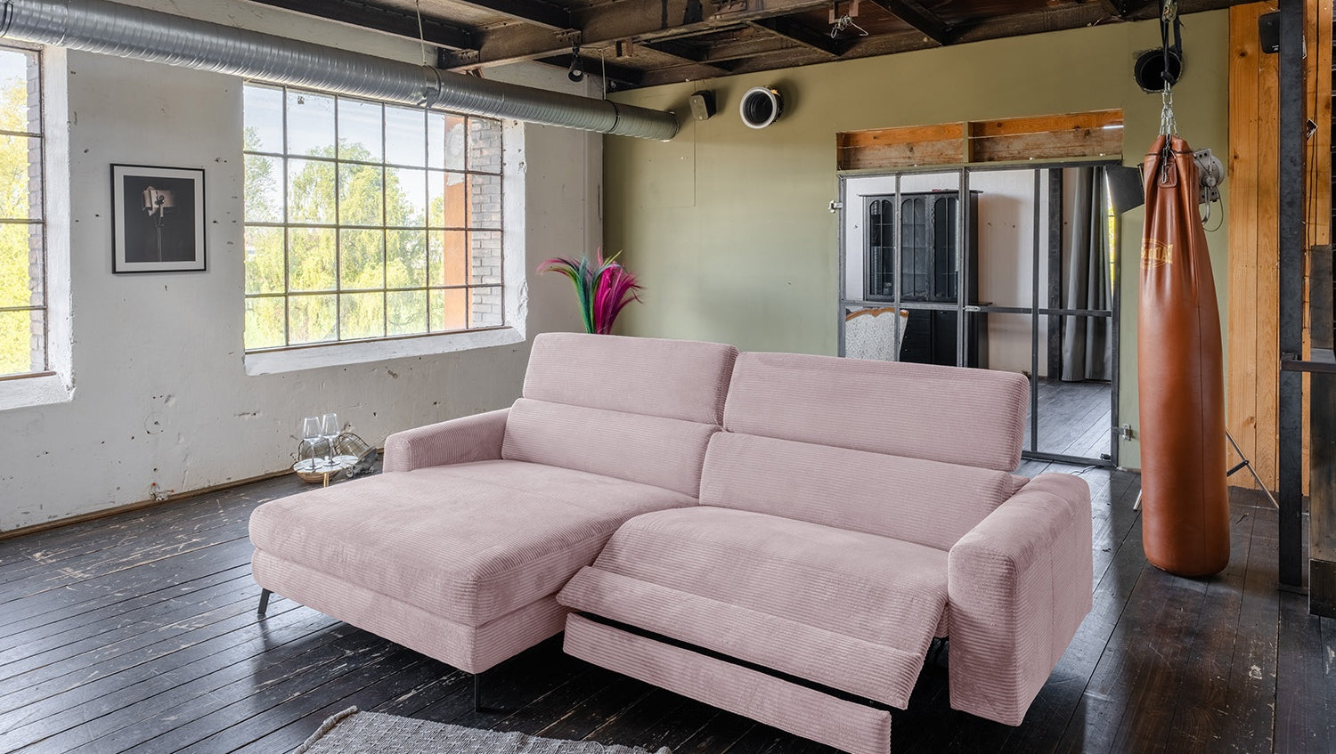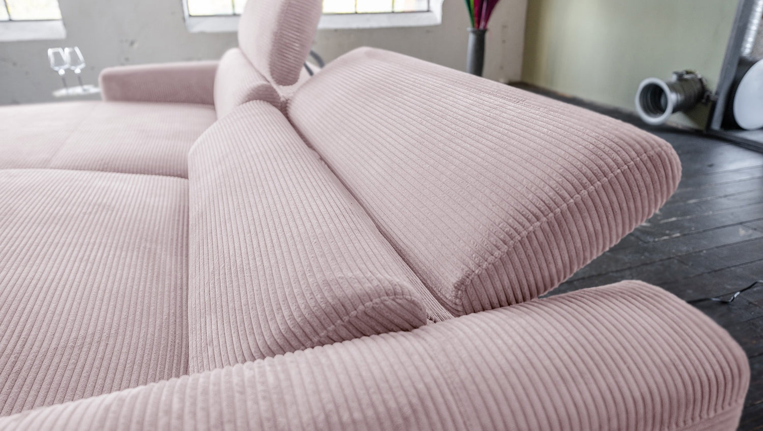 KAWOLA Sofá de esquina LAISKA función relax semi-motorizado Pana rosa