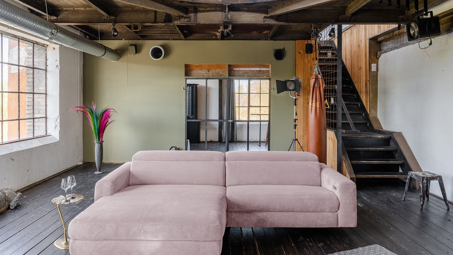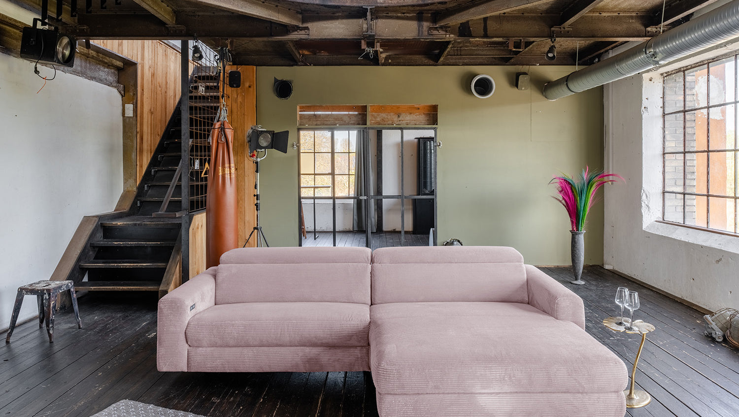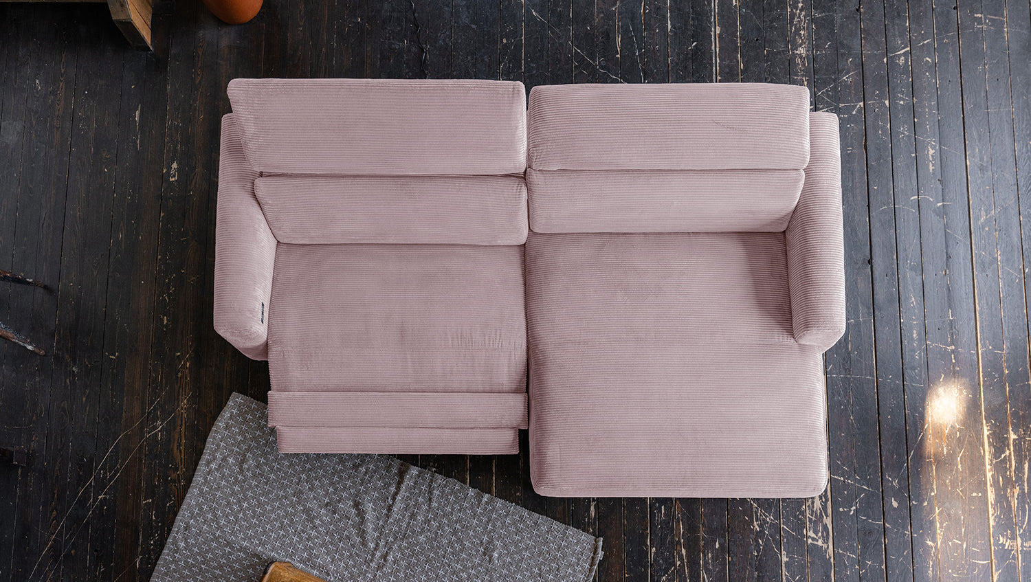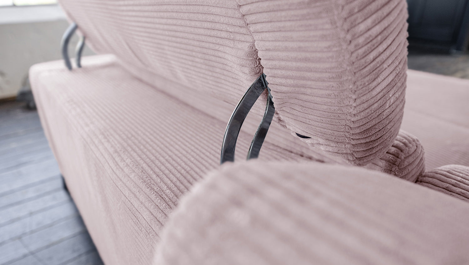 KAWOLA Sofá de esquina LAISKA función relax semi-motorizado Pana rosa