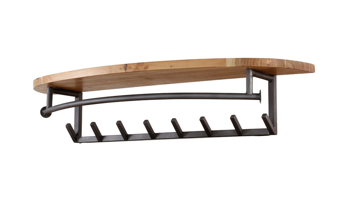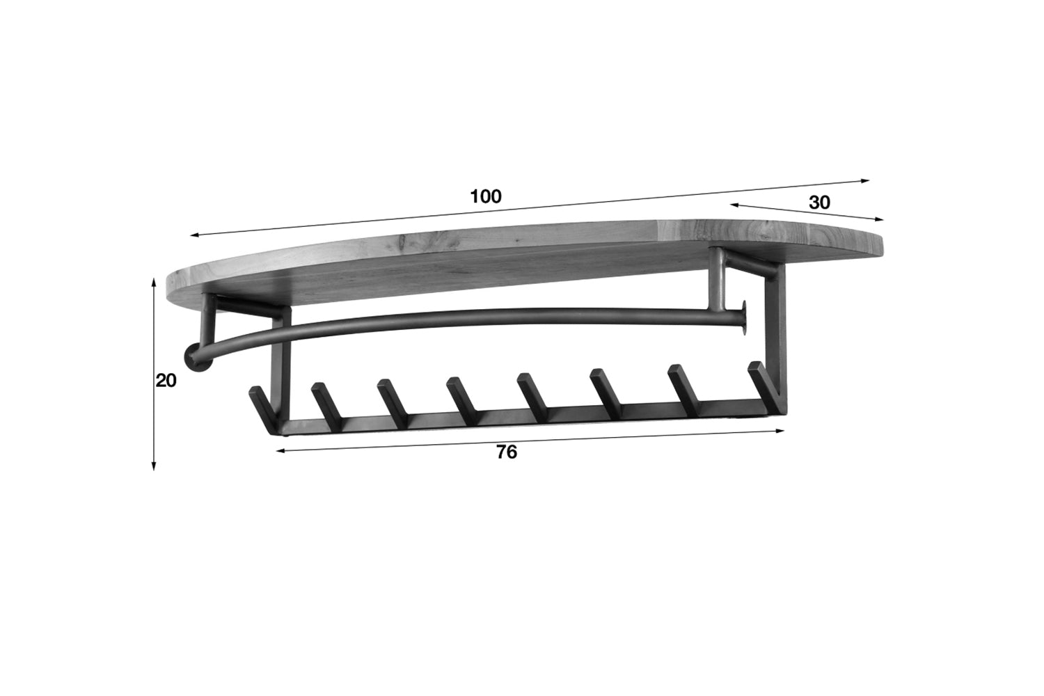 El perchero de pared LUANA de KAWOLA combina un diseño moderno con una práctica funcionalidad. El perchero redondo de madera maciza de acacia impresiona por su elegante veteado y sus estilosos bordes redondeados. Debajo hay 8 robustos ganchos y una varilla de metal, ideales para colgar chaquetas, abrigos o bolsos, ya sea directamente en el gancho o en una percha. Su aspecto atemporal convierte a LUANA en el complemento perfecto para cualquier recibidor o zona de entrada. El Guardarropa de 100 cm de ancho, 20 cm de alto y 30 cm de profundidad se puede montar de forma segura utilizando dos agujeros para tornillos - ¡con estilo, funcional y con un acabado de alta calidad!
