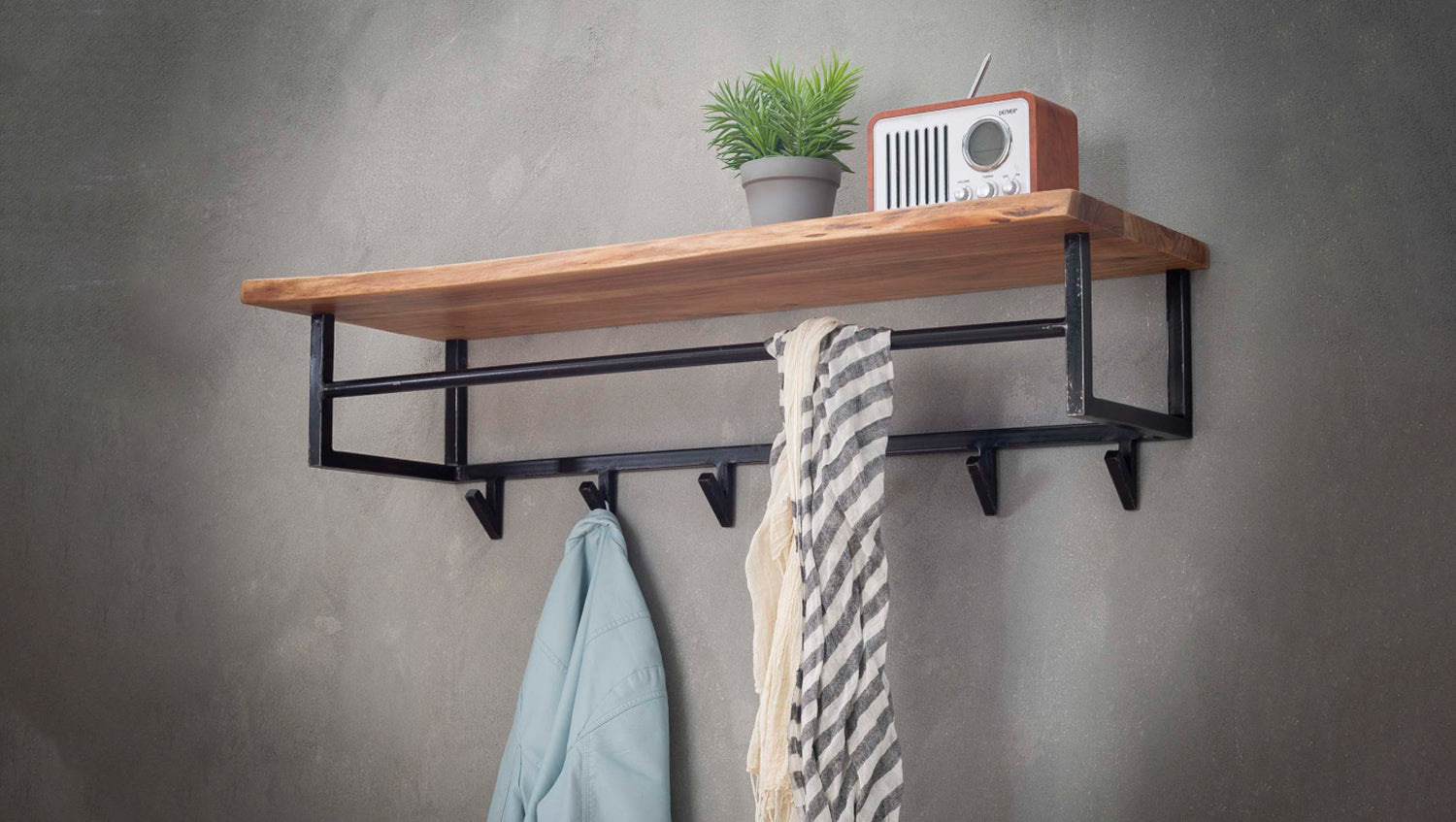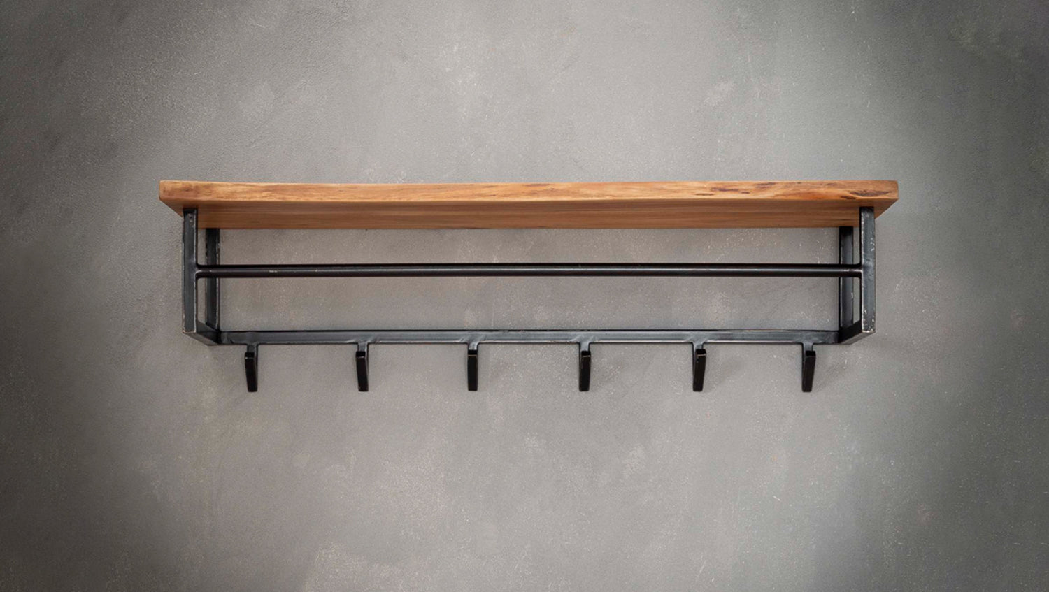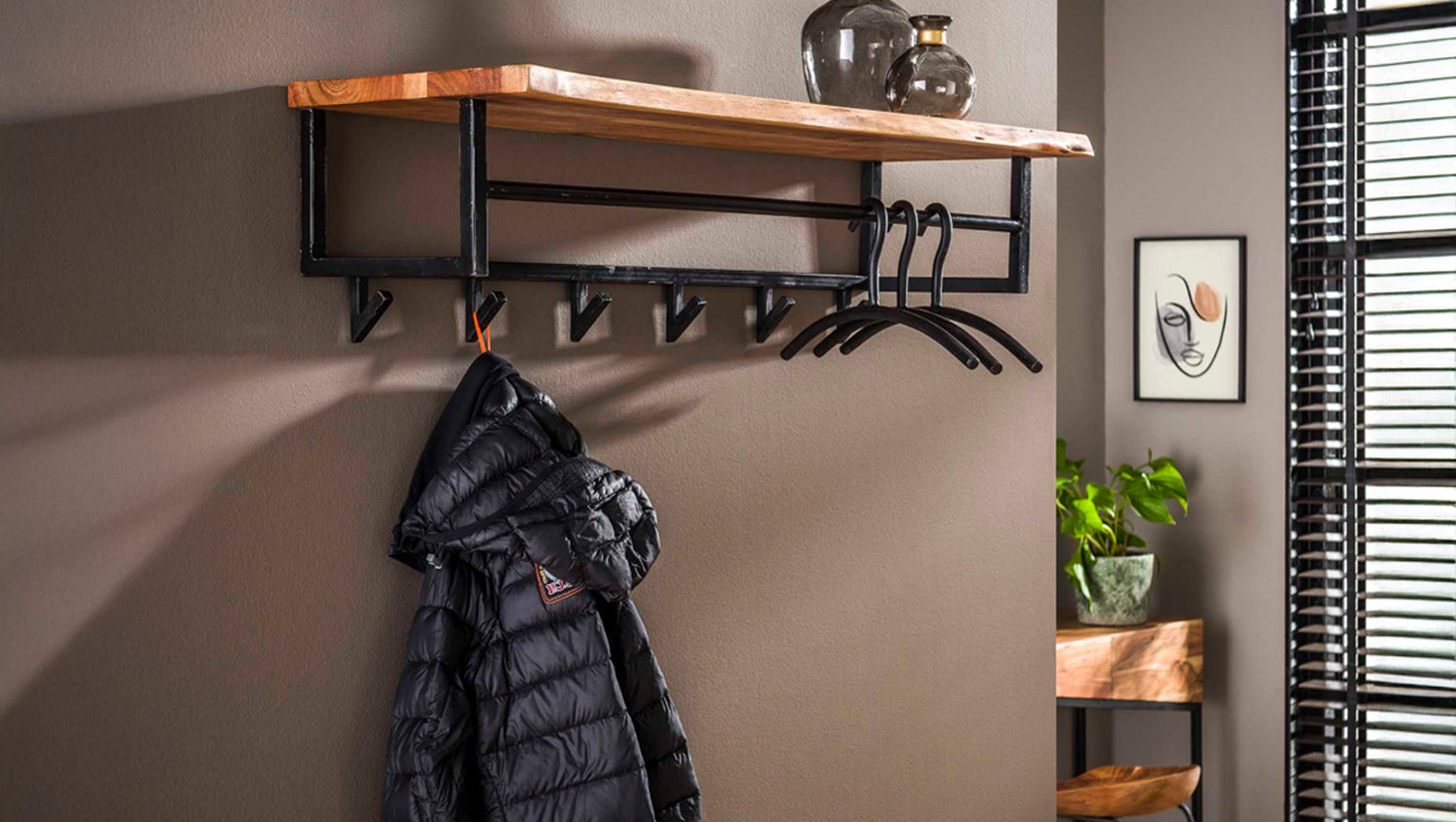 El perchero de pared NEREA de KAWOLA combina materiales de alta calidad con una sofisticada funcionalidad. El estante para sombreros de madera maciza de acacia (25 mm de grosor) impresiona por sus finas vetas y nudos naturales, que le confieren un carácter único. Su elaboración artesanal le confiere un aspecto elegante en la pared. Una robusta varilla de metal negro pulido y 6 ganchos permiten colgar abrigos, chaquetas o bolsos directamente en el gancho o en una percha. Gracias a los dos ojales, el Guardarropa de 100 cm de ancho, 27 cm de alto y 33 cm de fondo es fácil de instalar. NEREA es perfecto para pasillos, vestíbulos y zonas de entrada.