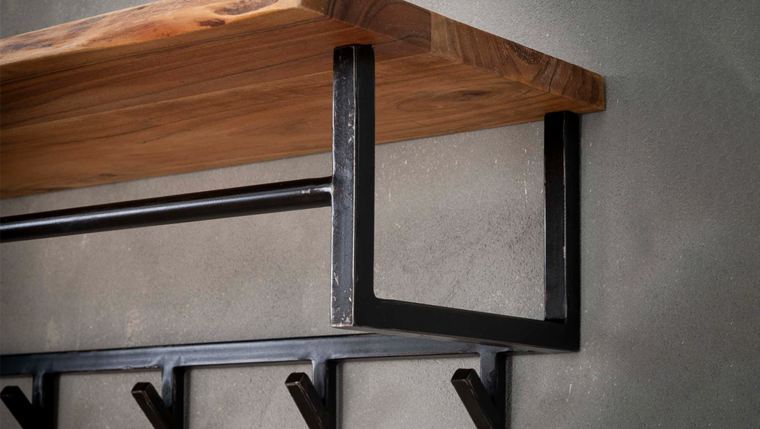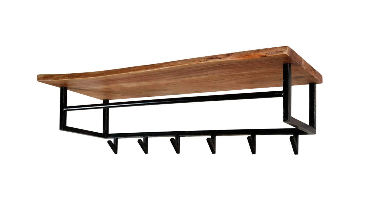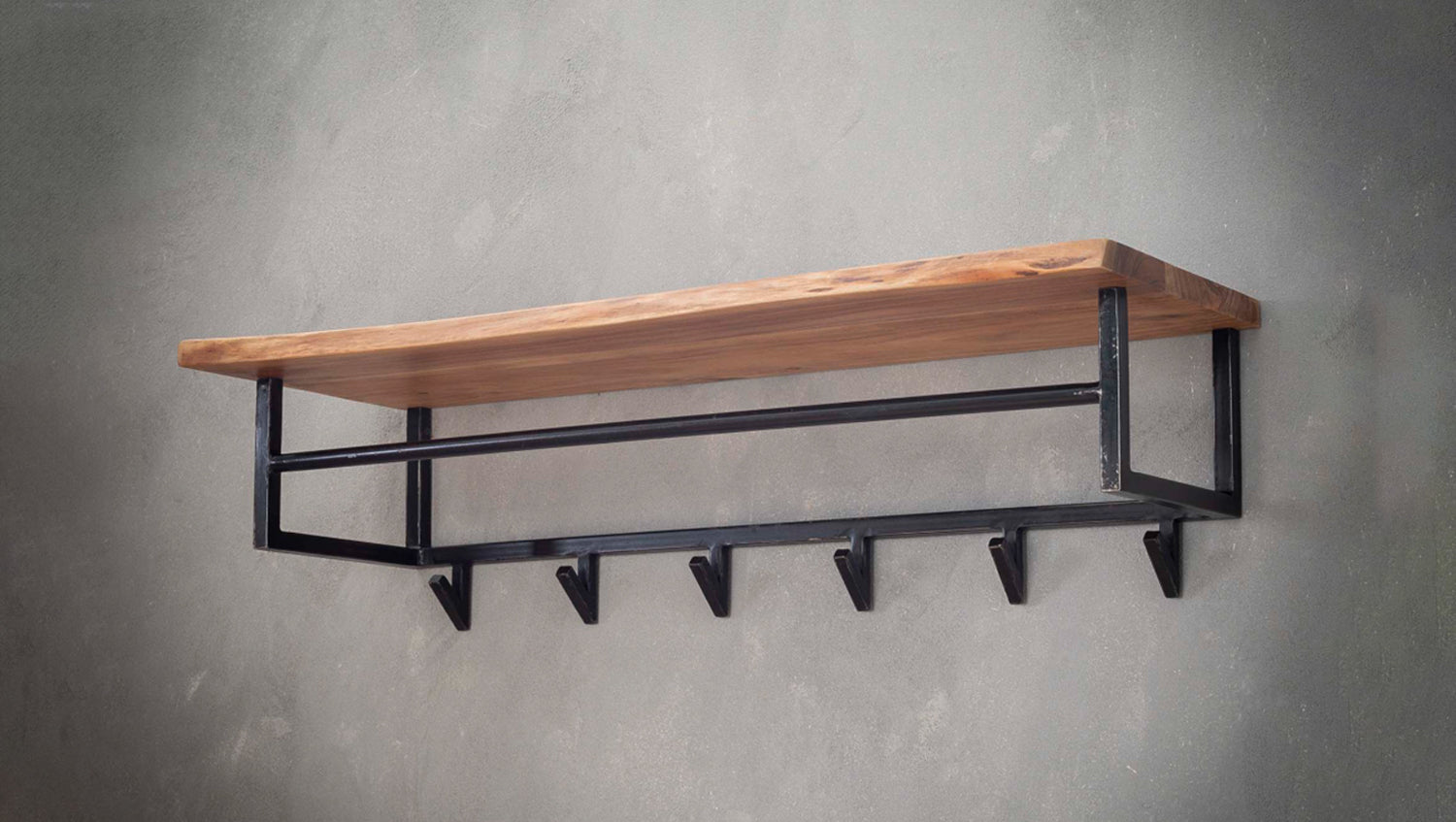 El perchero de pared NEREA de KAWOLA combina materiales de alta calidad con una sofisticada funcionalidad. El estante para sombreros de madera maciza de acacia (25 mm de grosor) impresiona por sus finas vetas y nudos naturales, que le confieren un carácter único. Su elaboración artesanal le confiere un aspecto elegante en la pared. Una robusta varilla de metal negro pulido y 6 ganchos permiten colgar abrigos, chaquetas o bolsos directamente en el gancho o en una percha. Gracias a los dos ojales, el Guardarropa de 100 cm de ancho, 27 cm de alto y 33 cm de fondo es fácil de instalar. NEREA es perfecto para pasillos, vestíbulos y zonas de entrada.