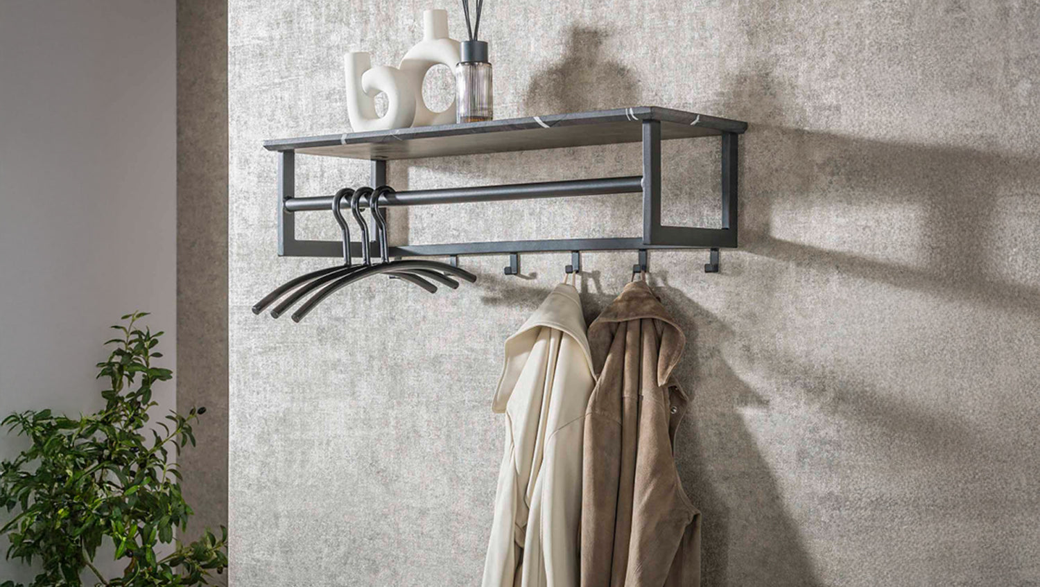 El perchero de pared SESTA de KAWOLA combina un diseño moderno con una práctica funcionalidad. Fabricado en plástico con aspecto cerámico, aporta un estilo contemporáneo a cualquier habitación. Con 6 robustos ganchos, una varilla y un elegante estante para sombreros, ofrece mucho espacio para abrigos, chaquetas y accesorios. Su aspecto contemporáneo lo convierte en una solución elegante para el recibidor, el pasillo o la entrada. Los 2 orificios para tornillos de la parte posterior facilitan su montaje en la pared. Con una anchura de 80 cm, una altura de 24 cm y una profundidad de 30 cm, SESTA es un complemento práctico y estético para cualquier hogar.