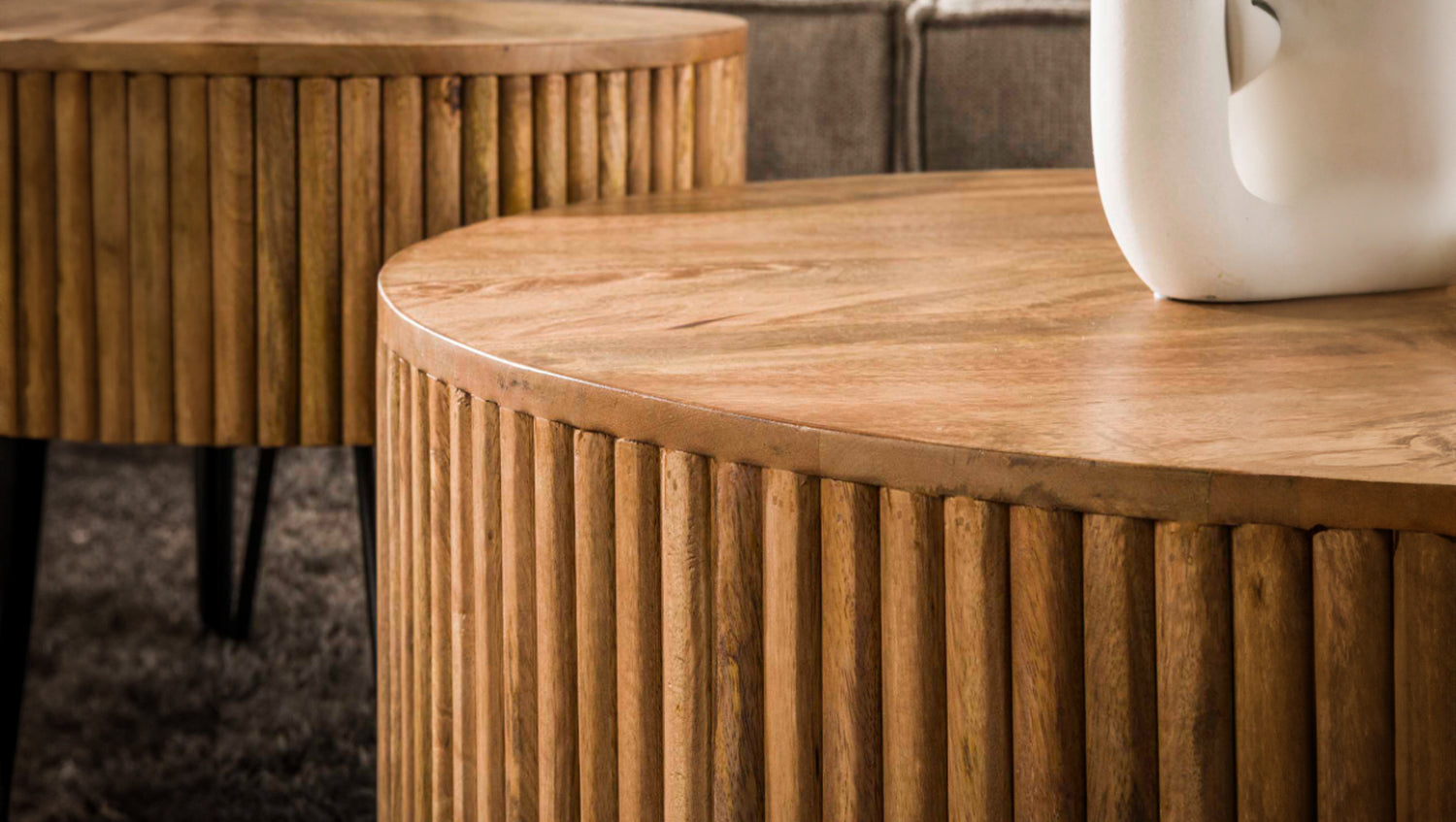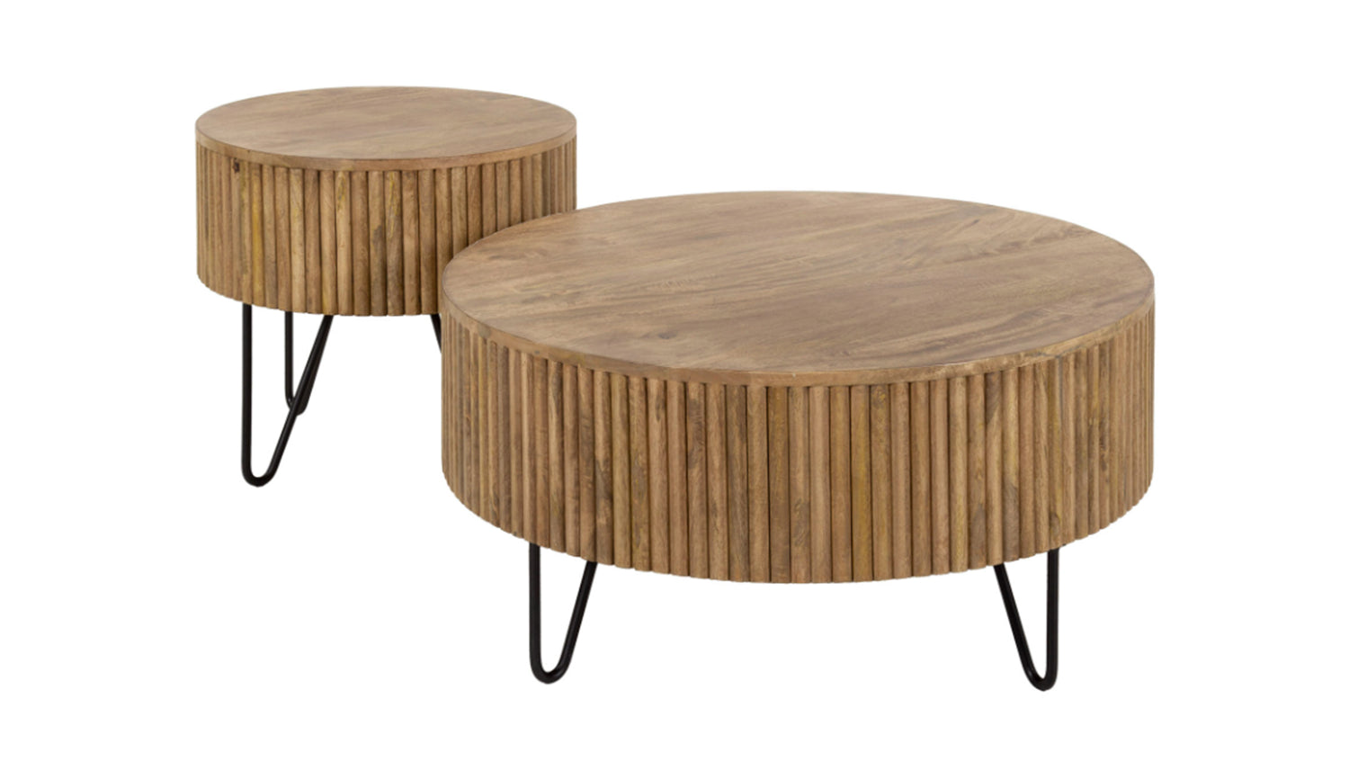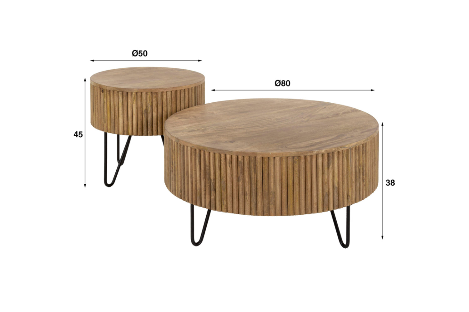 El precioso juego de mesa de centro LORENA de KAWOLA está fabricado en madera maciza de acacia. Está fabricado en resistente madera de mango y tiene un moderno diseño con forma ondulada, ¡todo un reclamo! El juego consta de dos mesas. La mesa más grande tiene un diámetro de 80 cm y una altura de 38 cm, mientras que la mesa más pequeña tiene un diámetro de 50 cm y una altura de 45 cm. Ya sea en un moderno loft, en un acogedor salón o en una elegante sala de estar, el juego de mesa de centro LORENA pone acentos de estilo y combina funcionalidad con una estética atemporal.